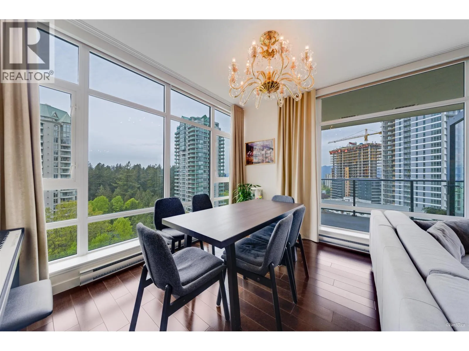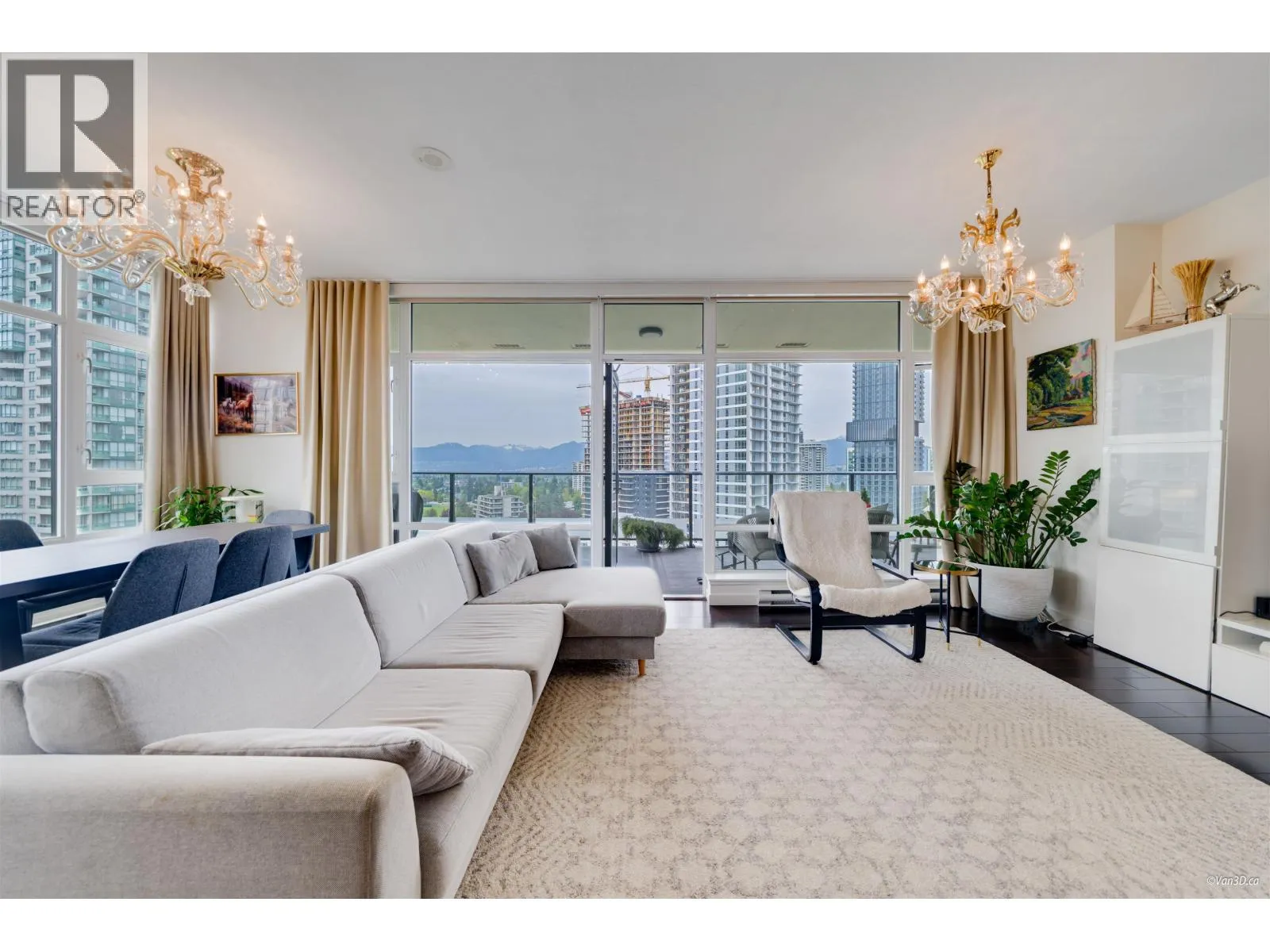 Jewel II, highest standard of luxury condo living next to Burnaby's Central Park, 2012 winner of best multi-family high rise by Urban Development Institute, 2 bdrms + den, 9' ceilings, floor to ceiling windows maximize view area and natural light. High end appliances (Bosch and Miele); Marvel (wine cellar); granite countertops. Open concept kitchen with the big island to entertain your guests with direct access to the huge covered 337 sq.ft patio with the unobstructed view of the city and mountains. Very practical layout, fills like a house. Great amenities with concierge; residences' lounge; terraced garden and patio areas; fitness center; jetted tub and steam room. 5-10 minutes walk to Crystal Mall, Central Park and Metrotown Mall. Open House Sat and Sun Nov.22&23, 2-4pm (id:27476)