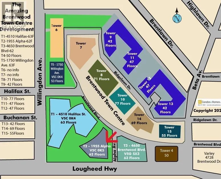 Welcome to this stunning 2 bed, 2 bath home on the 29th floor of The "Amazing Brentwood Two". Enjoy sweeping views of the North Shore mountains and Mt. Baker from this east-facing unit. Featuring 3 elevators, 9´ ceilings, Italian cabinetry, Bosch appliances with gas cooktop, and custom LED lighting throughout. The second bedroom includes a built-in Murphy bed with desk, perfect for guests or working from home. Spa-inspired bathrooms offer ambient lighting and sleek German fixtures. Thoughtful upgrades include a functional laundry space with shelving. Bldg amenities include a 24-hr concierge, fitness centre, and more. Steps to SkyTrain, Brentwood Mall, and restaurants. EV parking stall included (#5268-P5) + Storage P22-101-#002 (P2). Virtual Tour on realtor sites (id:27476)