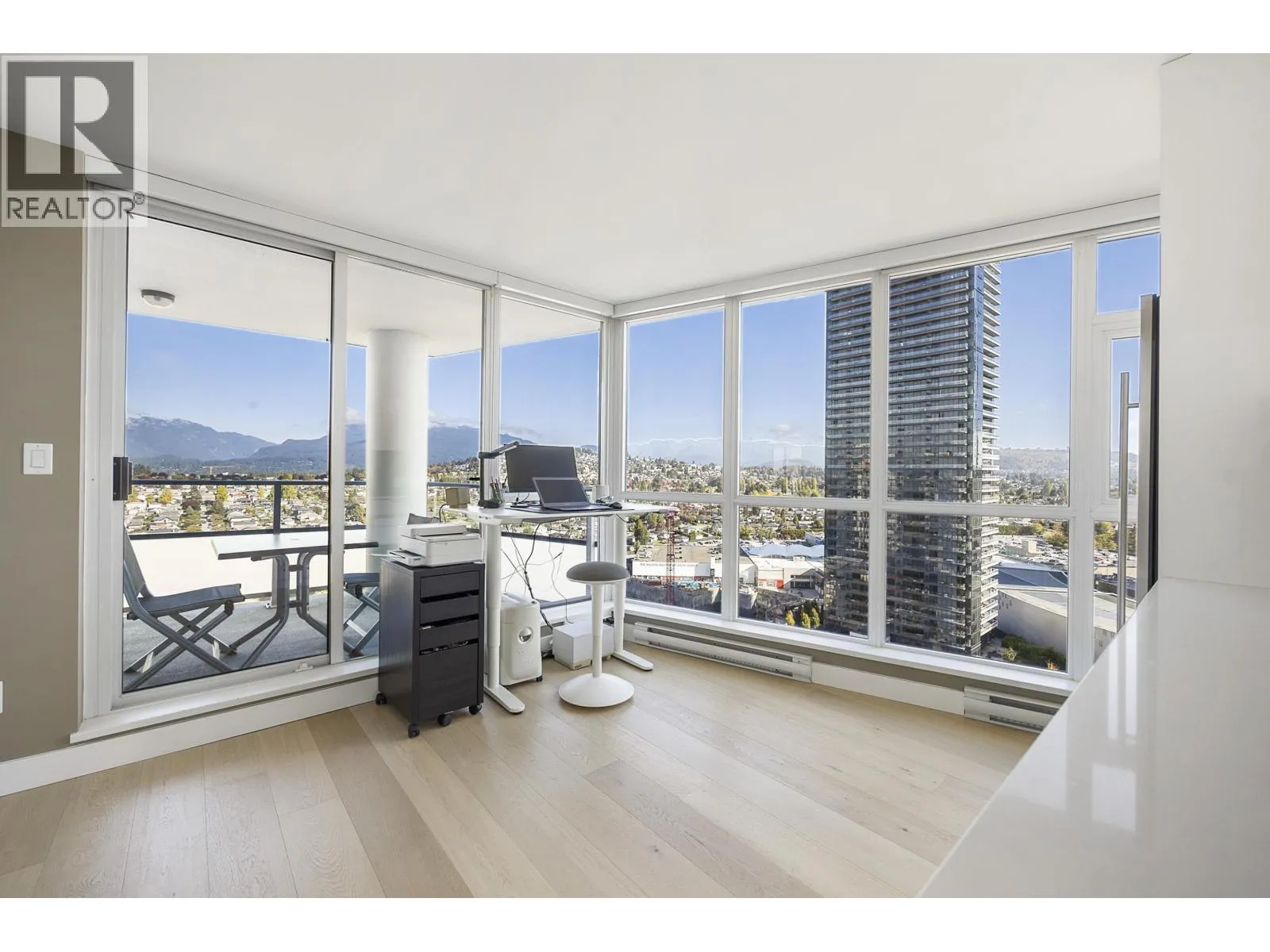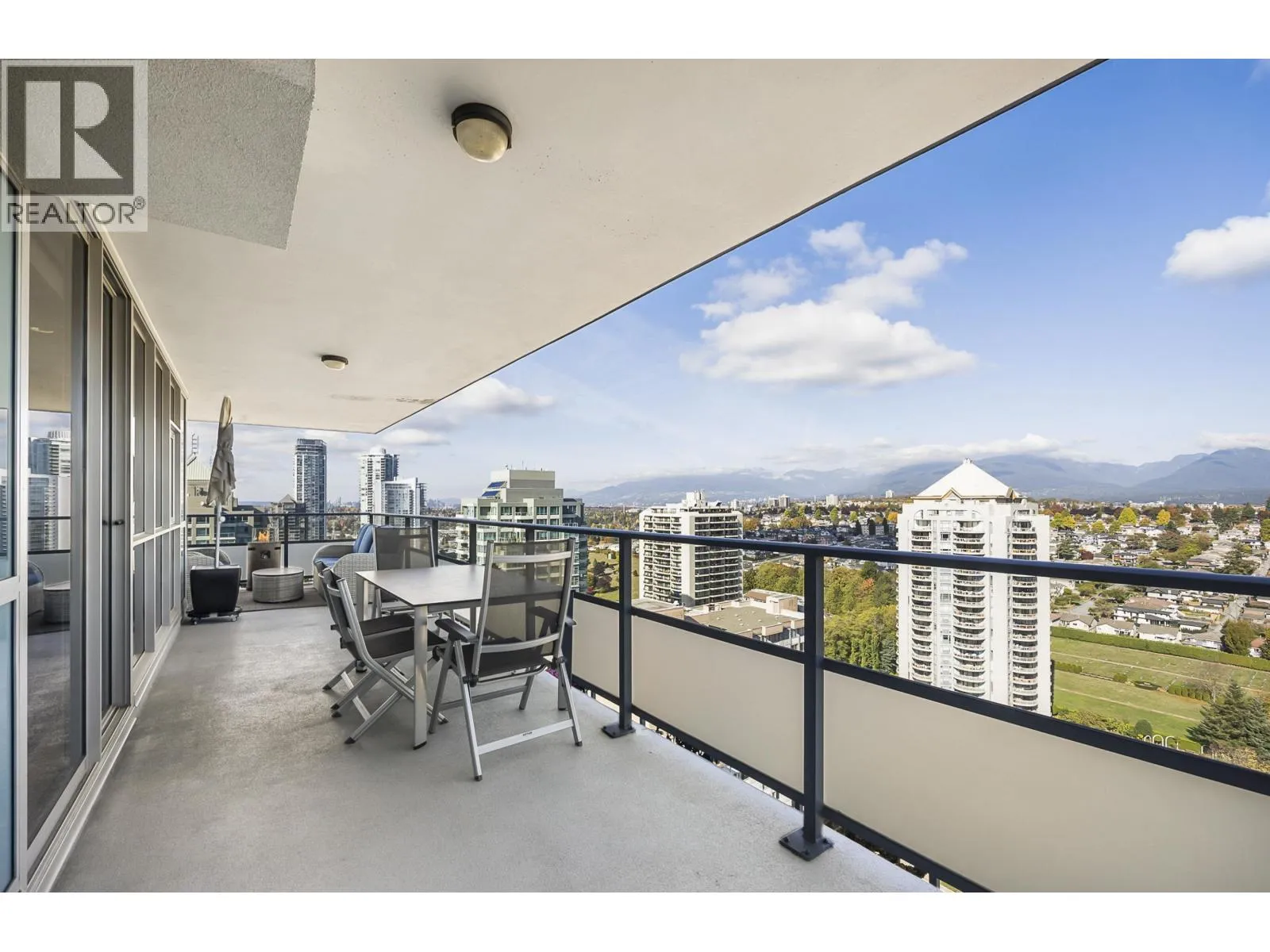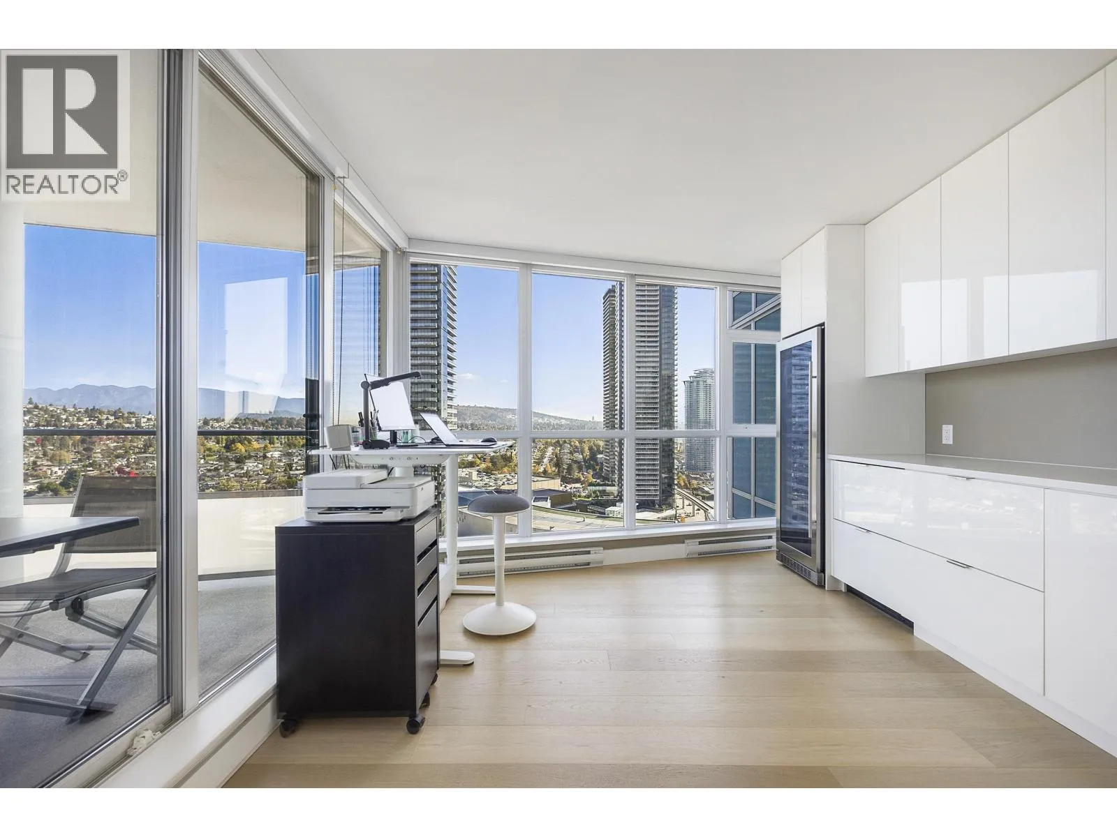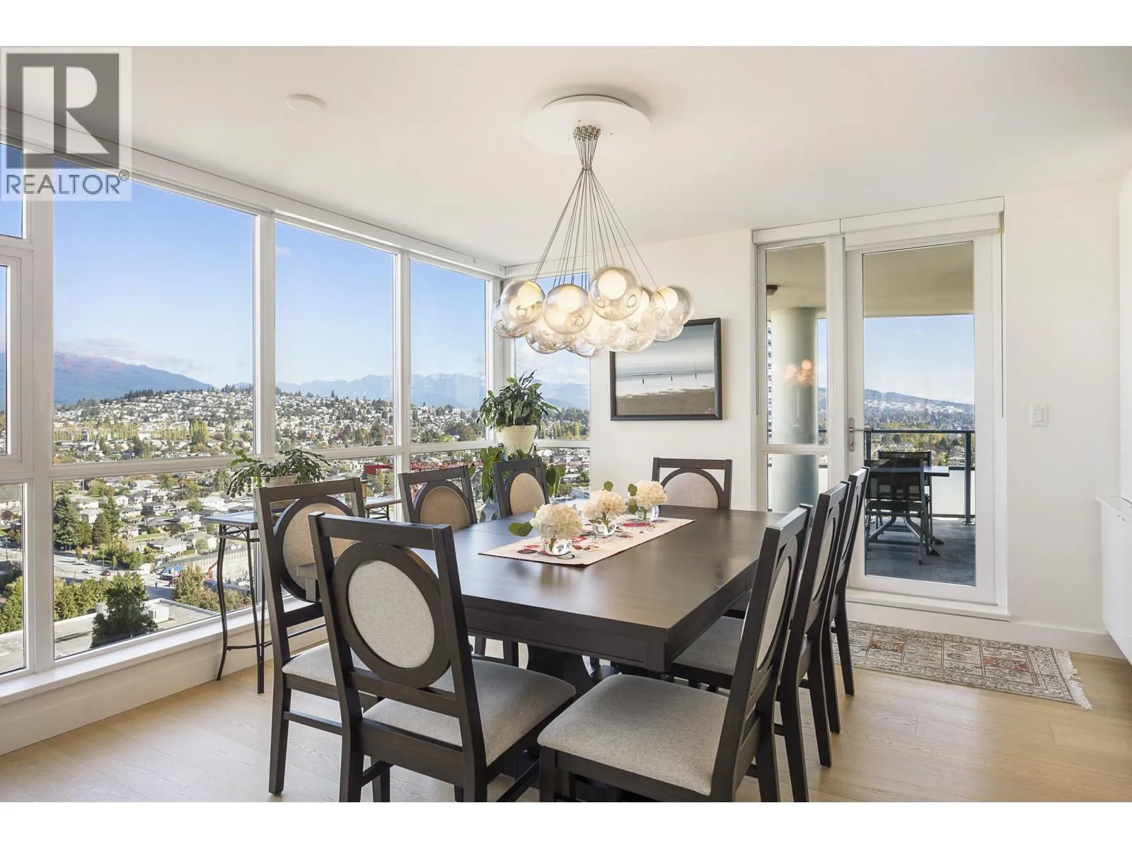 LUXURY LIVING in Brentwood Mall area built by Appia Group. This 1947SF, spacious 3 bed & 3 full bath home, showcases STUNNING 180 degree East, North & West VIEWS. The open style kitchen is renovated with high end cabinetry & appliances, countertops, & espresso maker. Spacious living & dining rooms are perfect for entertaining featuring newer engineered hardwood throughout. Other upgrades include custom cabinetry throughout, 120 bottle wine fridge, & built in wall bed and desk in guest bdrm. Extensive storage throughout. Enjoy INCREDIBLE VIEWS on a 480SF WRAP AROUND BALCONY perfect for entertaining! Off the dining area is a secondary balcony at 112SF with more views. 2 parking, 1 locker, & fantastic amenities. Location beside Brentwood, Skytrain, Solo District, Whole Foods & more! See video! (id:27476)