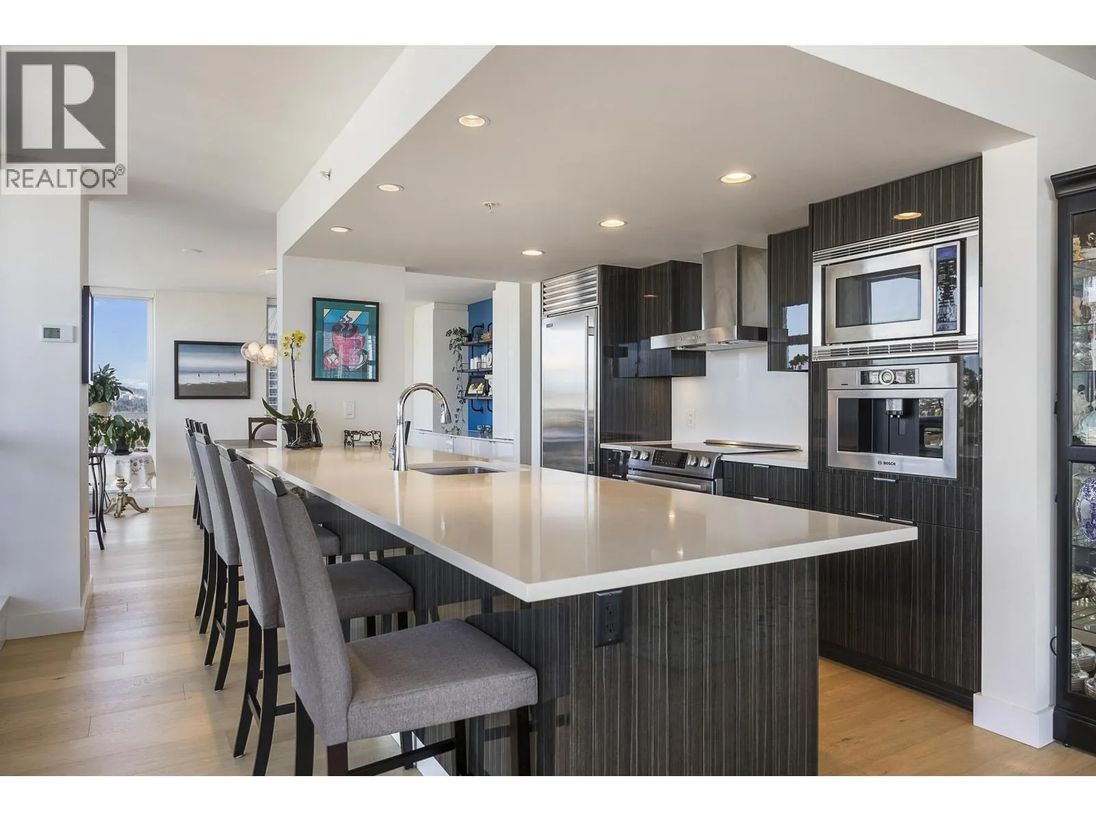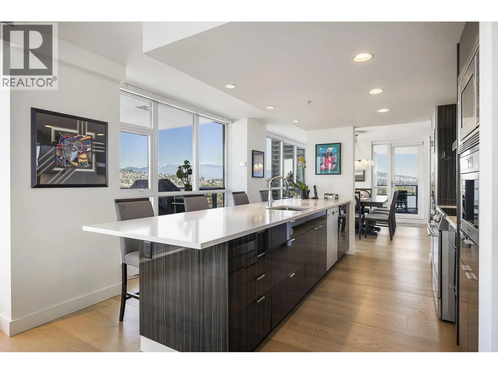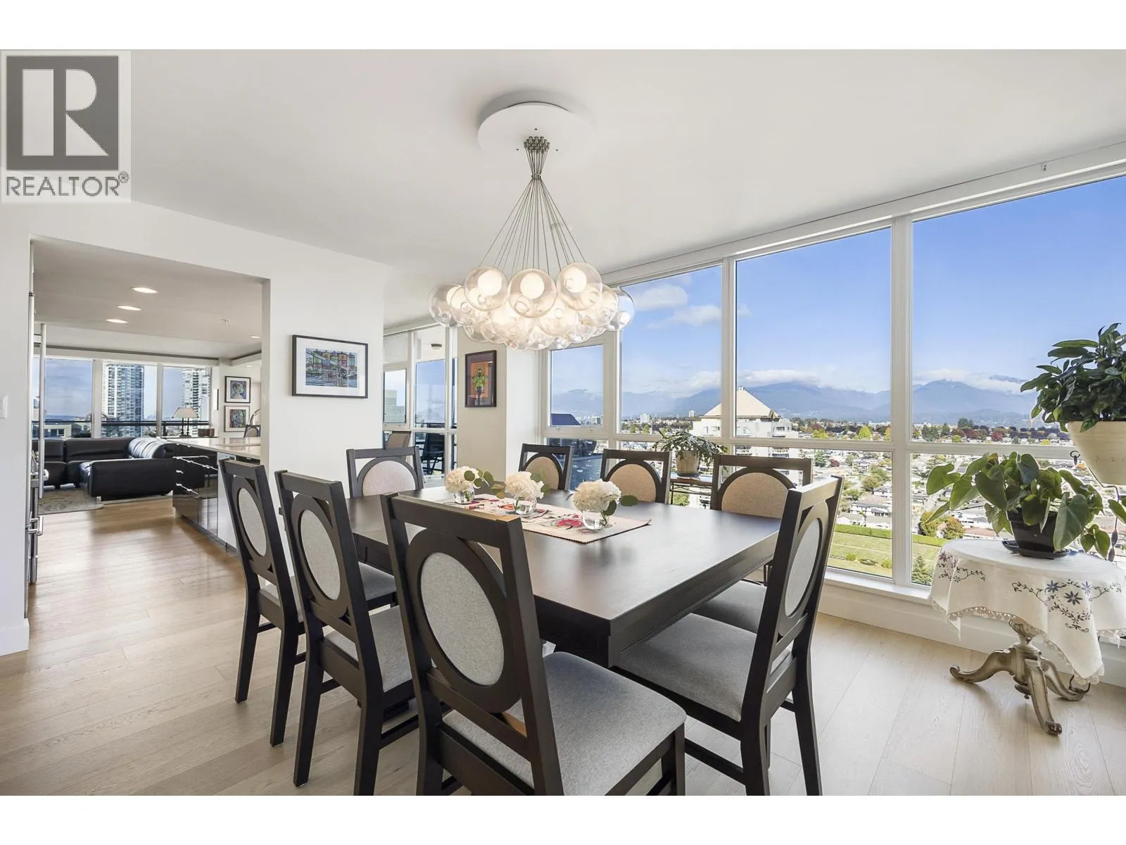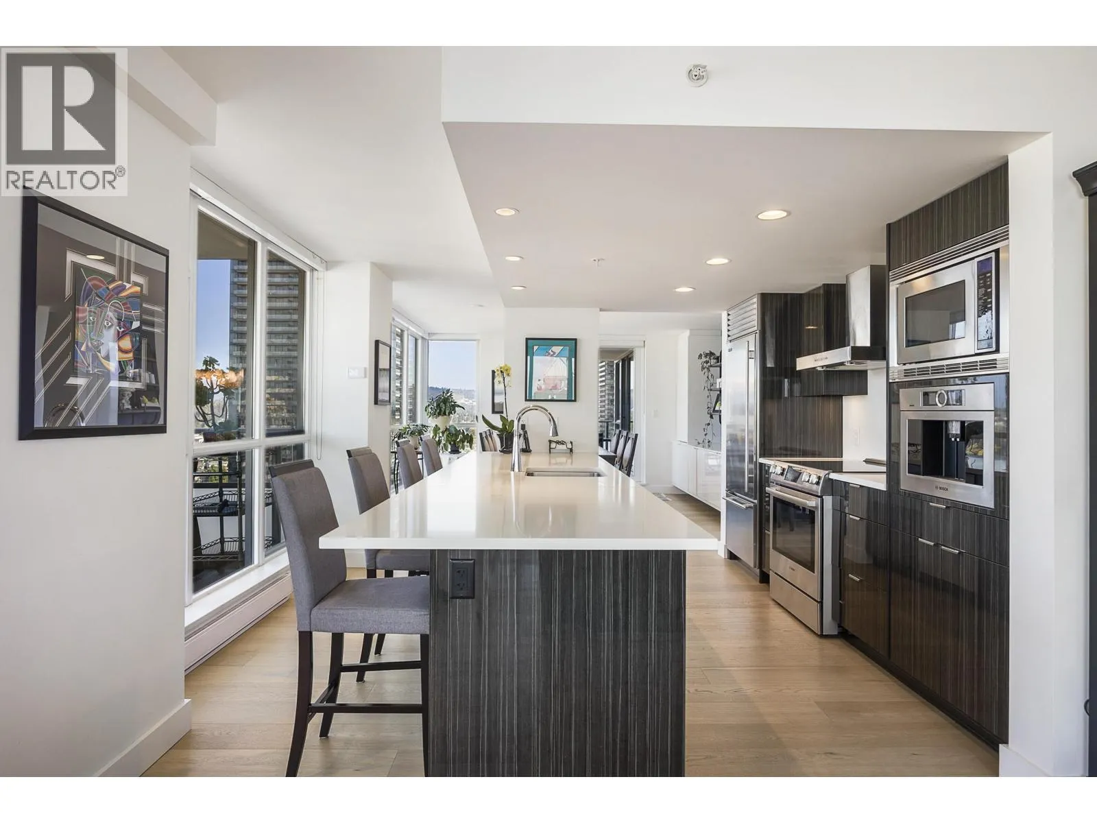 LUXURY LIVING in Brentwood Mall area built by Appia Group. This 1947SF, spacious 3 bed & 3 full bath home, showcases STUNNING 180 degree East, North & West VIEWS. The open style kitchen is renovated with high end cabinetry & appliances, countertops, & espresso maker. Spacious living & dining rooms are perfect for entertaining featuring newer engineered hardwood throughout. Other upgrades include custom cabinetry throughout, 120 bottle wine fridge, & built in wall bed and desk in guest bdrm. Extensive storage throughout. Enjoy INCREDIBLE VIEWS on a 480SF WRAP AROUND BALCONY perfect for entertaining! Off the dining area is a secondary balcony at 112SF with more views. 2 parking, 1 locker, & fantastic amenities. Location beside Brentwood, Skytrain, Solo District, Whole Foods & more! See video! (id:27476)