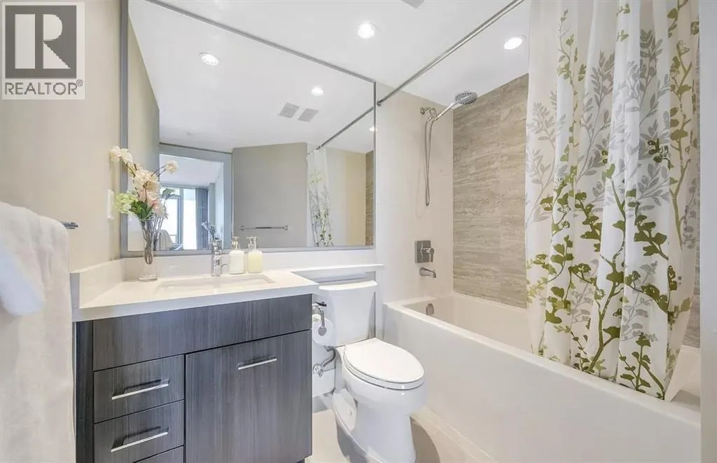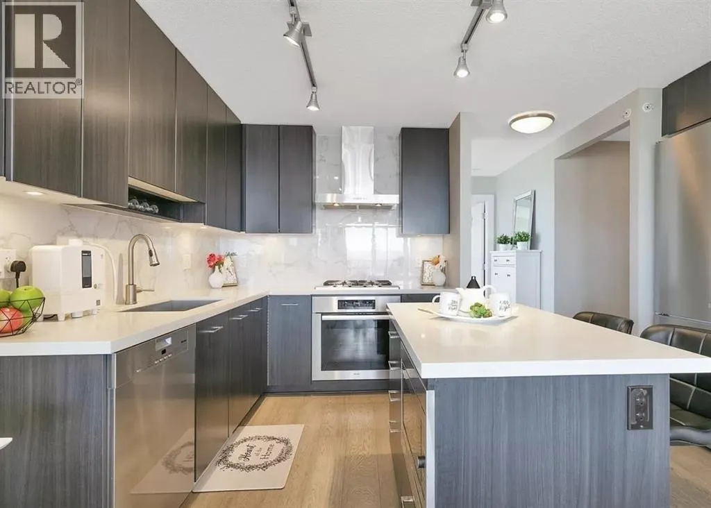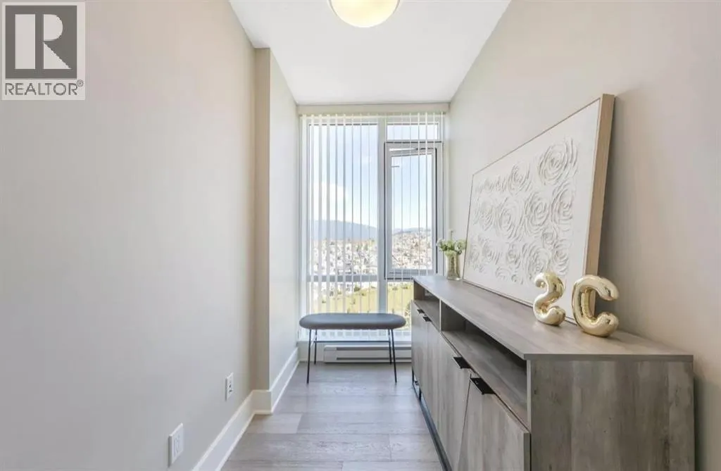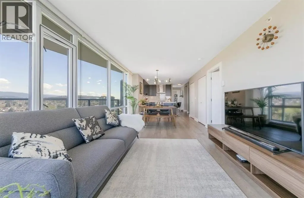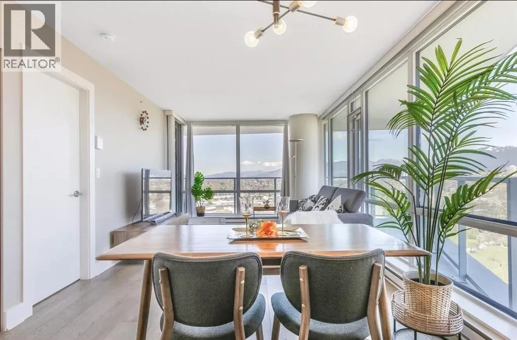 Aviara, proudly developed by Ledingham McAllister is centrally located in the Brentwood neighbourhood of N. Burnaby. This 942sf, corner 2 bed and 2 bath plus den facing NW offers amazing views of the North Shore mountain and downtown city skyline. This unit has tons of natural light throughout. Efficient design layout includes 2 spacious bedroom & a functional den as office or guest room, open-concept kitchen, dining/living room. Homes include a full Stainless Steel appliance, front-loading wash/dryer, blinds, expansive windows, and a spacious balcony. Aviara is fully equipped with a fitness centre, lounge, kitchen area, billiards table, and a sprawling terrace. Pet-friendly with restrictions. Skytrain is 2 blocks away. (id:27476)