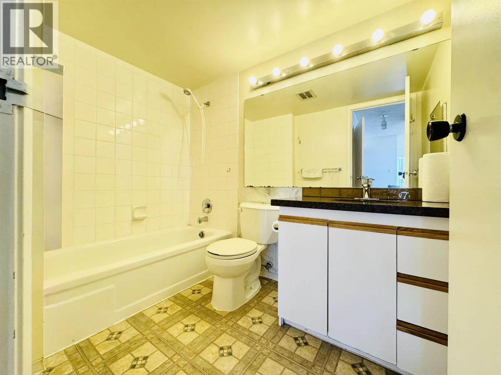 Top floor 1 bed, 1 den, corner unit, Steps from Metrotown Sky Train & Central Park! Ideal for 1st time homebuyers, downsizers, or investors. The renovated laminated floor and kitchen are sleek. The generous living and dining space is perfect for everyday living or entertaining, and opens onto 2 large private balconies with views of the park and city. In-suite laundry room with extra storage. Coming with underground parking, storage locker and resort-style amenities! Open house on both Sat and Sun Aug 23/24, 2-4 pm. (id:27476)