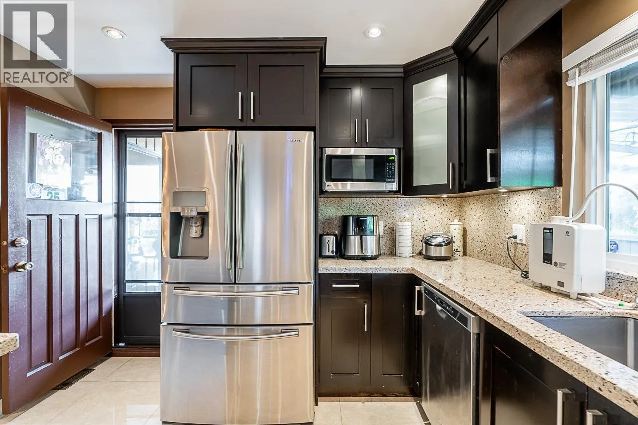 Move-in ready CORNER home in Burnaby North! Situated 66´ x 120´ lot, spacious 4-level split features a metal roof (2014), fenced yard with apple & cherry trees, large shed(2021), covered patio (2022), & wraparound sundeck with city views. SUBDIVIDABLE LOT. CLEAN TITLE. Parking includes a double garage, covered carport, two extra spots, plus LANE ACCESS. Inside boasts vaulted ceilings, quartz counters, two fireplaces, crystal dining lights, renovated kitchen (2016) Primary suite with walk-in closet & ensuite, plus 2 bdrms sharing a double-sink bath. Main level has a sunken family rm, laundry, 2 bdrms, basement has 3-piece and REC ROOM. O/H August 31 (Sunday) 2:00-4:00 (id:27476)