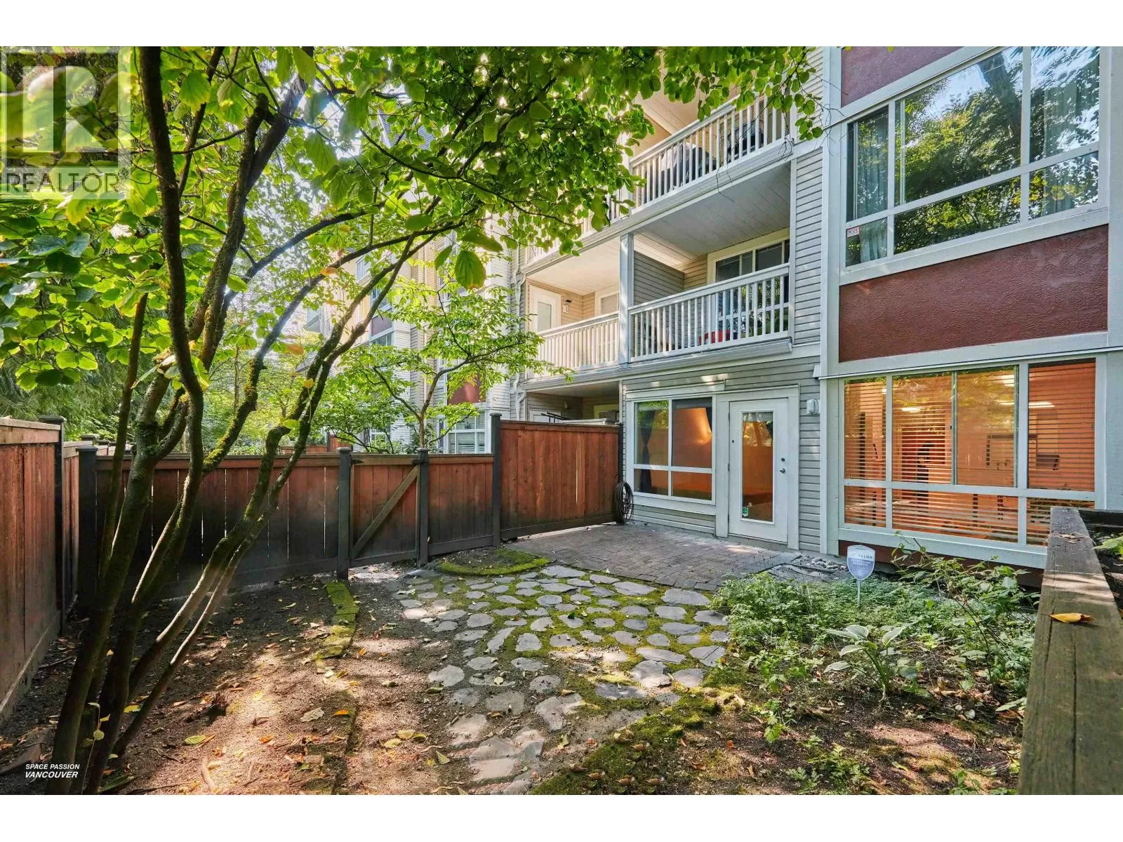 Welcome to Carmel by award-winning Adera, nestled on a peaceful, pedestrian-only street lined with beautiful greenery. This spacious 1-bedroom + den ground-level home lives like a townhouse, featuring its own fully fenced private backyard. Thoughtfully maintained, this home features a generous kitchen that flows seamlessly into the open-concept dining and living area, highlighted by a cozy fireplace and charming window seat. Large windows fill the living room and bedroom with natural light, while the den makes an ideal home office or flex space. Includes an oversized parking stall and in-suite laundry. Enjoy peace of mind with a proactive, well-managed strata, with recent upgrades including the roof, carpets, exterior paint. Steps to Edmonds SkyTrain, parks, schools and Highgate shops. Open House Sunday, November 9 from 2-4pm. (id:27476)