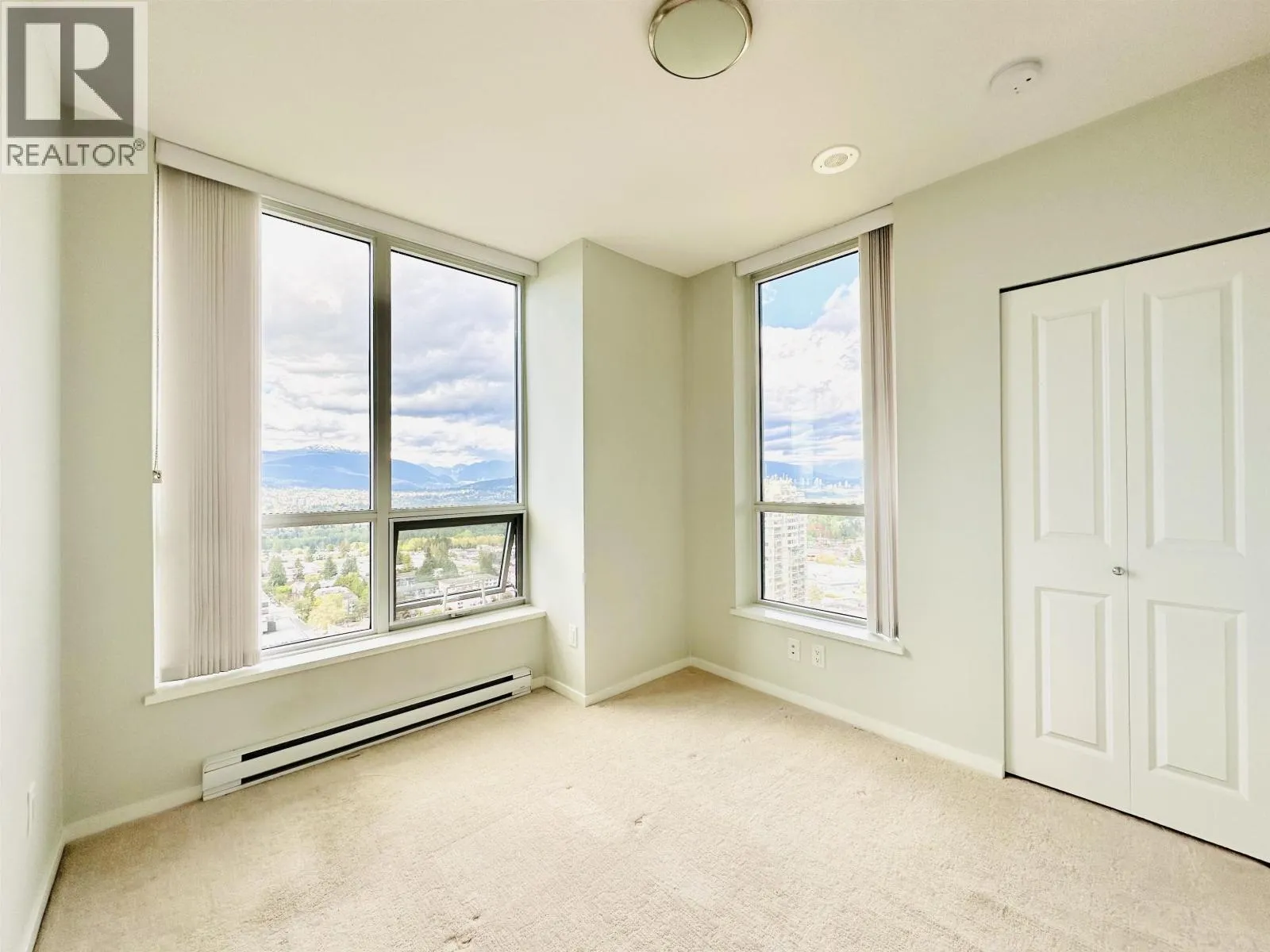 MIDORI by POLYGON! Rarely available northeast corner unit, over 935 sqft, 2Bed + 2Bath. This bright and spacious home features over-height ceilings, quartz countertops, build-in appliances, gas range and custom-made cabinets. Master bedroom includes walk-in closet, double vanity & a spa-inspired shower. Enjoy stunning sunrises from your square-shaped balcony (120+ sqft) with panoramic views of the city, Deer Lake, Mt. Baker, Fraser river and mountains. Amenities include gym, lounge, pet grooming station & car wash area. Prime location just steps to Metrotown, Bonsor Community Center, banks, restaurants and Skytrain. Photos with furniture were taken before the owner moved out. ONE parking stall and TWO lockers included as a bonus! OPEN HOUSE: Nov 9, Sun, 2-4PM (id:27476)