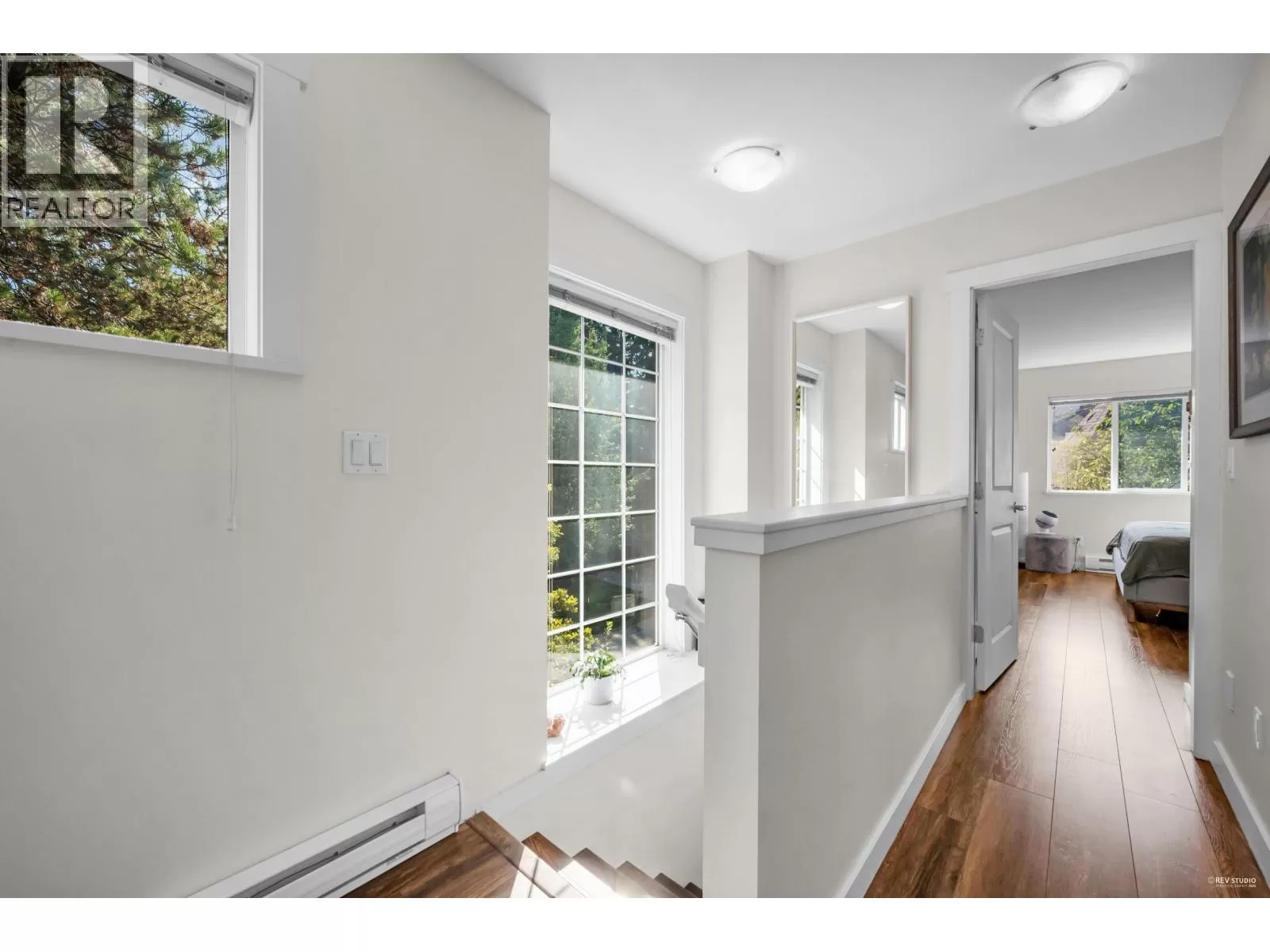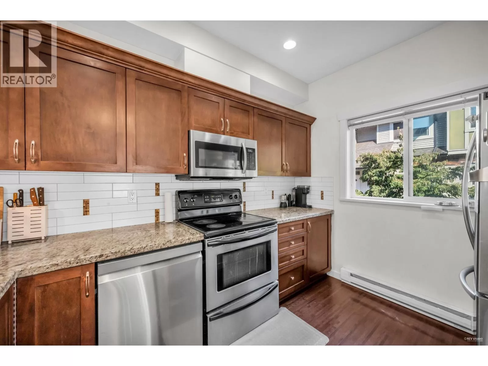 Welcome to this bright and spacious two-level corner townhome tucked away in a peaceful South Burnaby cul-de-sac. Surrounded by mature trees and walking trails, this home offers both tranquility and convenience, just minutes from Edmonds SkyTrain and Highgate Village. The main floor features oak hardwood flooring, soaring ceilings, and an open kitchen with granite counters, maple cabinetry, stainless steel appliances, and crown mouldings for an elegant touch. A handy powder room completes the main level. Upstairs you´ll find a generous primary bedroom, and a refreshed bathroom with a soaker tub, separate shower, and updated vanity. Additional highlights include a newer dishwasher, fridge, washer/dryer. One parking, and one storage locker included. Well maintained by the owner. (id:27476)