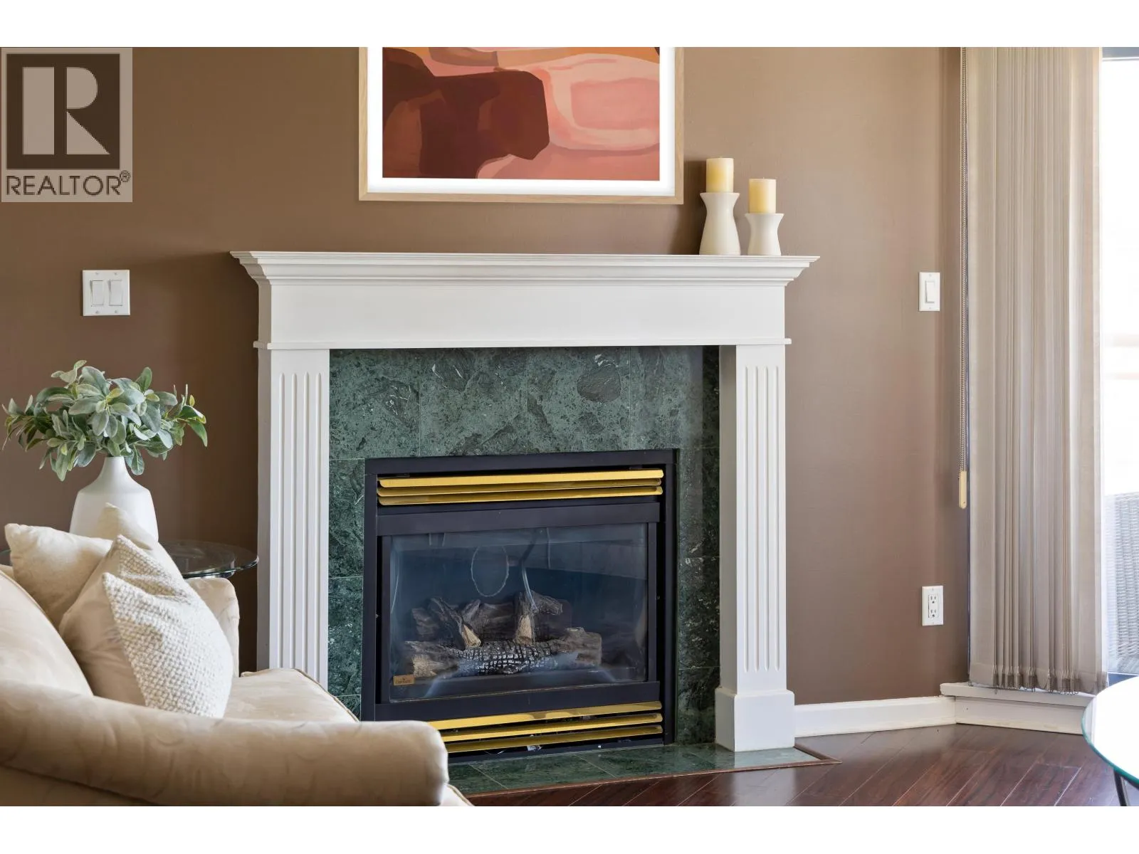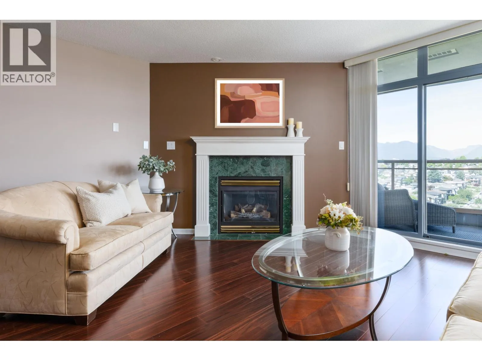 Come home to Polaris built by award-winning Bosa. Nestled in a park-like setting surrounding by mature gardens, this turnkey 2 BDRM, 2 full bath home offers more than 1,050 sqft of living space. The open concept layout is ideal of entertaining and the large bonus storage room could also serve as a home office. Other features include a cosy gas fireplace and large wrap-around balcony offering sweeping mountain and city views. This prime location in Burnaby North's vibrant Brentwood area means you have everything on your doorstop from shops and restaurants to services, parks and recreation. This unit includes 2 secured parking spots and storage along with the use of on-site amenities. (id:27476)