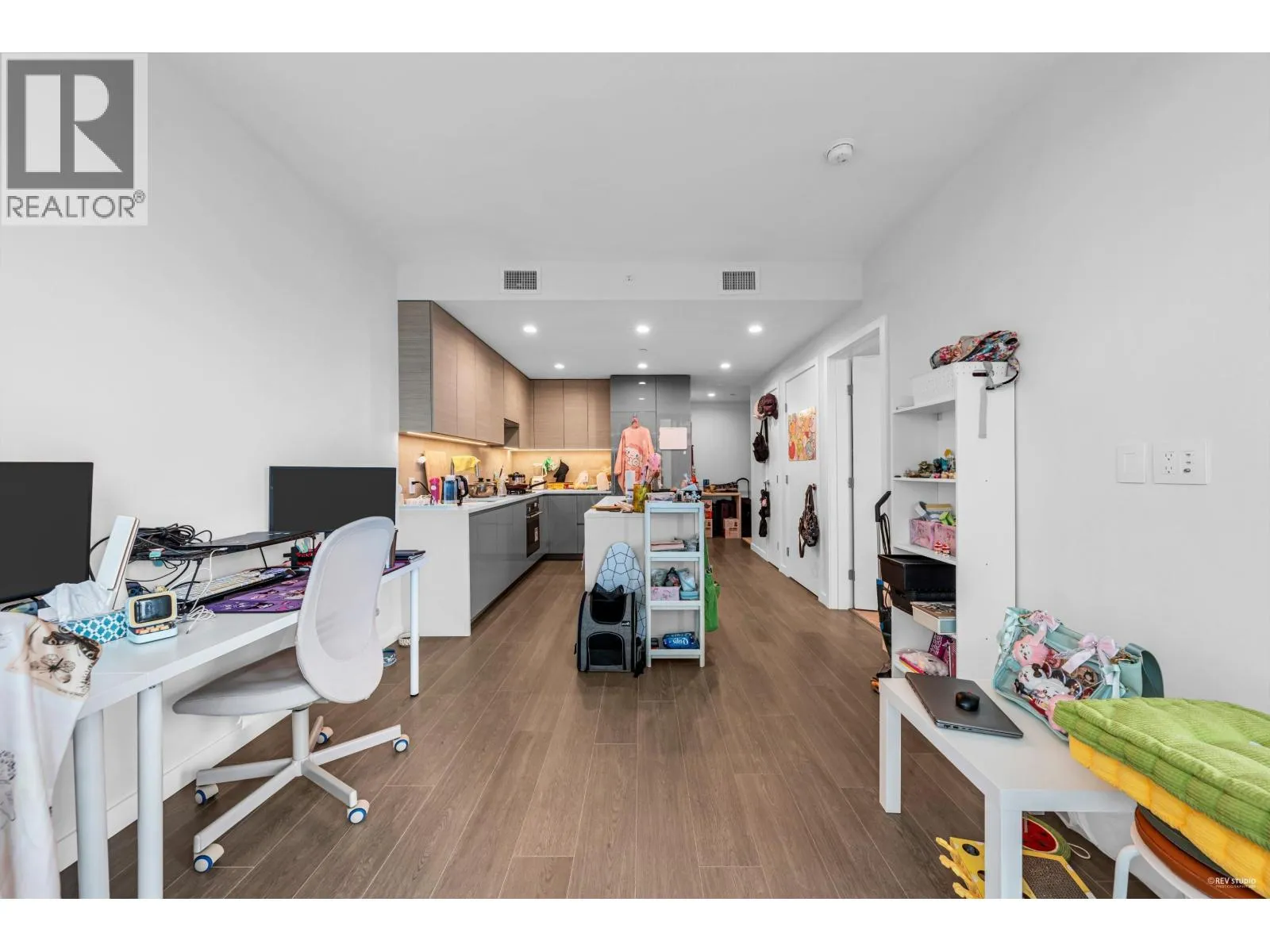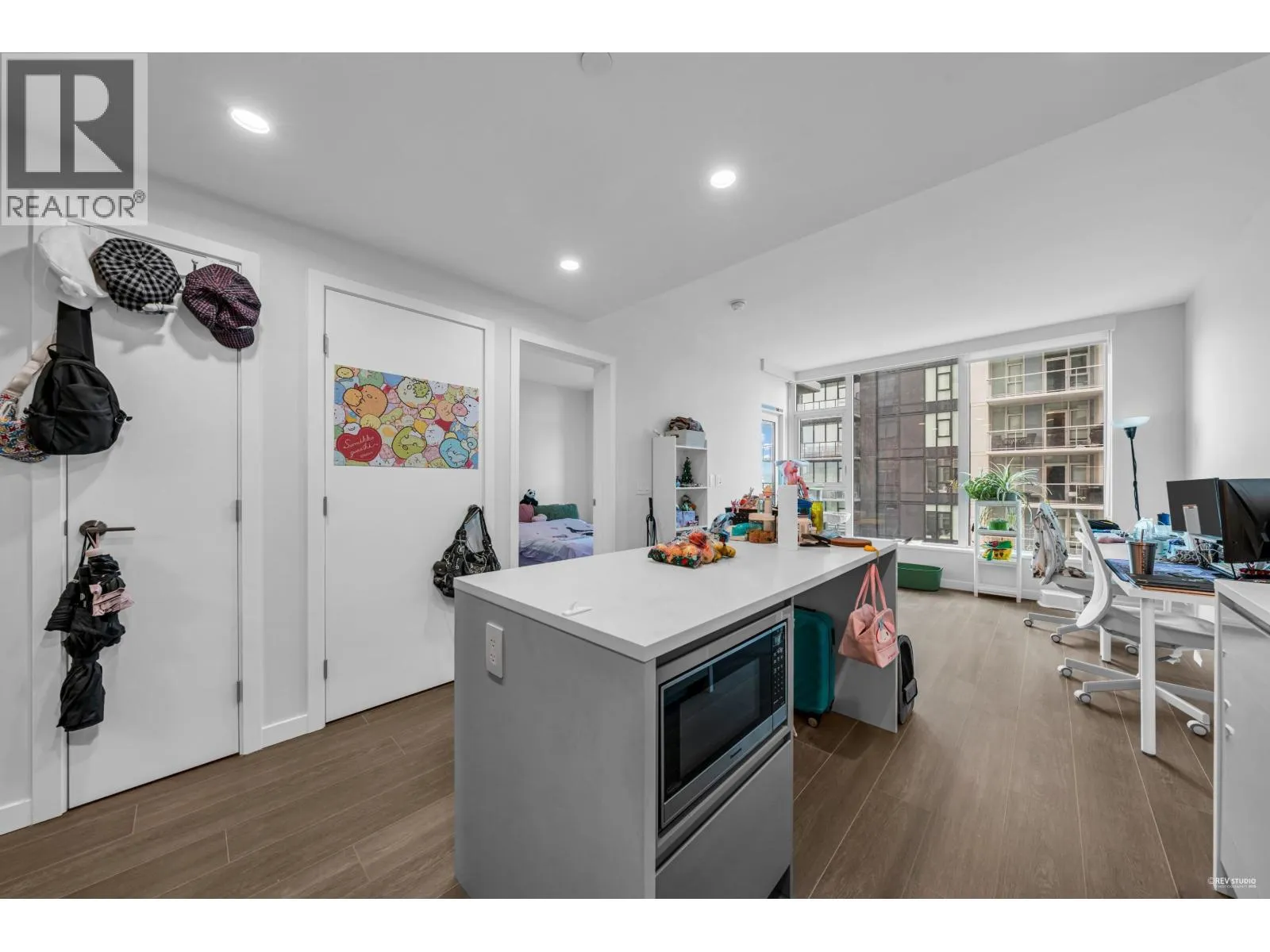 A bright 1-bedroom at Gilmore Place Tower 2 by Onni, where the day runs on rails. Morning light skims the premium wide-plank floors, while high-efficiency heating & A/C keep the home perfectly tempered year-round. The clean-lined kitchen centres life at home with integrated top-tier appliances, stone countertops and refined cabinetry; the marble-finished bath brings a calm, hotel-like finish. Beyond your door, 75,000+ sq.ft. of resort amenities feel like a private club-24-hour concierge, a serious fitness centre, and indoor/outdoor pools. Gilmore SkyTrain is downstairs; The Amazing Brentwood and T&T are a short stroll, putting errands, dining and coffee within easy reach. (id:27476)