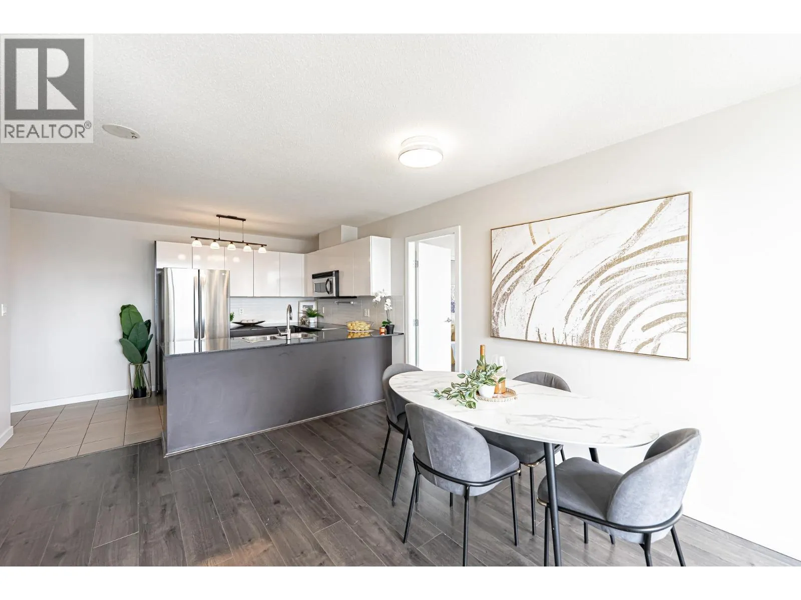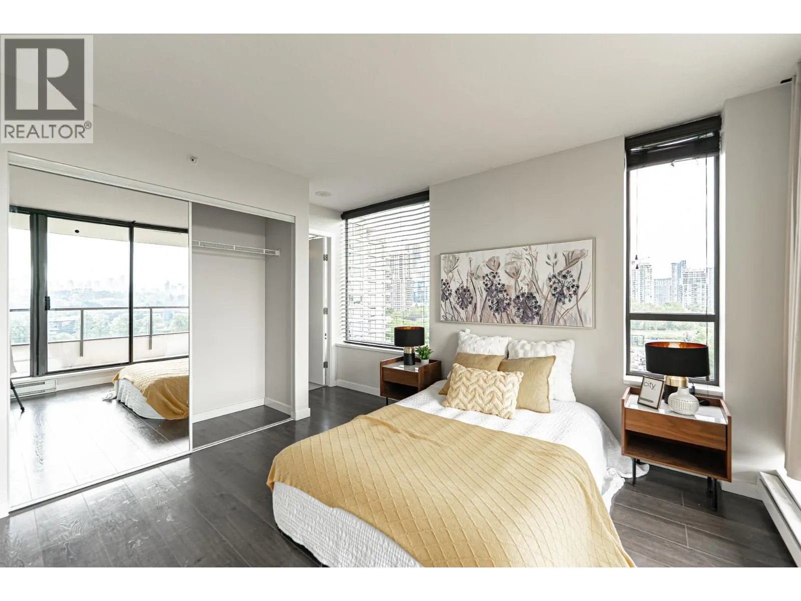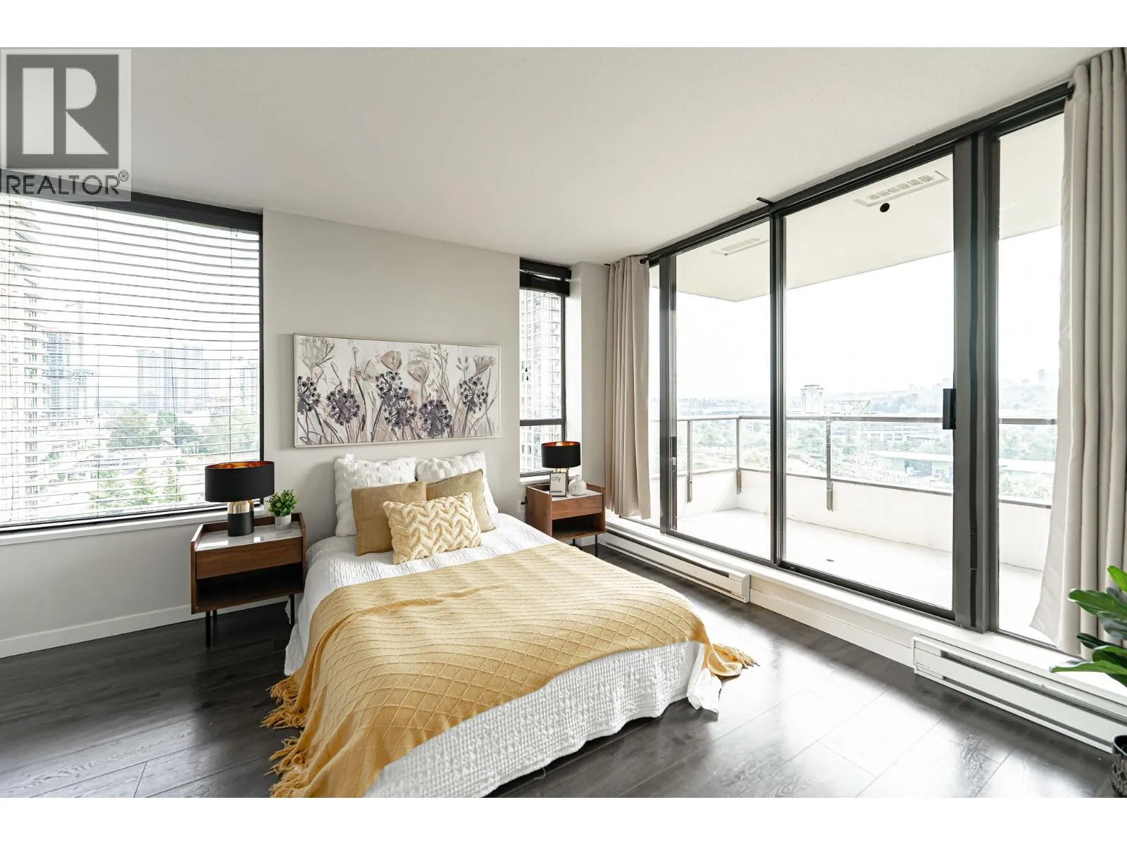 TWO PARKING spots are just the icing on the cake of this Spectacular SOUTH EAST corner unit with unobstructed panoramic views on the SUNNY & QUIET side of this CONCRETE building, just steps to Gilmore Skytrain station! This unit features the perfect layout, with an L shaped kitchen with bar, two bedrooms on opposite sides of the home BOTH featuring ensuite bathrooms! There's still space for a spacious living area with fireplace and a formal dining room! There are TONS of windows, allowing you to see all the way from the north shore mountains to Vancouver. The building features incredible amenities such as a gym, hot tub, steam, games room, party room & significant outdoor space including gardens, BBQ and a child's play area. Call today to see this for yourself. TWO parking and one storage. Offers are welcome at any time. (id:27476)