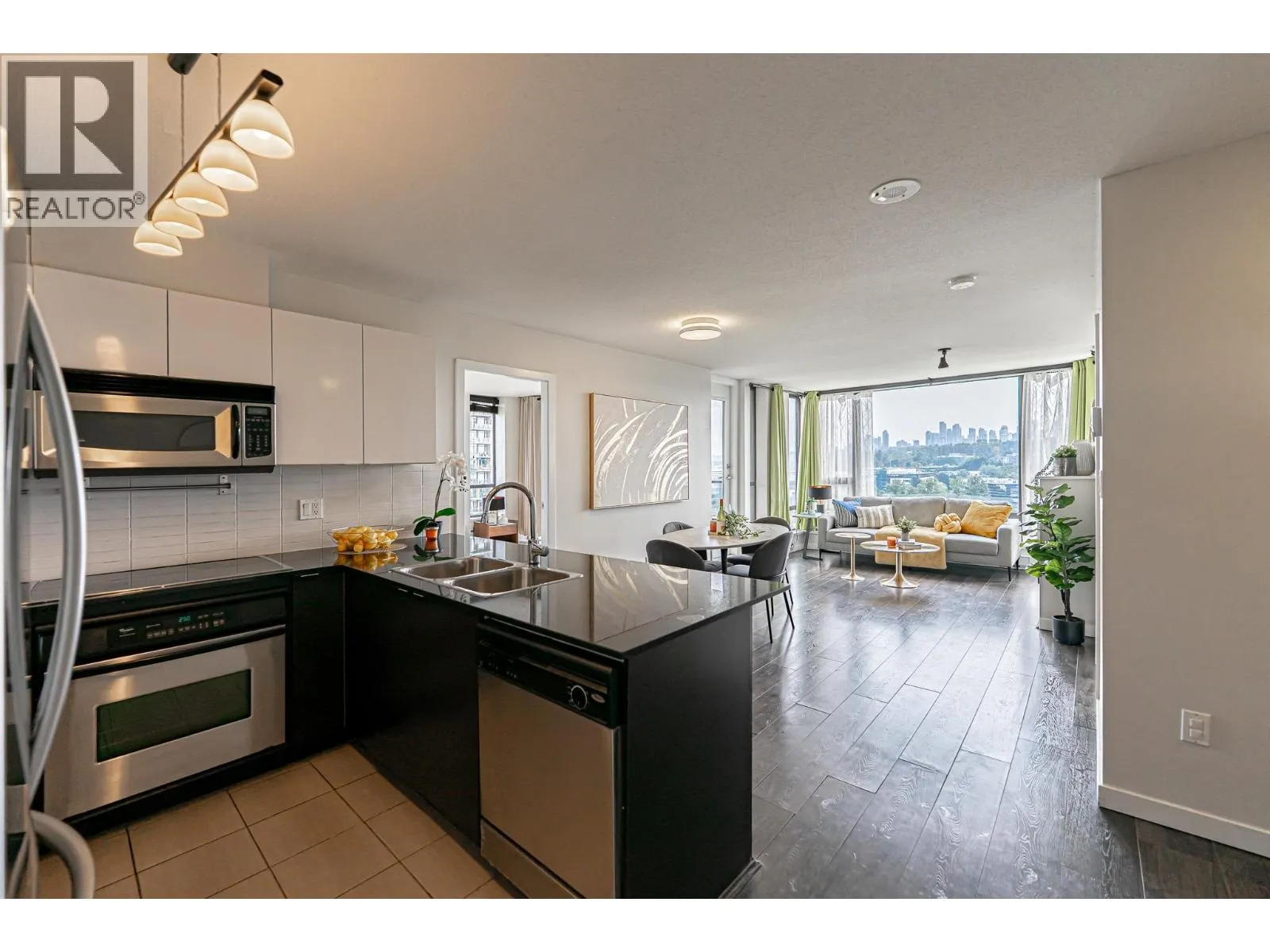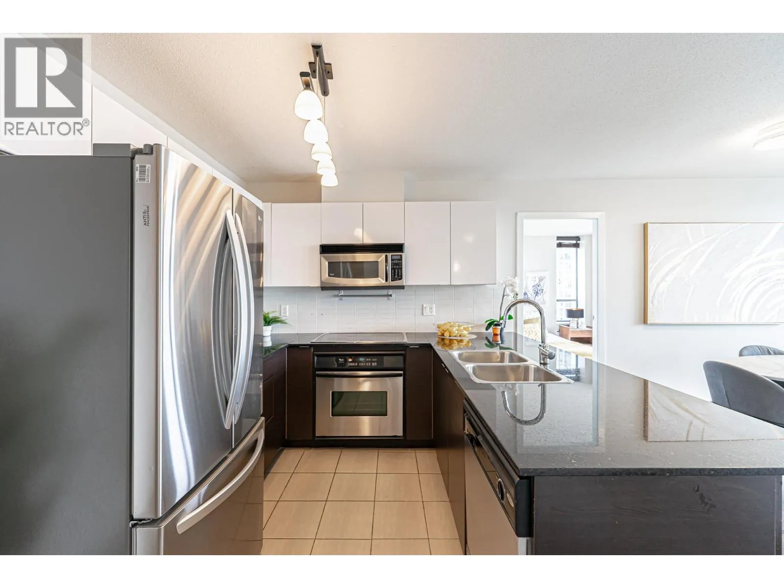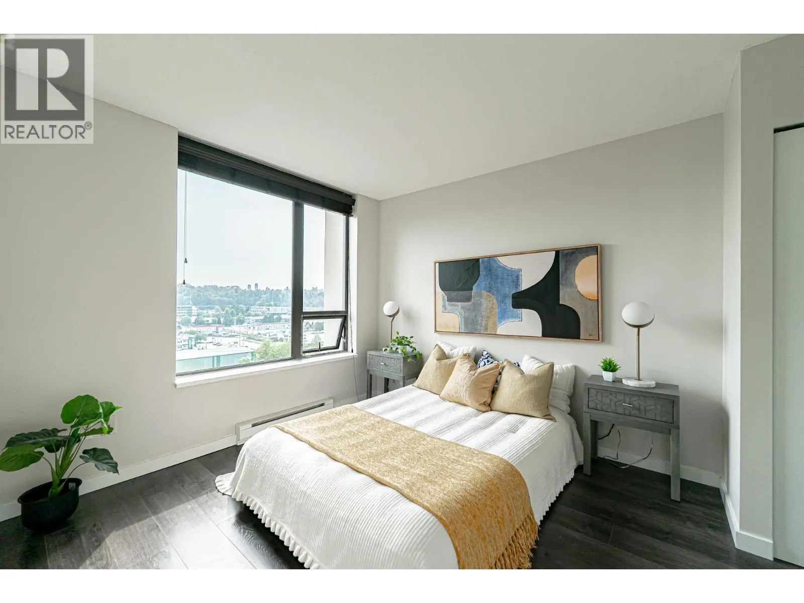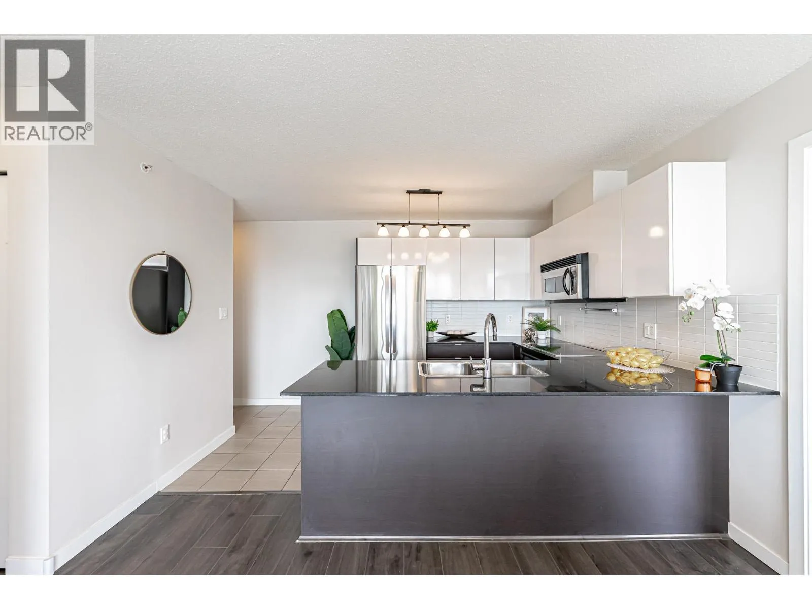 TWO PARKING spots are just the icing on the cake of this Spectacular SOUTH EAST corner unit with unobstructed panoramic views on the SUNNY & QUIET side of this CONCRETE building, just steps to Gilmore Skytrain station! This unit features the perfect layout, with an L shaped kitchen with bar, two bedrooms on opposite sides of the home BOTH featuring ensuite bathrooms! There's still space for a spacious living area with fireplace and a formal dining room! There are TONS of windows, allowing you to see all the way from the north shore mountains to Vancouver. The building features incredible amenities such as a gym, hot tub, steam, games room, party room & significant outdoor space including gardens, BBQ and a child's play area. Call today to see this for yourself. TWO parking and one storage. Offers are welcome at any time. (id:27476)