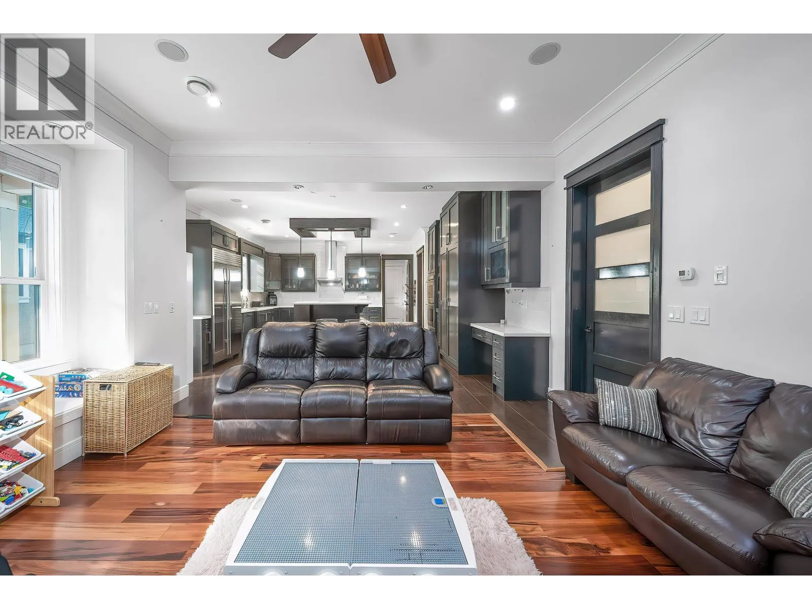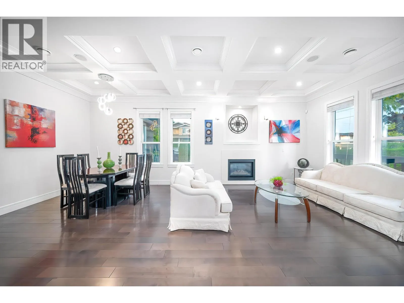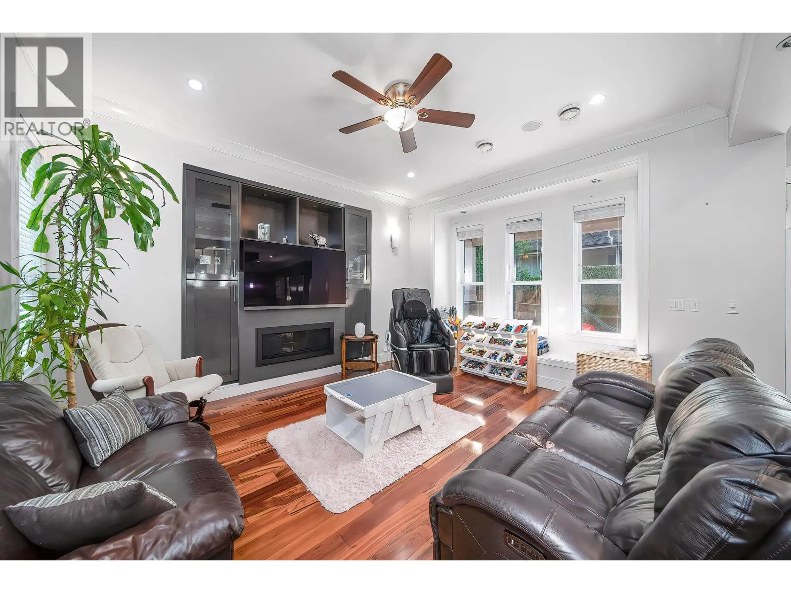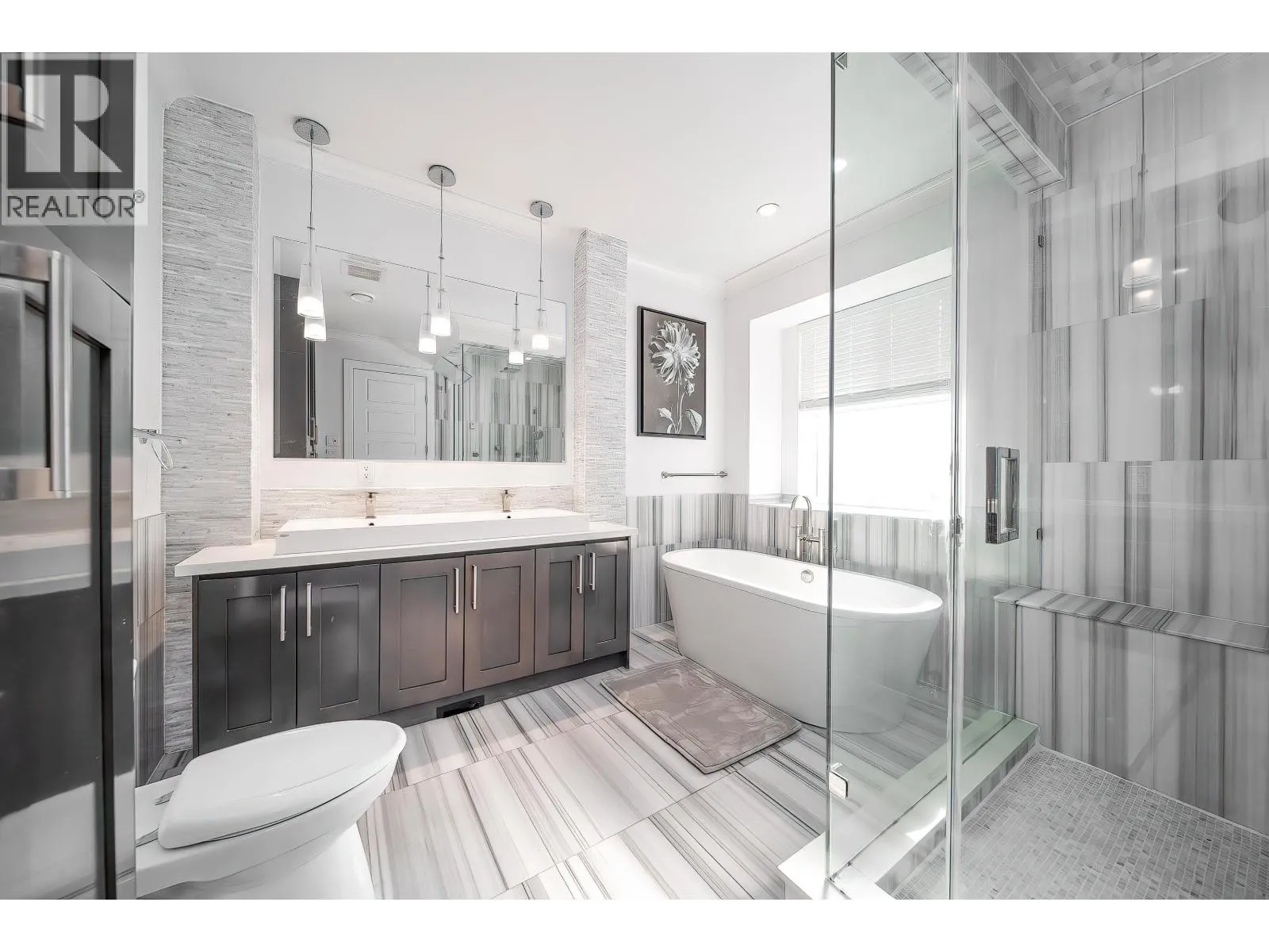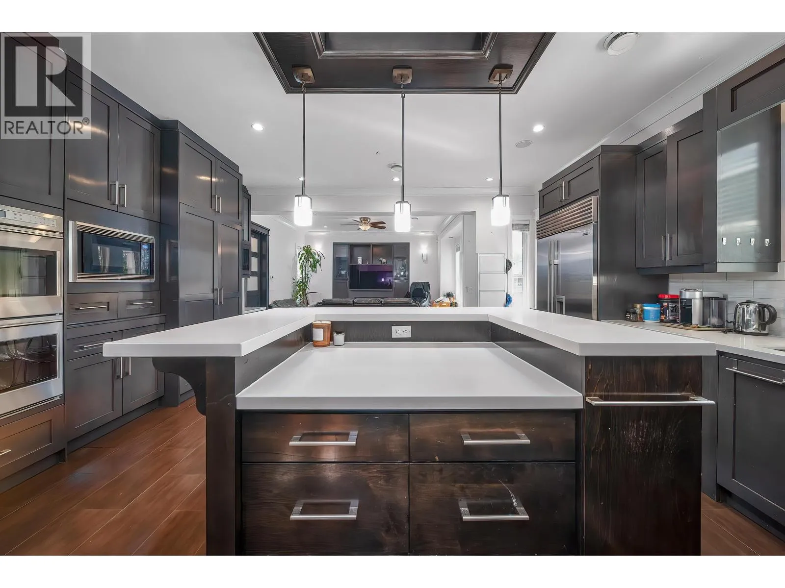 Welcome to Buckingham Heights. This 4324sf custom home on a 7500sf corner lot showcases refined design and superior craftsmanship. The main floor offers a grand entrance, formal living and dining rooms, and a chef´s kitchen with Caesarstone counters, Sub-Zero and Wolf appliances, and a large island, flowing into a family room and covered deck. Upstairs features 4 generous bedrooms, including a luxurious primary retreat with steam spa ensuite. The lower level is complete with a theatre, wet bar, games room, and a 2-bedroom suite with separate entry. Comfort is ensured with A/C, radiant heating, and a full security system. Steps to Deer Lake and Buckingham Elementary, with easy access to Metrotown and Hwy. A true statement of elegance. (id:27476)