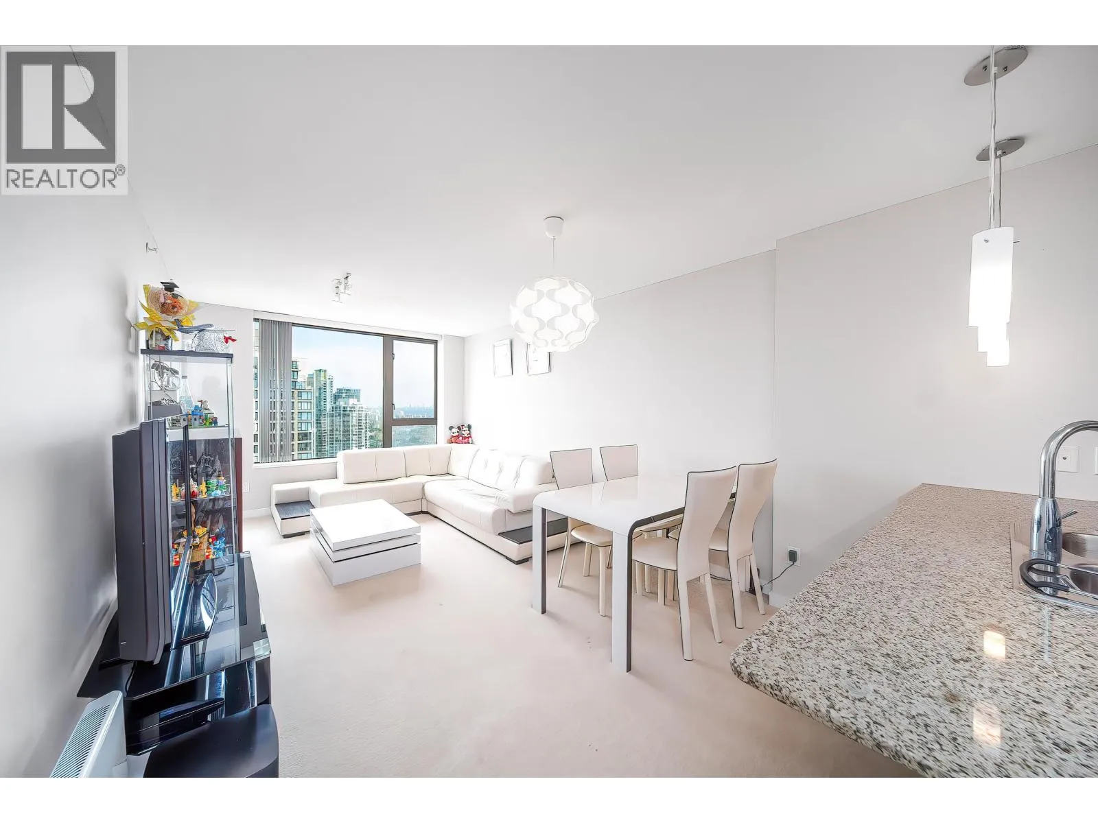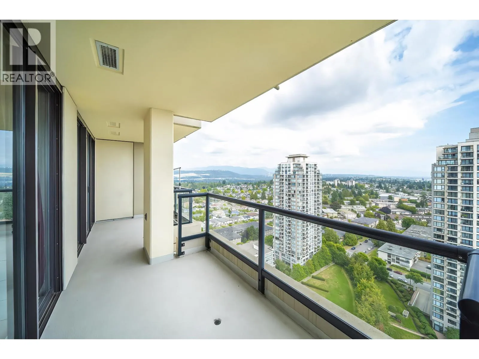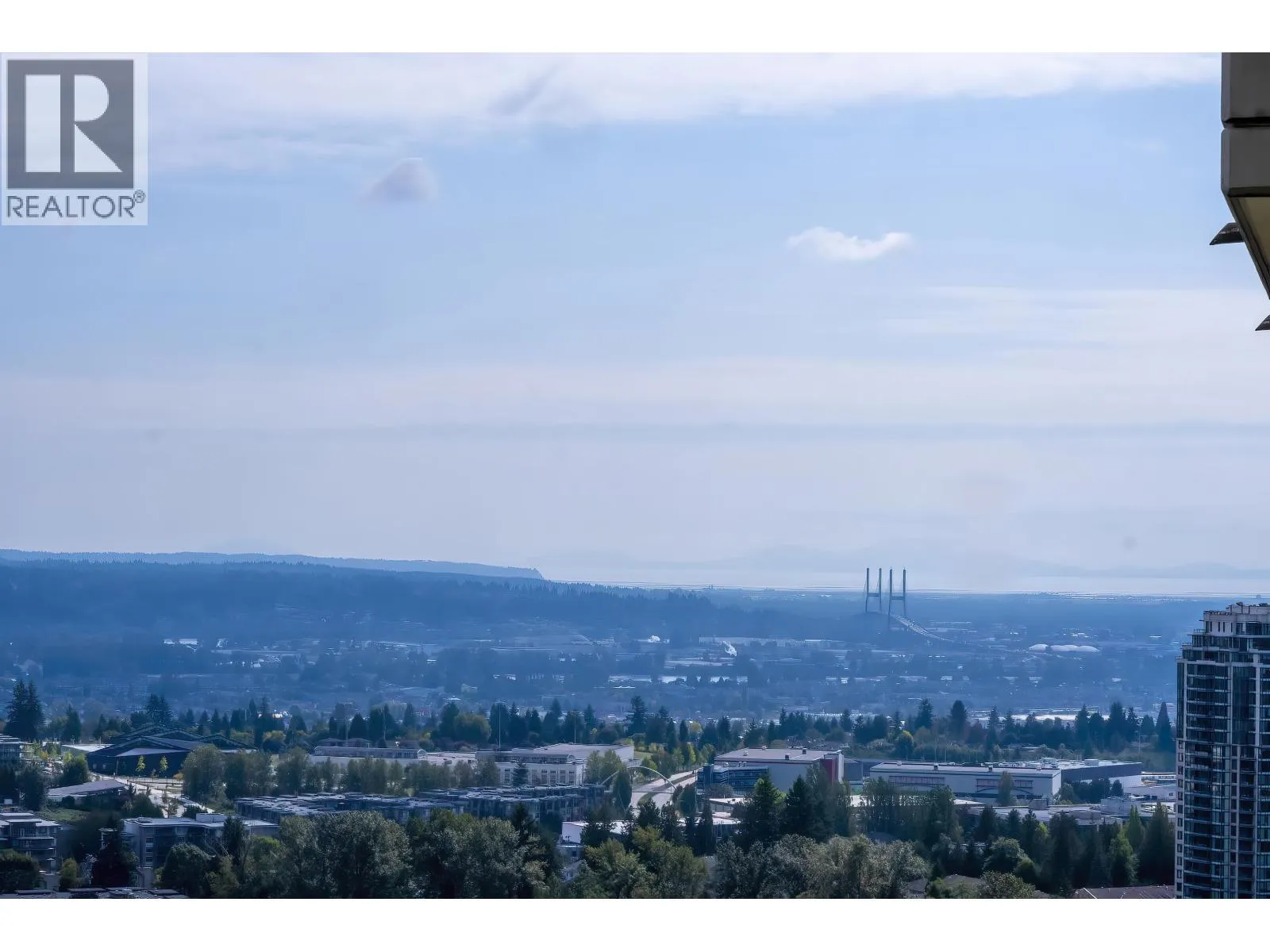 VIEWS! SPECTACULAR CITY, MOUNTAIN & WATER VIEWS! Welcome to WEST, a sought-after BOSA-built community in the heart of Highgate Village, Burnaby South. This spacious and bright 2-bedroom, 2-bathroom home offers a highly functional "no-wasted-space" layout. The generous east-facing primary bedroom easily fits house-sized furniture and boasts unobstructed views of Mount Baker and the lush courtyard below. Enjoy a modern open-concept kitchen with a gas range, granite countertops, and convenient in-suite laundry. A massive balcony extends from the living room and both bedrooms-perfect for relaxing or entertaining while taking in the breathtaking views. Comes complete with one secure underground parking stall and one storage locker. Don´t miss this opportunity-This is HOME! Come to show! (id:27476)