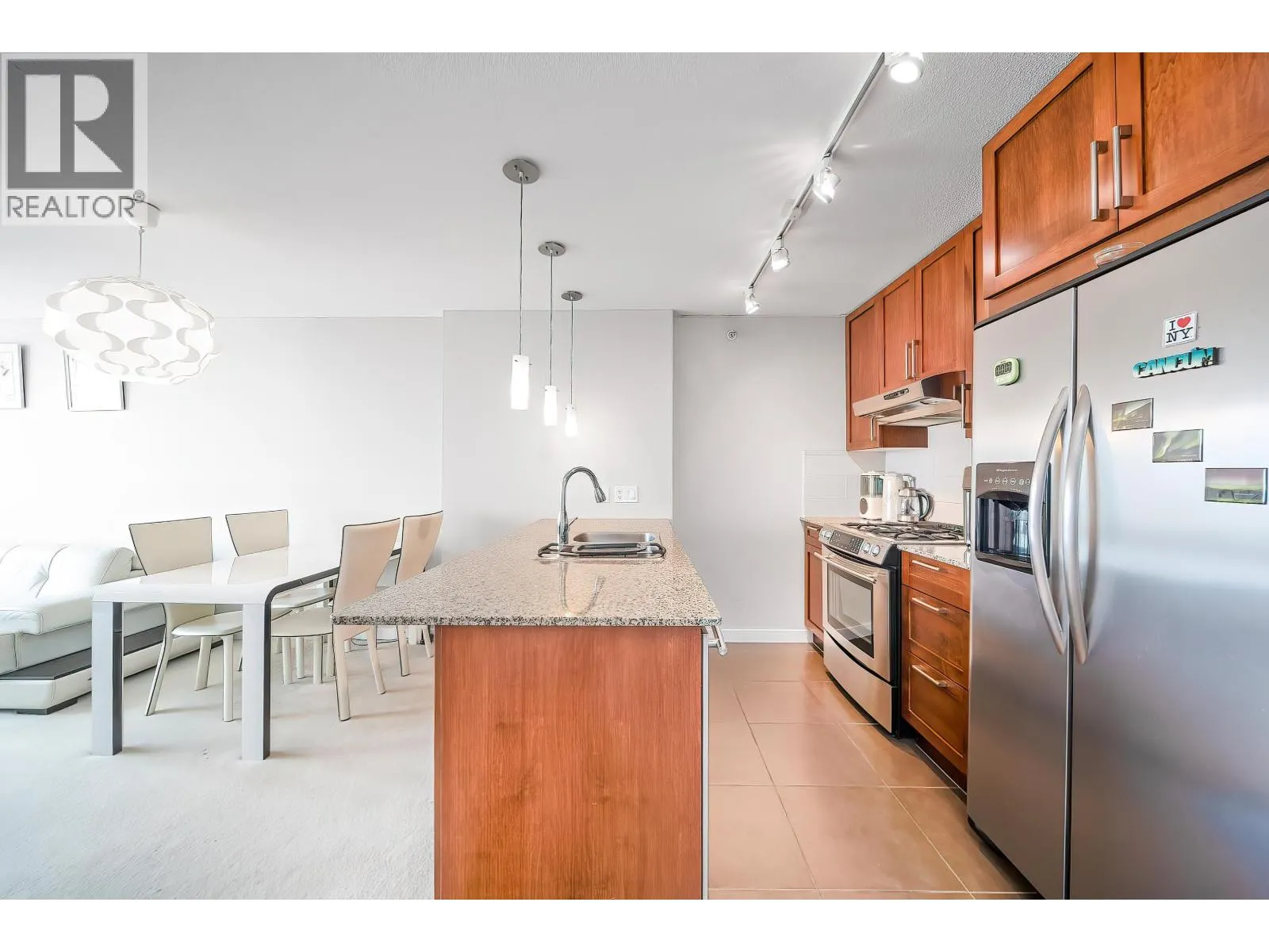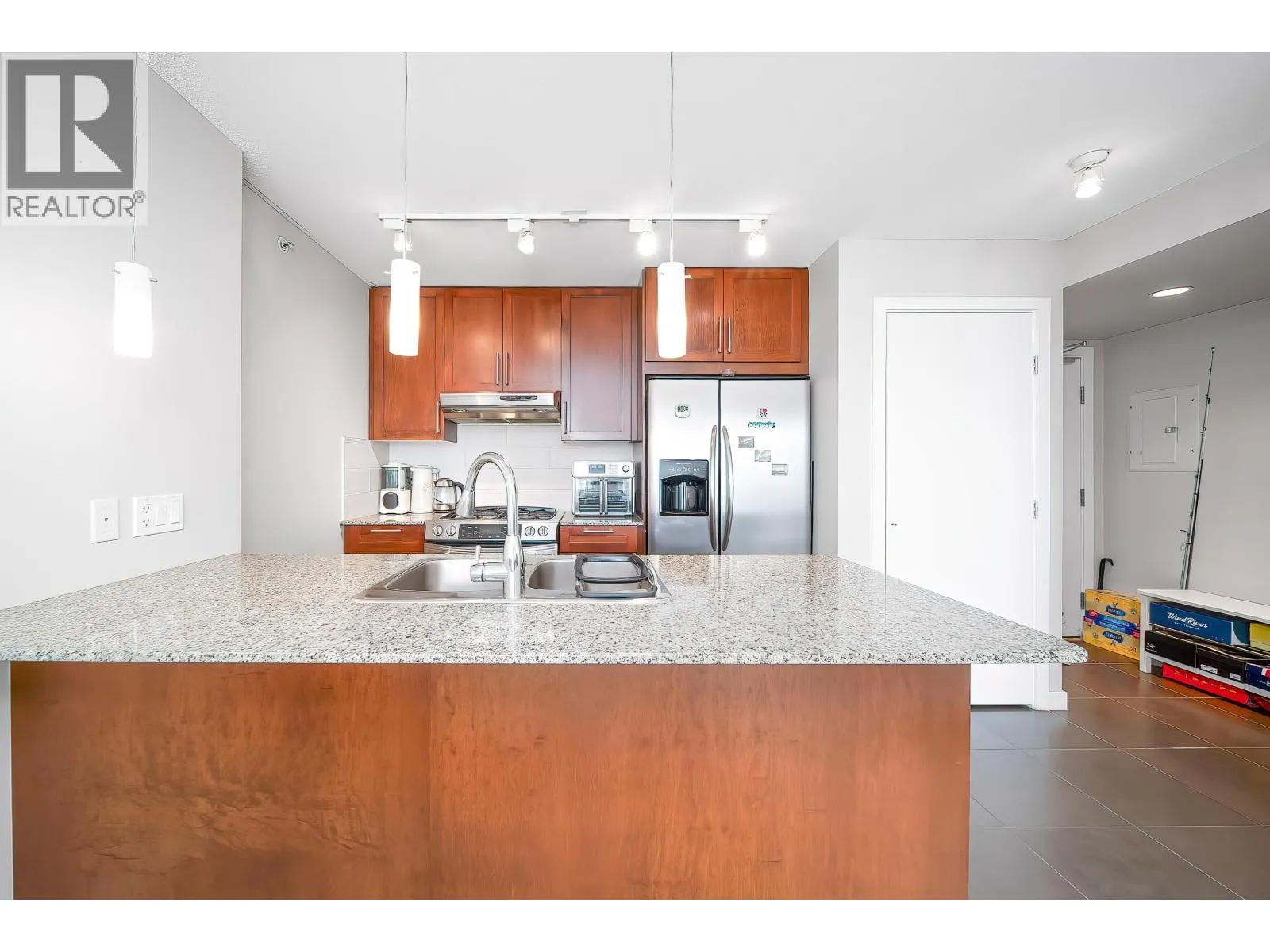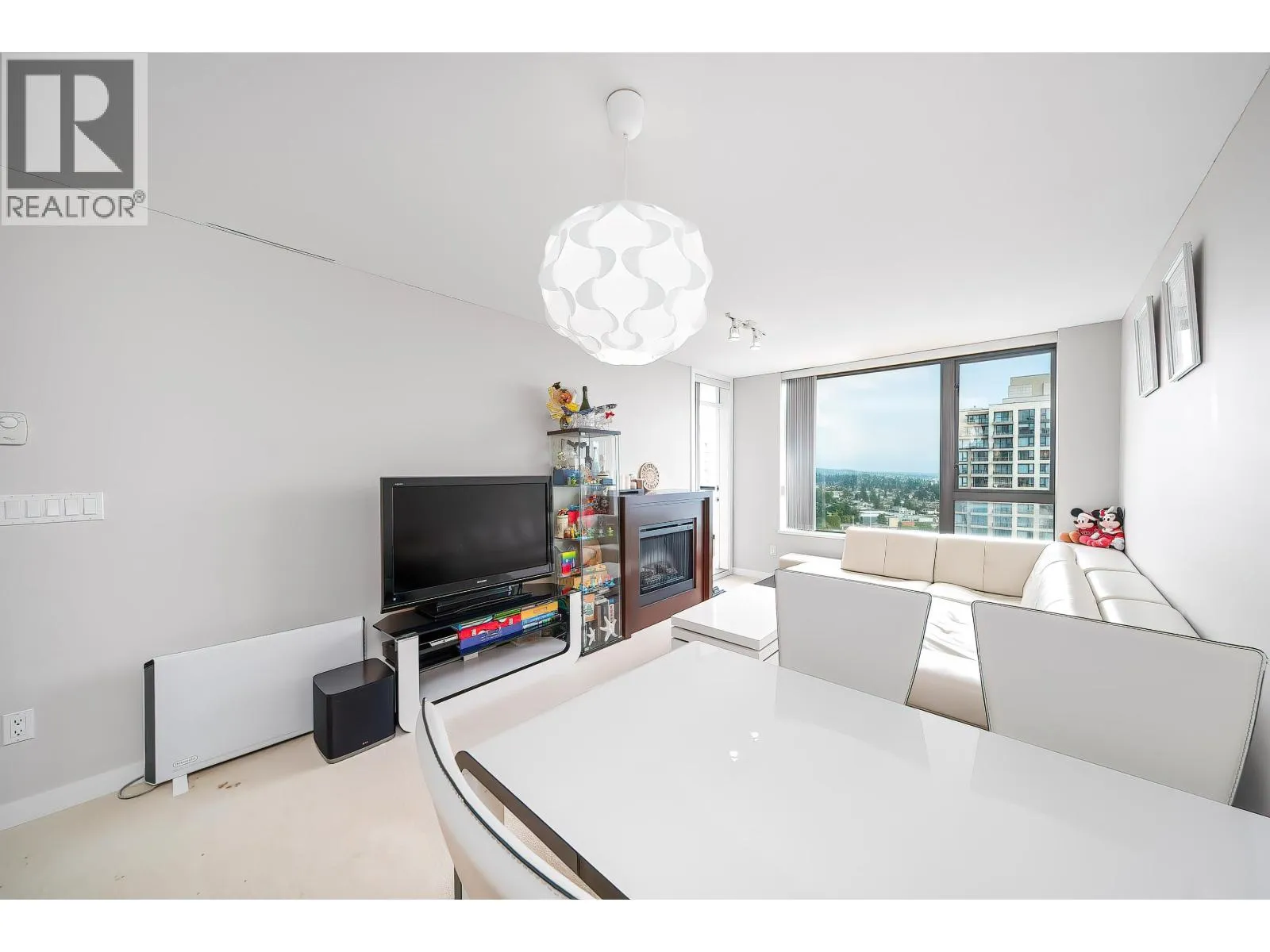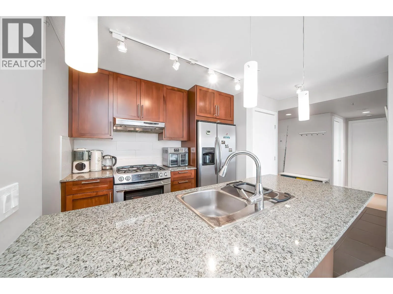 VIEWS! SPECTACULAR CITY, MOUNTAIN & WATER VIEWS! Welcome to WEST, a sought-after BOSA-built community in the heart of Highgate Village, Burnaby South. This spacious and bright 2-bedroom, 2-bathroom home offers a highly functional "no-wasted-space" layout. The generous east-facing primary bedroom easily fits house-sized furniture and boasts unobstructed views of Mount Baker and the lush courtyard below. Enjoy a modern open-concept kitchen with a gas range, granite countertops, and convenient in-suite laundry. A massive balcony extends from the living room and both bedrooms-perfect for relaxing or entertaining while taking in the breathtaking views. Comes complete with one secure underground parking stall and one storage locker. Don´t miss this opportunity-This is HOME! Come to show! (id:27476)