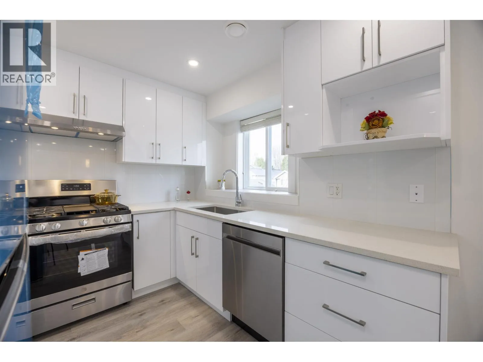 Nestled in the heart of Burnaby North, this stunning home offers a perfect blend of modern elegance and practical living. This beautifully designed 2-storey back unit duplex spans 1,402 square feet and features two kitchens, a single-car garage, and a private backyard. The lower level includes three bedrooms and 1.5 baths, making it an ideal space for generating rental income. The home boasts sleek finishes, including elegant pendant crystal lighting, laminate flooring, and heating throughout. Enjoy breathtaking views of the North Shore Mountains and unwind in the low-maintenance, gravel-landscaped backyard. Located in a welcoming and convenient neighborhood with top-rated schools, this property is just 5 minutes from BCIT and the Skytrain. Don´t miss the opportunity, book showing today!!! (id:27476)