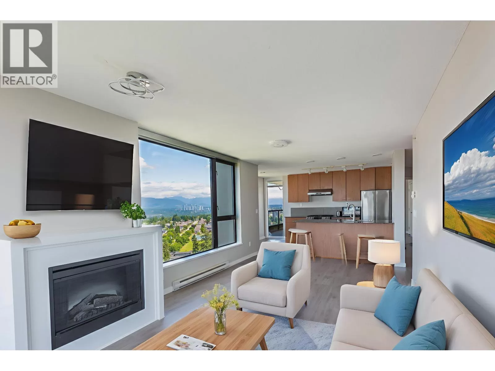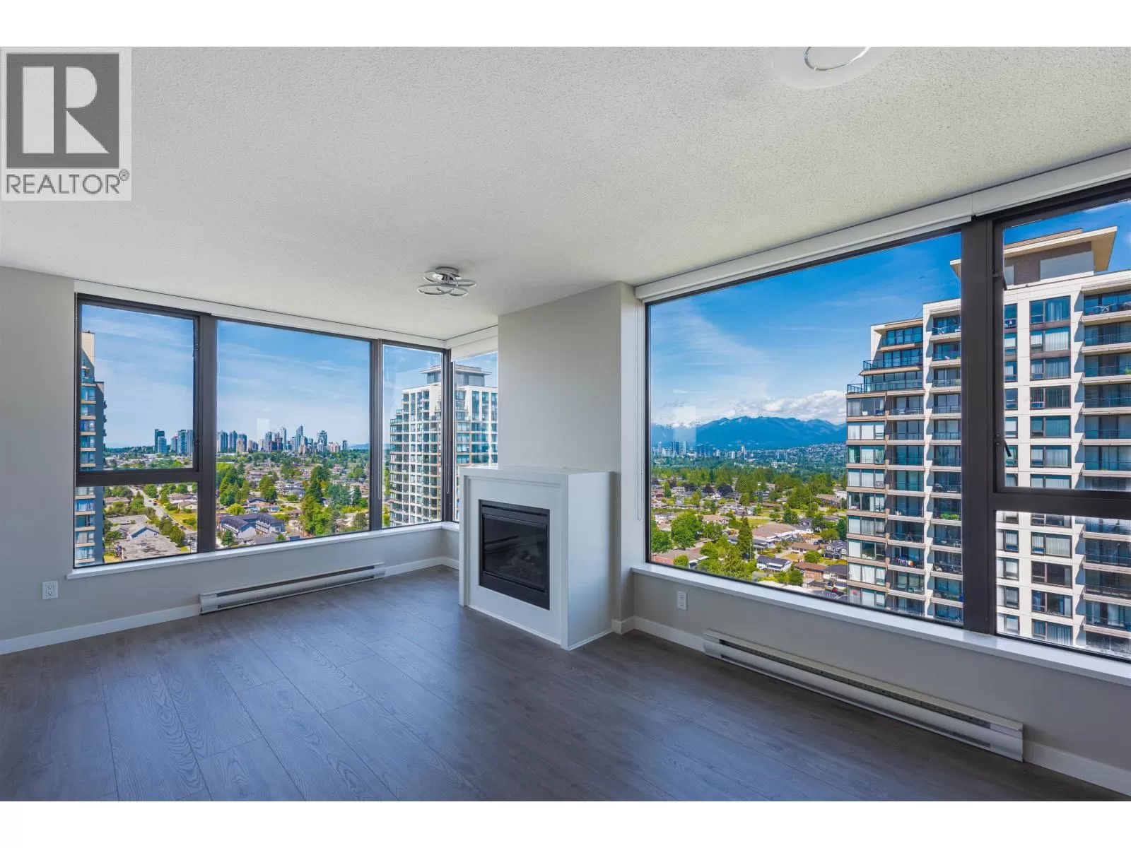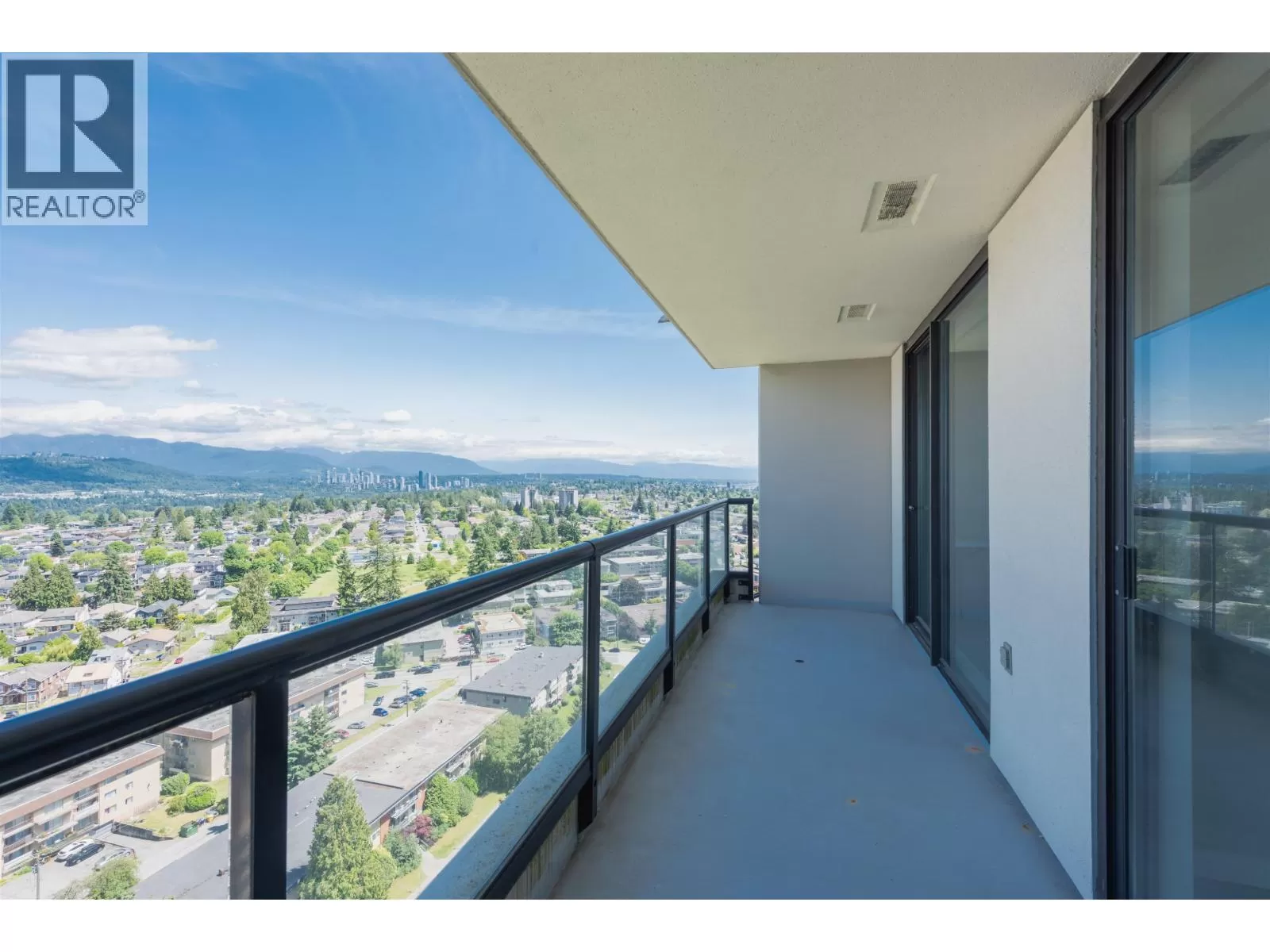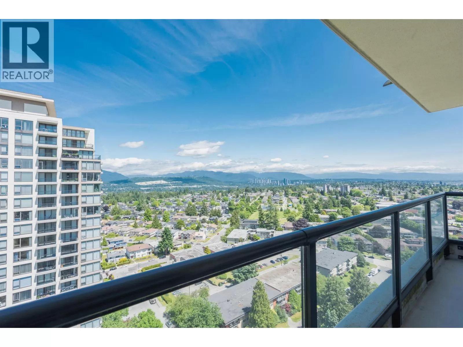 Welcome to Emerson by Bosa, located in the heart of Highgate! Rare 3 bed 2 bath corner unit with stunning city + mountain views and 2 huge balconies! Over 1,300 sqft of bright, functional space with open kitchen, granite counters, gas stove, and stainless steel appliances. Recent updates include hardwood floors, custom drapes, and den converted to a full dining area. Includes 2 parking stalls and 1 storage locker. Steps to Highgate Village, Save-On-Foods, Shoppers Drug Mart, and more. Walking distance to Edmonds SkyTrain and a short drive to Metrotown. Don´t miss it! Showing by appointment. (id:27476)