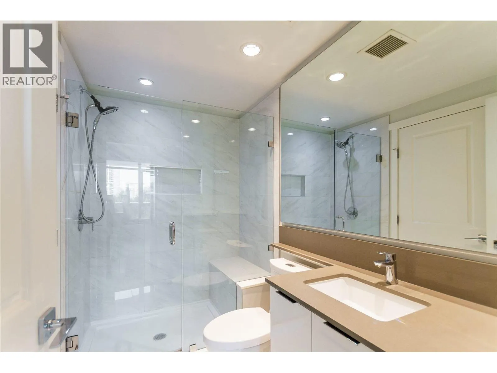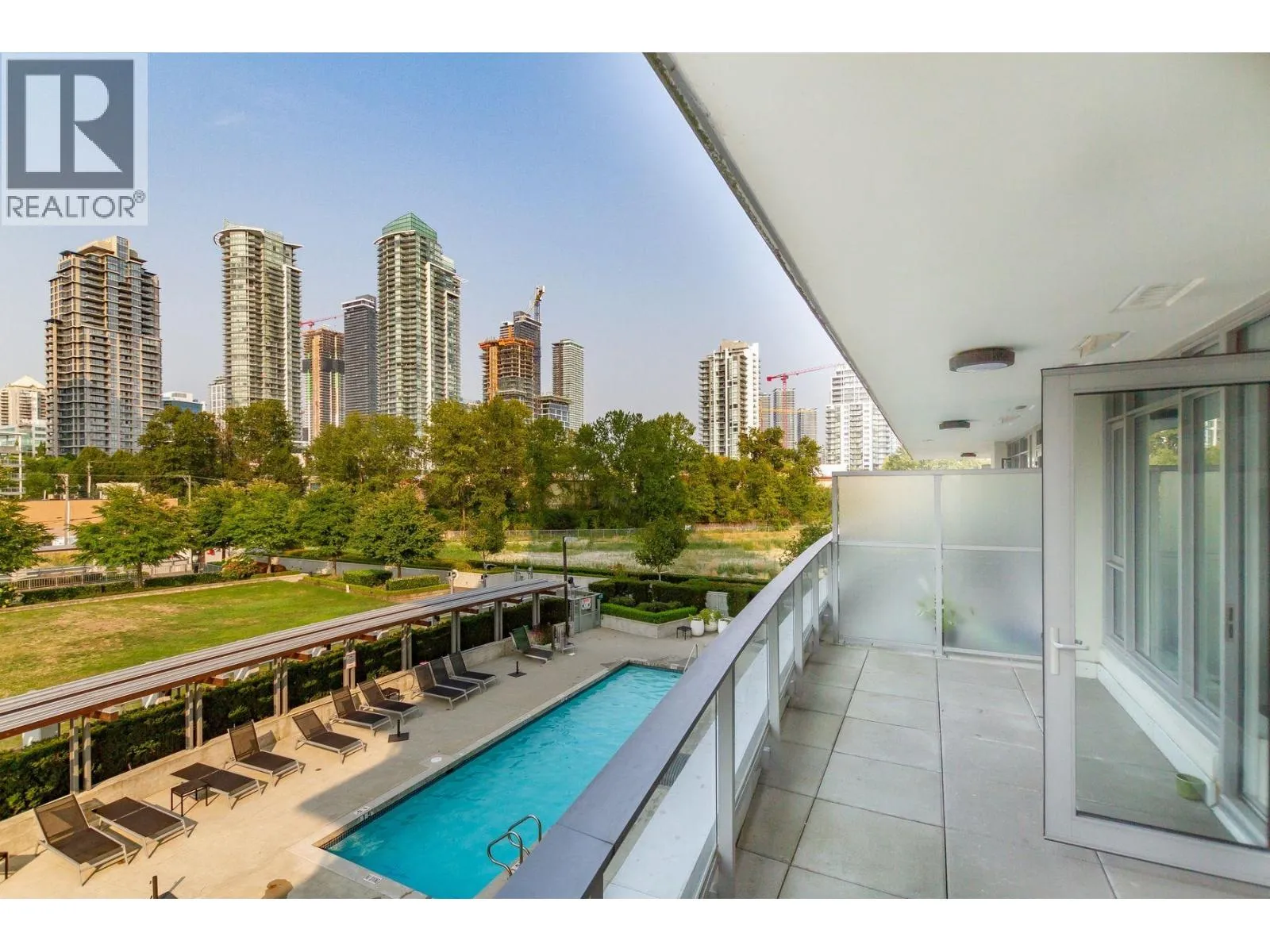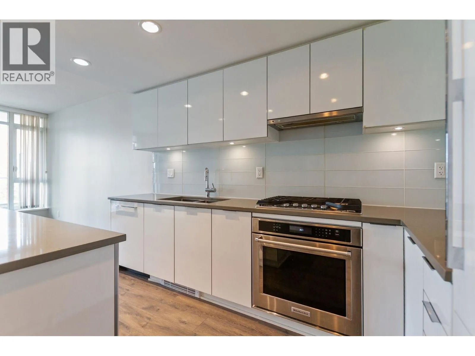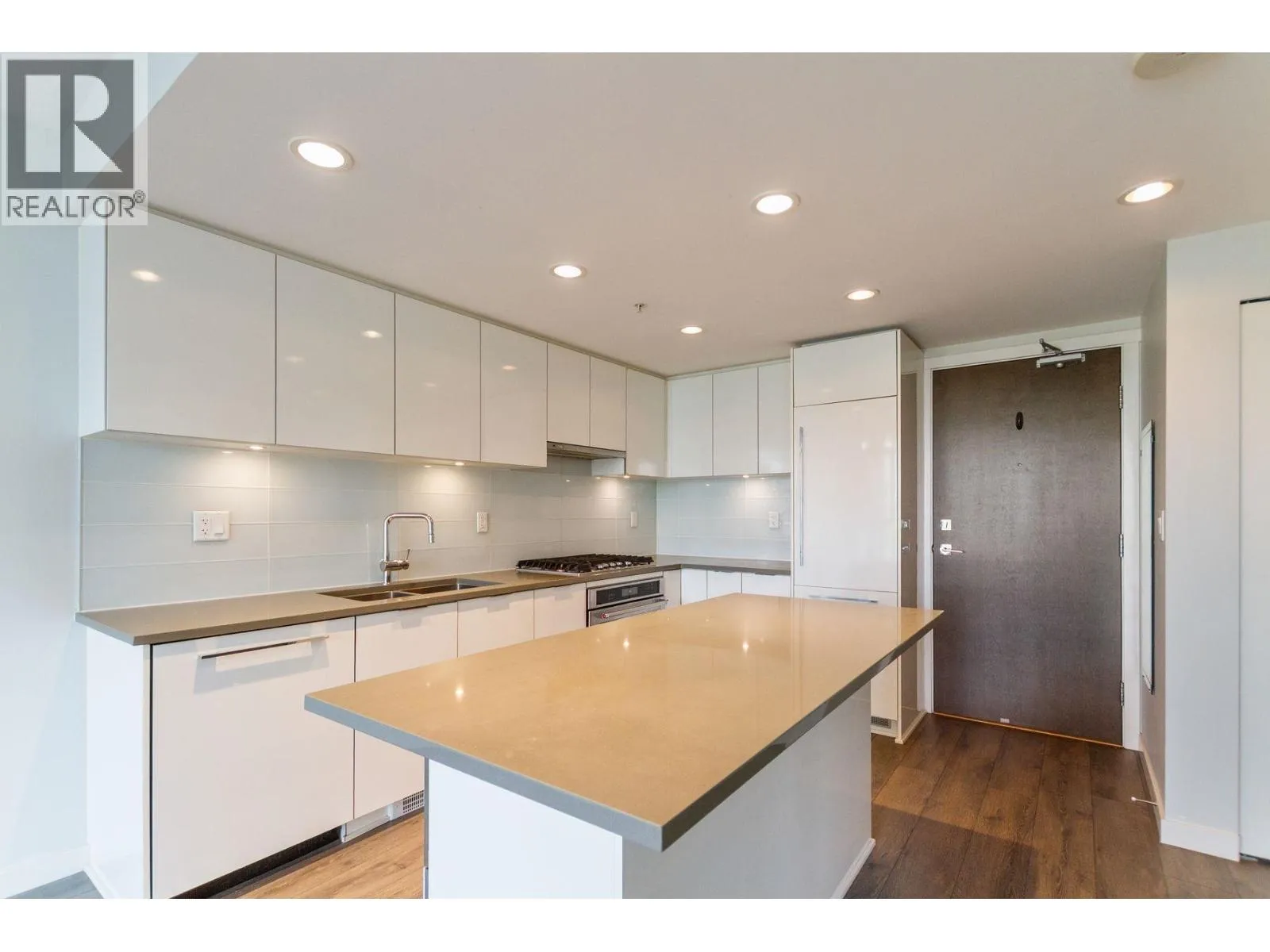Quality built FULTON HOUSE by Polygon. North facing floor-to-ceiling, wall-to-wall windows. Walkout entertain and relax on your full-width balcony taking the City w/peak-a-boo mountain views. Kitchen boast built-in island w/seating for 4, easy clean acrylic cabinets w/under-cabinet lighting, Gas cooktop stove, stainless steel under mounted double sink. Glass tile backsplash. Bdrm has cheater ensuite to the full size walk-in shower with resting bench. Walk-through closet w/his & her closets. Rare 2 side-by-side parking included in this spacious 1 bdrm home w/your own EV charging outlet. Storage & bike locker as well. Residents can explore the 28,000 square ft clubhouse, which incl fitness center, yoga studio, outdoor swimming pool, dog park, kids play area, sauna, steam room, hot tub & Lounge (id:27476)