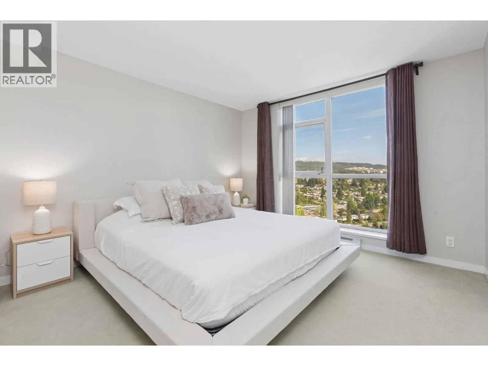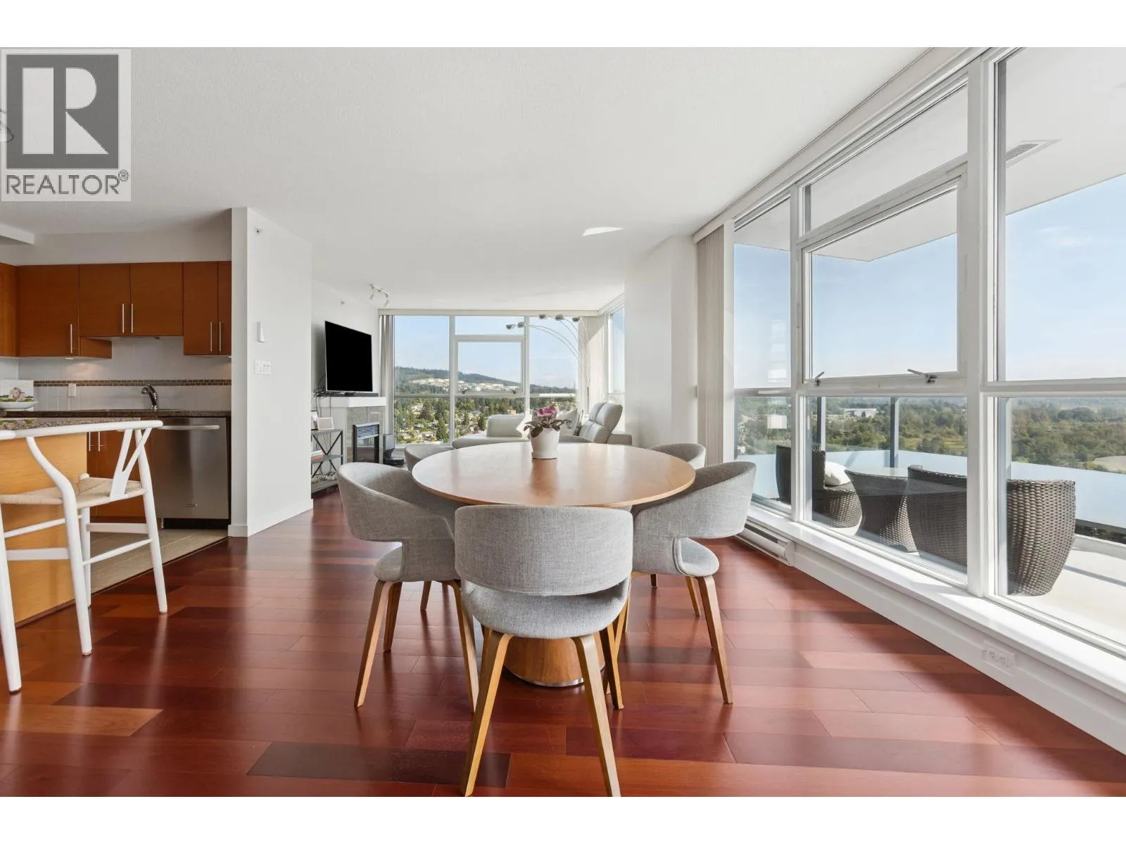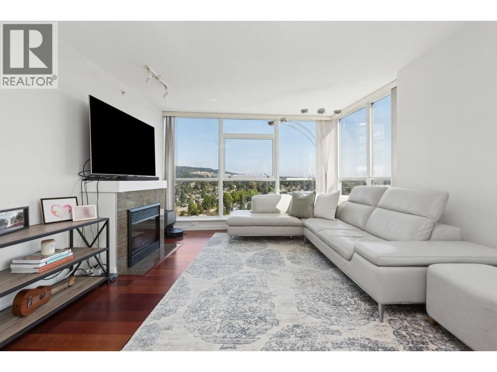 UNOBSTRUCTED breathtaking views from this 2BED + 2BATH + DEN corner home at Legacy. With almost 1300 SF, there´s room for everyone! Both bedrooms fit king beds & the large DEN is perfect for a playroom, work space or even a guest room. Spa-inspired baths & generous closets enhance comfort while the gourmet kitchen complete with stainless steel appliances, granite counters & centre island, flows effortlessly into the dining & livingroom with cozy fireplace. Step onto a HUGE 160 SF covered balcony, great for morning coffee or evening lounging. Well maintained with new LG laundry, 2 parking & 1 locker. Amenities include gym, steam, sauna, party lounge & a serene rooftop courtyard. Steps to Holdom Station, Starbucks, Garden Works, Buy Low Foods, 1 stop from Amazing Brentwood & minutes to Costco SFU BCIT recreation Hwy 1. (id:27476)