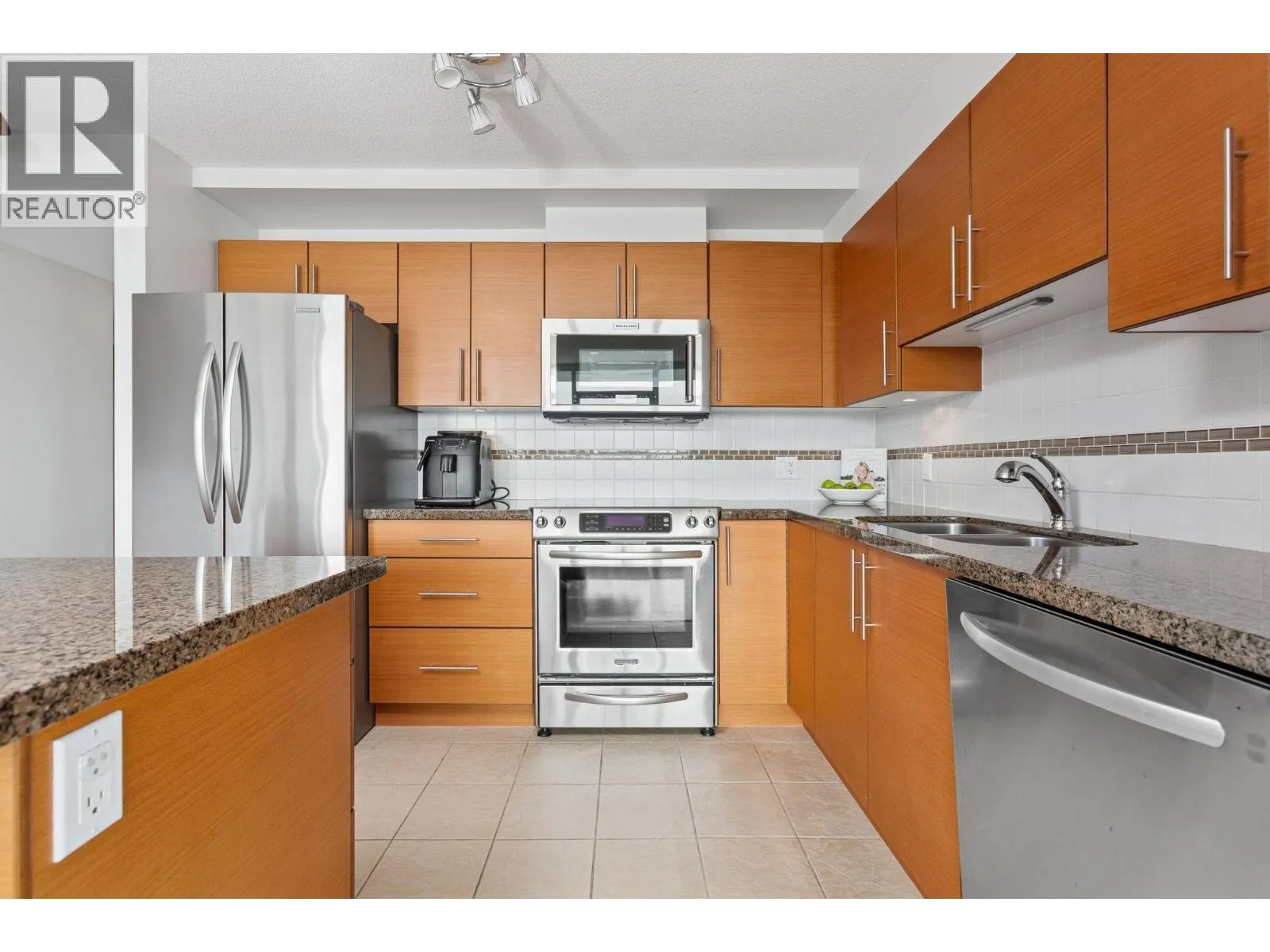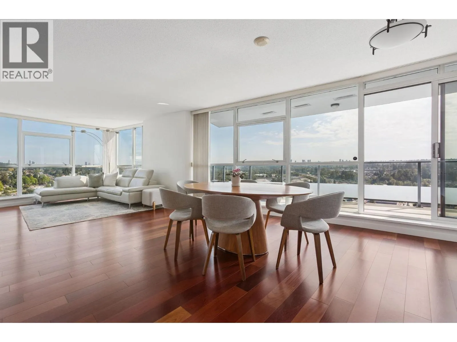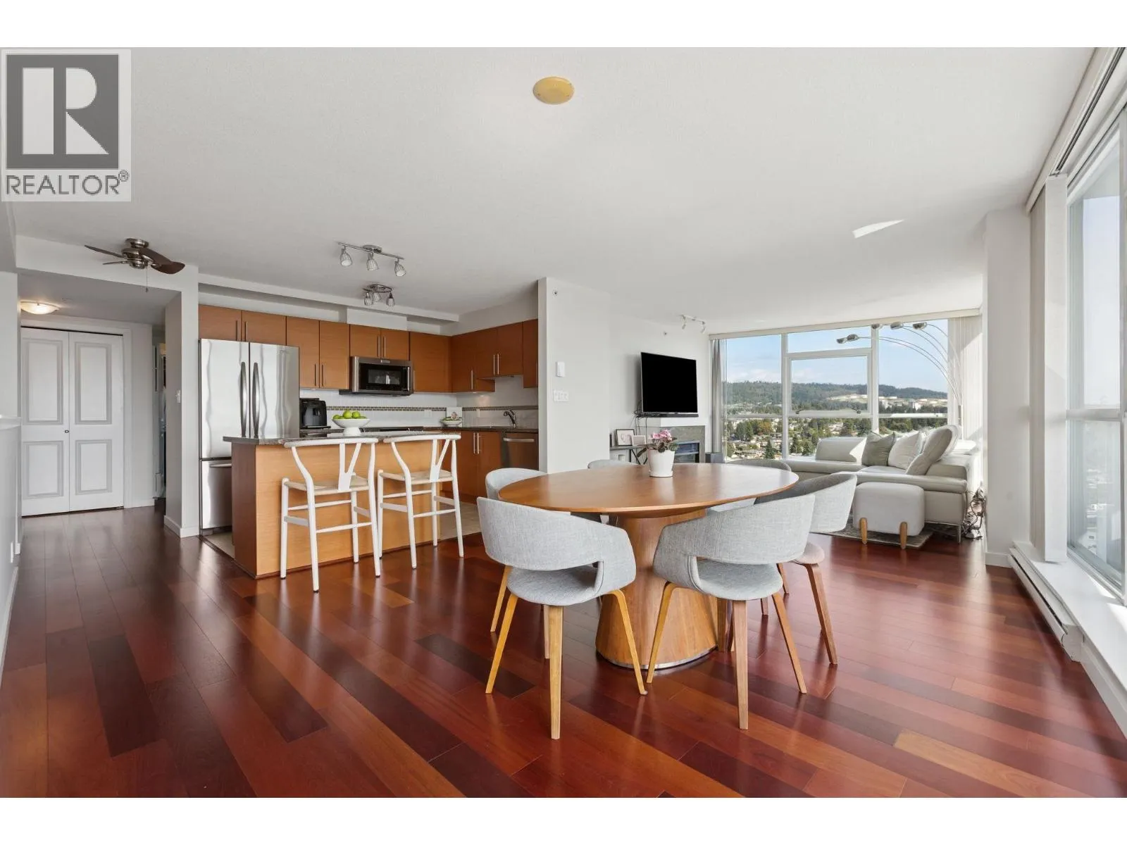 UNOBSTRUCTED breathtaking views from this 2BED + 2BATH + DEN corner home at Legacy. With almost 1300 SF, there´s room for everyone! Both bedrooms fit king beds & the large DEN is perfect for a playroom, work space or even a guest room. Spa-inspired baths & generous closets enhance comfort while the gourmet kitchen complete with stainless steel appliances, granite counters & centre island, flows effortlessly into the dining & livingroom with cozy fireplace. Step onto a HUGE 160 SF covered balcony, great for morning coffee or evening lounging. Well maintained with new LG laundry, 2 parking & 1 locker. Amenities include gym, steam, sauna, party lounge & a serene rooftop courtyard. Steps to Holdom Station, Starbucks, Garden Works, Buy Low Foods, 1 stop from Amazing Brentwood & minutes to Costco SFU BCIT recreation Hwy 1. (id:27476)