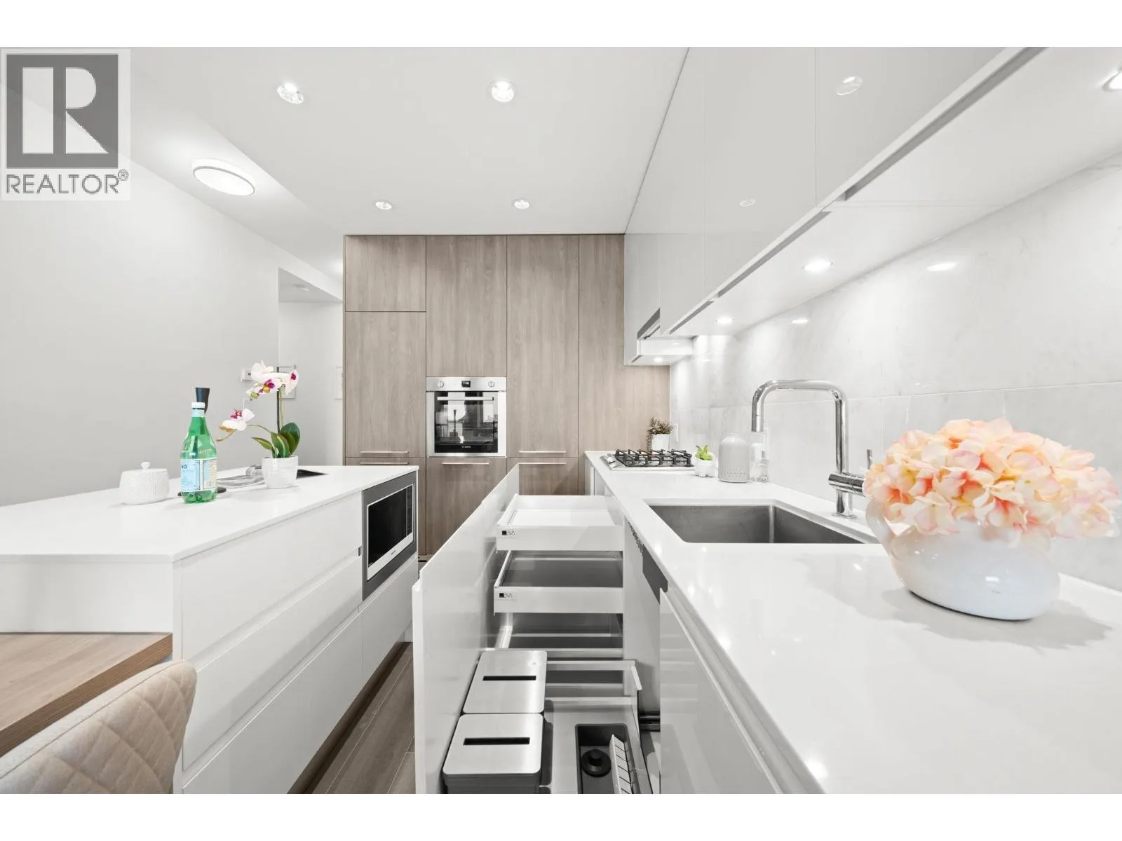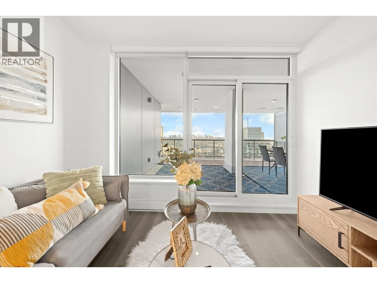 Step onto your private 450 SF covered patio and feel like you´re floating above the city-perfect for BBQs, outdoor dining, or simply soaking in breathtaking south-facing views. With a gas hookup, this outdoor living space is an extension of your home. Inside, the open-concept living area is bright and pillar-free, connecting seamlessly to a gourmet kitchen with Bosch appliances, sleek cabinetry, custom drawers.and an island with built-in dining, Waking up to the unobstructed view from your primary suite with a walk-in closet and an ensuite, second bedroom offers flexibility for guests or work-from-home. World-class amenities-gym, party/music rooms, outdoor BBQs-plus direct access to Brentwood Mall, Cineplex and supercharging stations. Call today to experience this breathtaking view yourself! (id:27476)