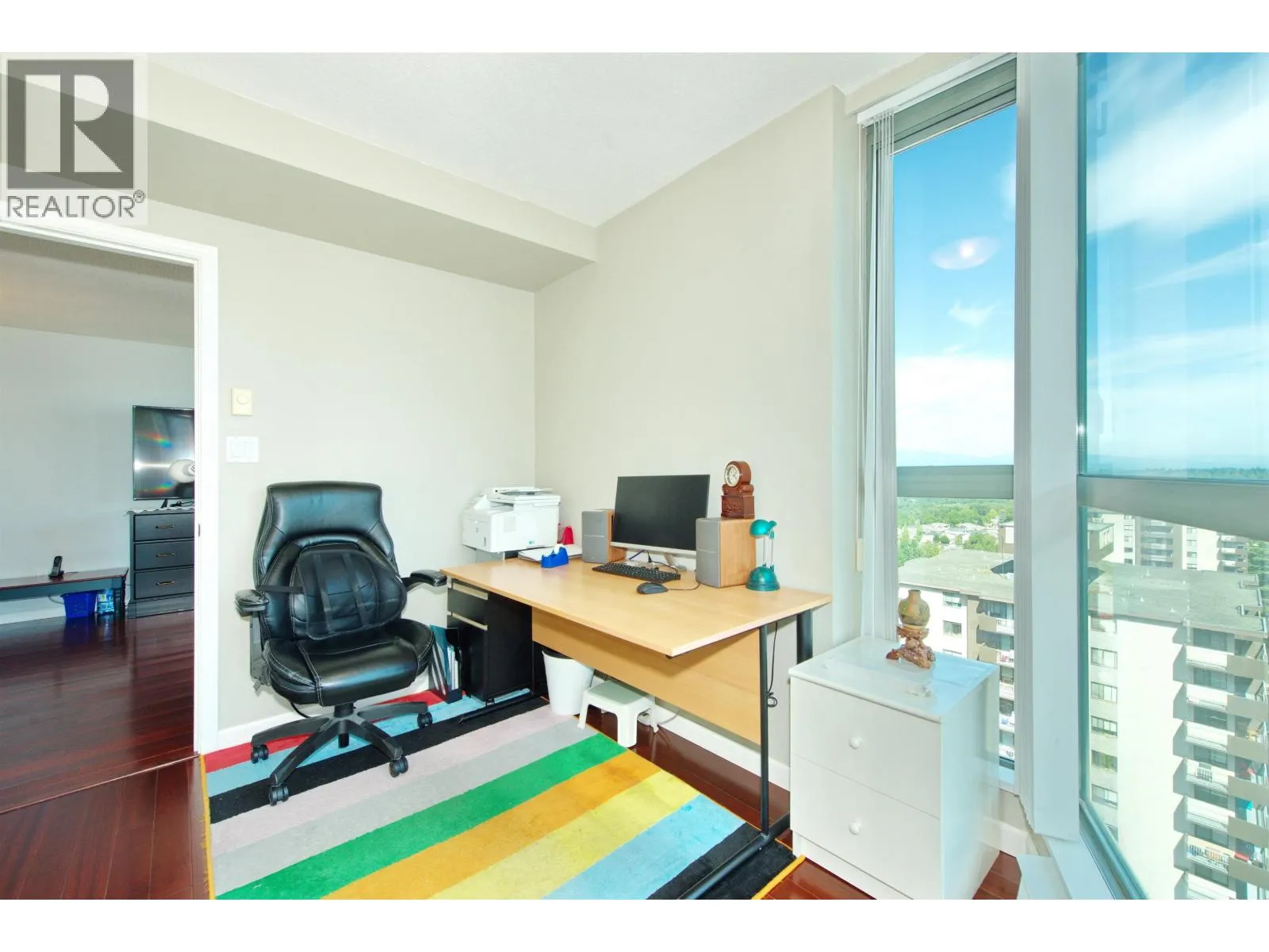 BREATHTAKING unobstructed view of Deer Lake and Mount Baker. Spacious & airy SOUTHEAST facing corner unit with lots of natural lights. Concrete highrise located right across the VIBRANT Metrotown shopping mall surround by coffee shops & restaurants. Few minutes walk to metrotown skytrain, T&T, Crystal Mall & Central Park. Spacious 2 bedrooms & BIG den ( den has floor to ceiling windows and and is big enough for a 3rd bedroom). Walk-in closet in Primary Bedroom. Unit is well kept by the owner and updated kitchen with dark wood color scheme Cabinets & white quartz countertop, stainless steel appliances and updated laundry machine. Laminate floor throughout the entire unit with gas fireplace in living room. 2 side by side parking stalls & 1 locker. OPEN HOUSE NOV2 SUNDAY FROM 2 - 4PM (id:27476)
