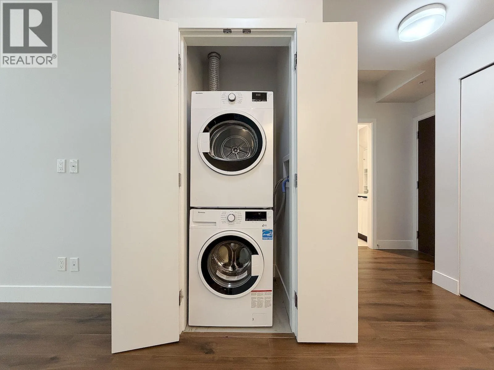 This open floor plan allows for a continuous flow throughout the kitchen, dining and living room areas. This home features 9´ ceilings, stainless steel appliances, quartz countertops with undermount sinks, quality German faucets, laminate flooring, balcony, in-suite laundry, 1 storage,1 EV parking. Centrally located within minutes to public transportation and restaurants (3 to bus stop, 5 to Skytrain). one small pet okay. You may send a request for viewing on the web page https://www.bobzhong.com/property/lane/. (id:27476)