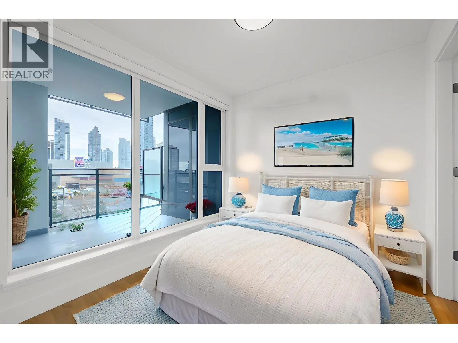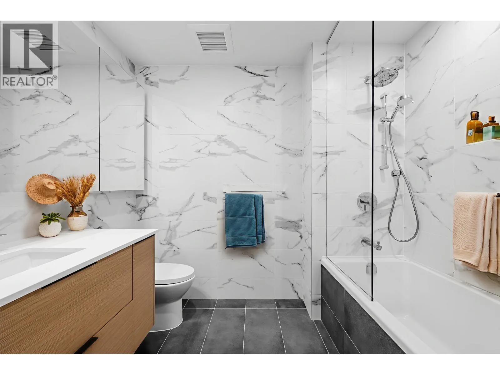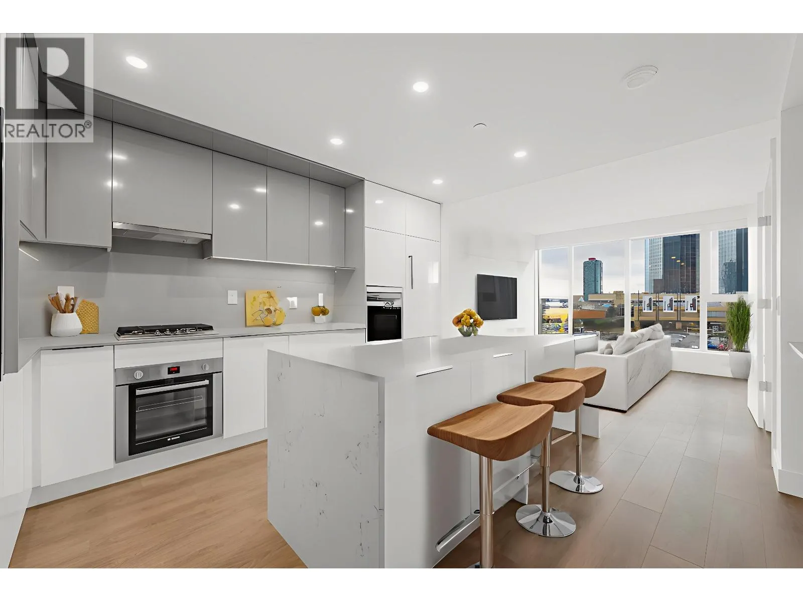 The Sussex by award-winning Townline is centrally located in the heart of Metrotown. This gorgeous SOUTH facing modern 1 bedroom has nice view with a walk-in closet. Very functional layouts with a chef's dream kitchen, Bosch appliances with a gas cooktop and high-end designer finishes. The spacious balcony is great for year long bbq and entertaining. The spa inspired bathroom with frameless glass shower and heated flooring. Invite family and friends over to enjoy this over 6000sf amenities including a bowling lounge, concierge, gym and more. One parking included. (id:27476)