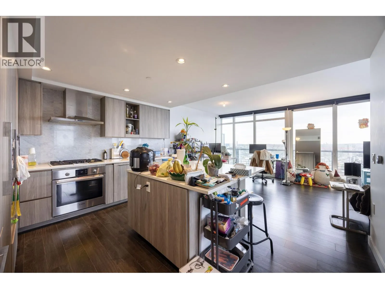 Welcome to this luxurious three-bedroom, three-bathroom residence in Concord Brentwood Hillside West. Hillside West is designed to enhance the connection with nature by blending indoor and outdoor living spaces. The sliding door system seamlessly connects the living room to the wrap-around balcony, creating breathtaking views. The residence features hardwood floors, dimmer switches, Bosch kitchen appliances, quartz countertops, and a gas stove. It also comes equipped with central air conditioning and a built-in laundry room. Additional features include an intelligent thermostat and a touchless car wash service accessible via WiFi. This luxury unit comes with one parking spot and one storage locker. Amenities include a fitness center, yoga studio, entertainment lounge, theater, and more! (id:27476)
