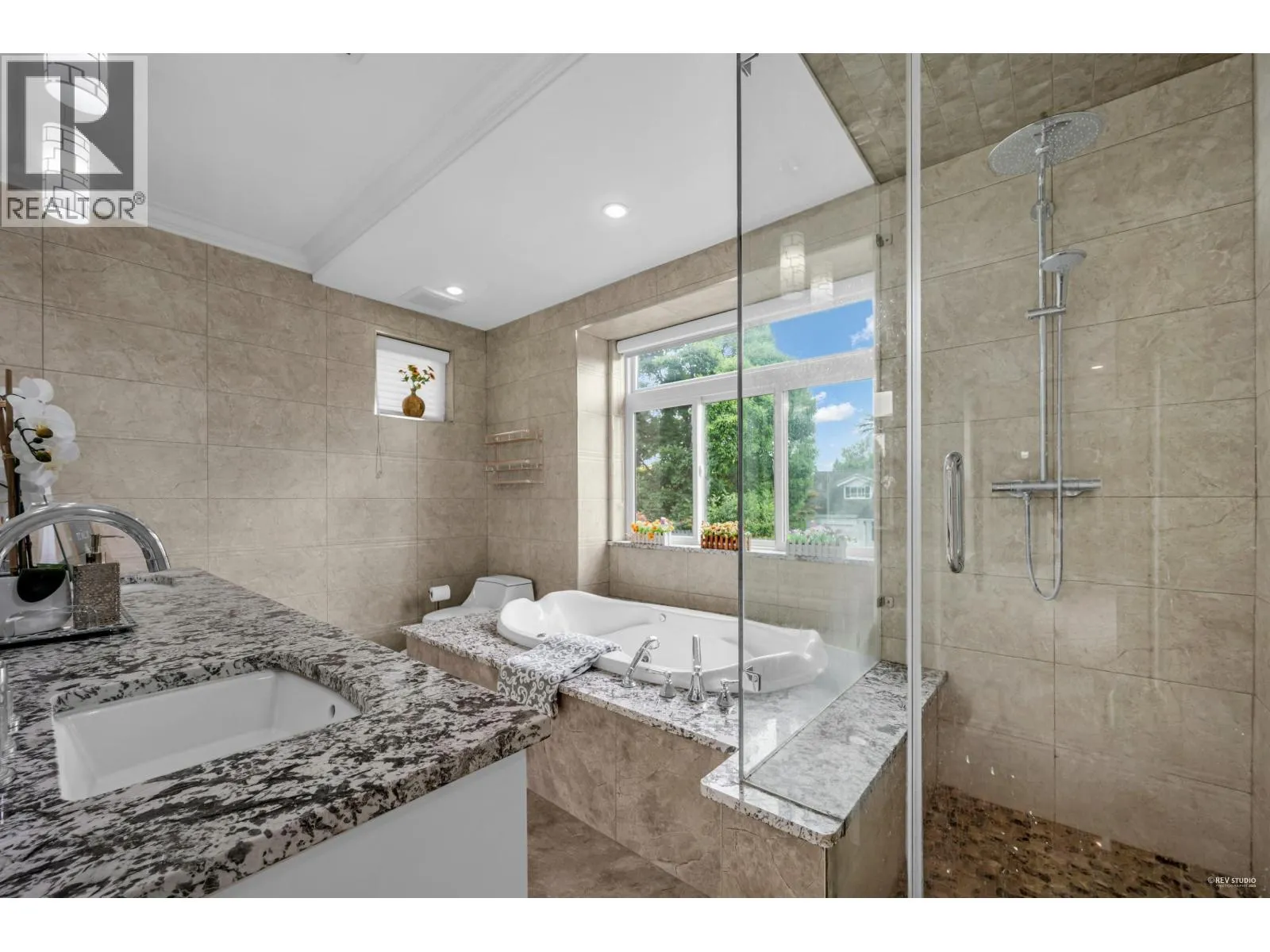 Welcome to this spacious and beautifully designed family home in Burnaby's highly desirable Government Road areal Sitting on a large 8,828 square ft lot, this 5,895 square ft home offers 9 bedrooms and 8 bathrooms-plenty of space for a growing or multi-generational family. Built in 2017, it features a grand 19-foot ceiling in the foyer that makes a stunning first impression, plus an open central deck that brings in natural light and creates a unique indoor-outdoor feel. The layout is both practical and elegant, with generous living spaces, a modern kitchen, and multiple ensuite bedrooms for added comfort. Quiet, private, and just minutes from schools, parks, shopping, and transit-this is a rare find in one of Burnaby's most sought-after neighborhoods. (id:27476)