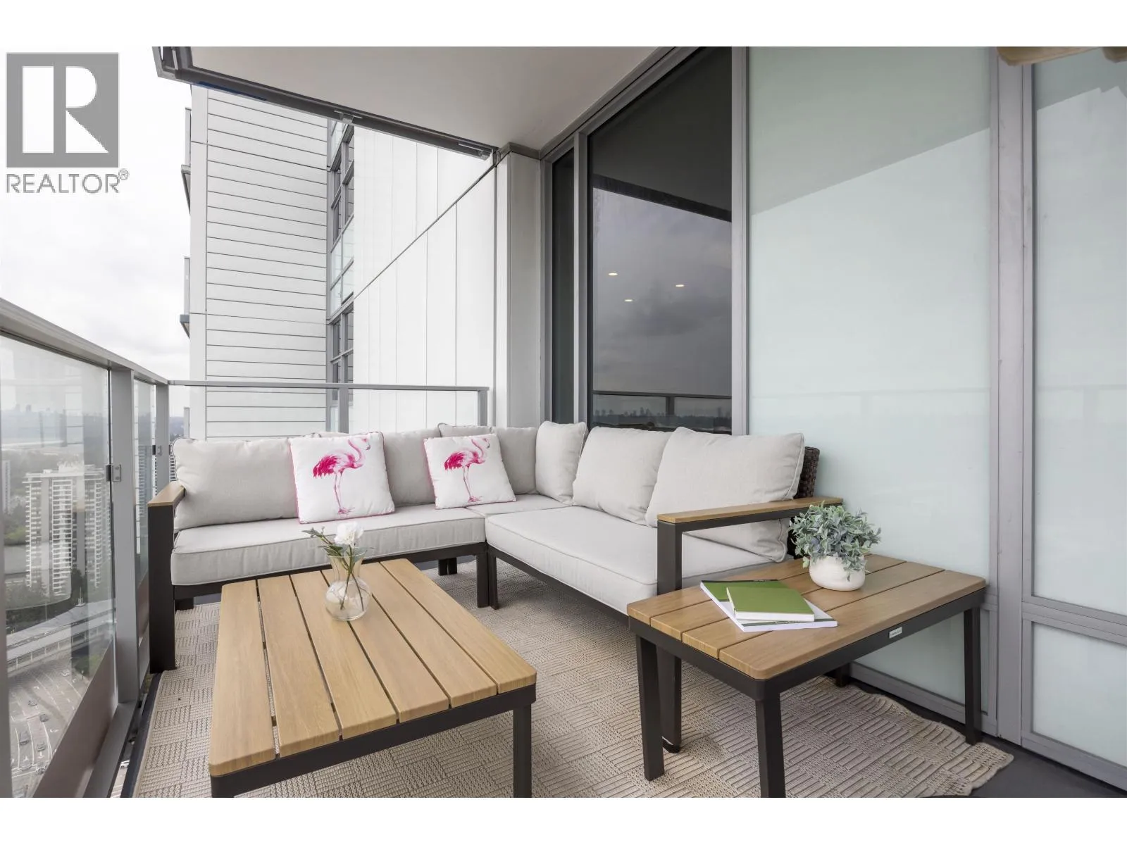 A brand new condition with no GST! Experience elevated living with a stunning river, mountain and city views from the 26th floor! This southeast corner home with 2-bedroom plus den & 2-bath (Jr. 3 Beds) features floor-to-ceiling windows, a spacious layout, and a gourmet kitchen with premium appliances. The versatile den is ideal for a home office or extra bedroom, and the wrap-around balcony provides expansive outdoor space for entertaining, relaxing, and enjoying the scenery. Located in a vibrant community with direct access to Lougheed Town Centre, dining, and SkyTrain, this is a rare opportunity to enjoy modern luxury living with exceptional amenities and unparalleled comfort in a prime location! Call today to book your showing! (id:27476)