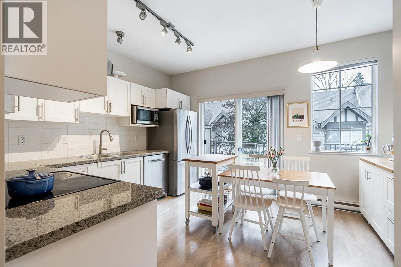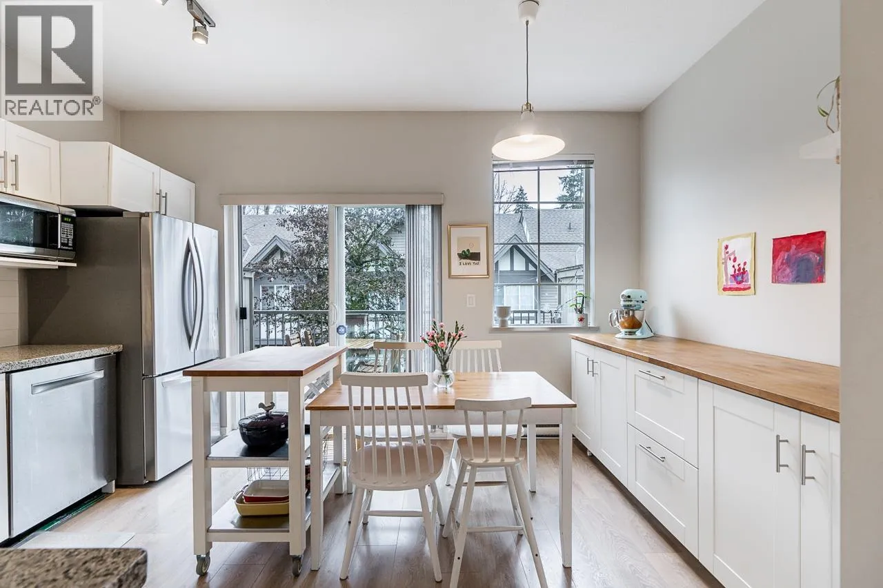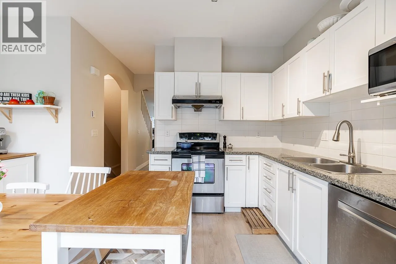 Stunning 3-level townhouse by Ledingham McAllister in desirable Chancery Lane! This 4 bed, 3.5 bath home offers 1,554 square ft of bright, open living with 9' ceilings, granite counters, and s/s appliances. Enjoy a private deck off the kitchen backing onto a peaceful greenbelt-perfect for BBQs and relaxing. Upstairs features 3 spacious bedrooms including a vaulted primary suite with 4-pc ensuite. Lower level has a versatile 4th bedroom. Laminate floors, fenced yard, and garage. Quiet complex near trails, Hwy 1, transit, parks, and top schools. Move-in ready! (id:27476)