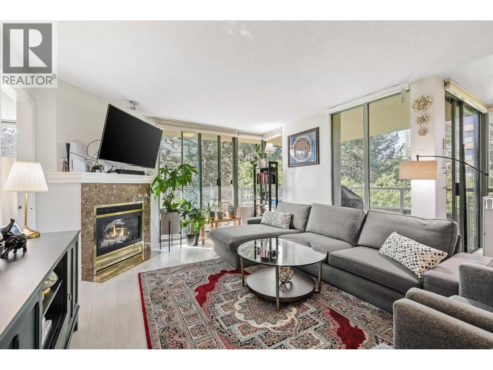 Spacious and practical 2-bedroom, 2-bathroom corner home designed for everyday living. Enjoy a bright open layout with a dedicated dining area, cozy gas fireplace, and a large private balcony. The recently renovated kitchen boasts quartz countertops, stainless steel appliances, and ample cabinet space. Both bedrooms are generously sized, with the primary featuring a private ensuite. Freshly painted and move-in ready, complete with in-suite laundry, 1 parking, and 1 storage locker. In a well-maintained building, just steps to Starbucks, Save-On-Foods, Highgate Village, and minutes to Edmonds SkyTrain and Metrotown. Perfect for first-time buyers or small families! Open house this Sunday - October 26, 2025! (id:27476)