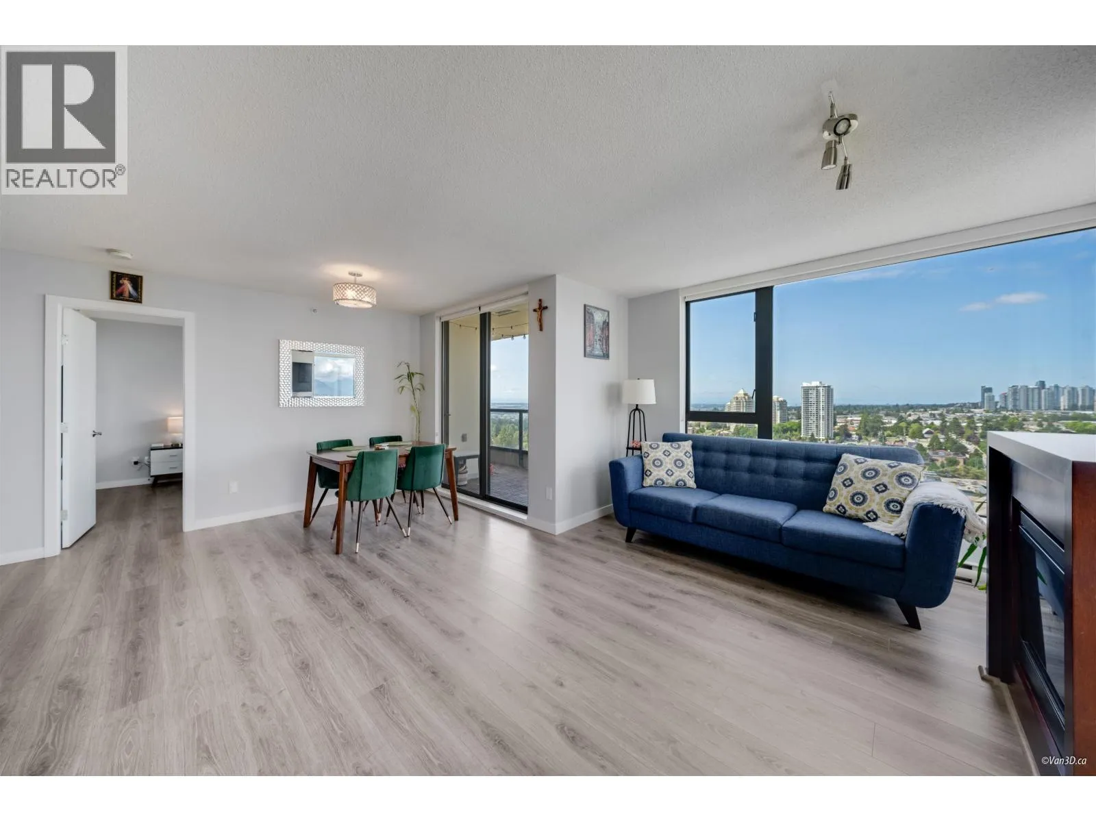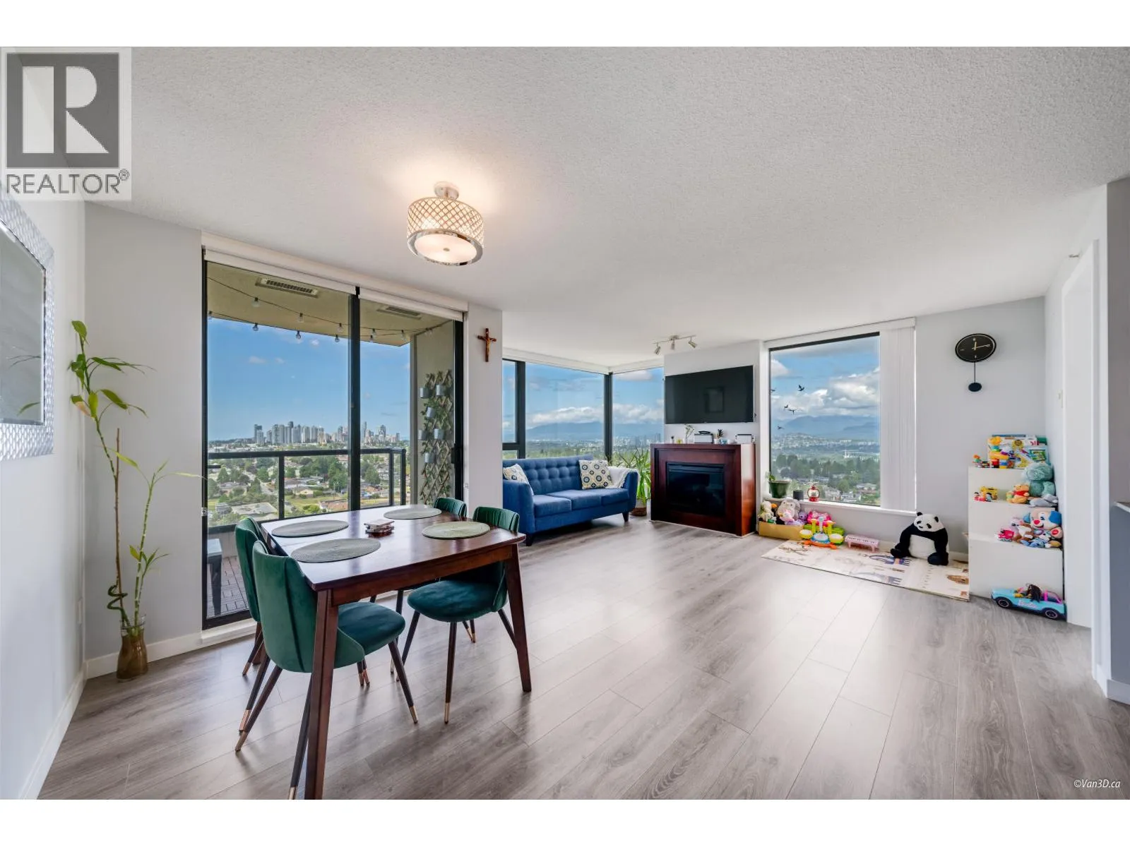 Welcome to this beautiful corner unit facing NW with mountain views, SW river and ocean views. This 23rd floor home at West @ Highgate by BOSA offers natural light, a spacious layout, and a large balcony to enjoy it all. Great floor plan with 2 large bedrooms and a Junior 3rd Bedroom with large window and door. Primary bedroom comes with ensuite and access to balcony too! Updated with new floors, tile, and paint. Cozy fireplace, gas stove, 1 parking & 1 locker included. Just steps to Highgate Village-shops, cafes, transit & more. A calm, connected space in a growing, walkable community. Oct 4th Open House has been cancelled, sorry for the inconvenience. (id:27476)