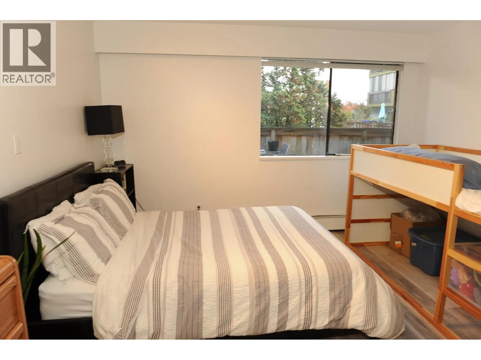 Location, Location. Attention First Time Buyers/Investors. Future development potential for a high rise development. Updated bright & clean one bedroom, one bathroom unit facing the courtyard on the ground floor. Lovely kitchen, dining area & large living room with patio door leading to private fenced backyard with a good size patio. Large bedroom has two closets and cheater door to the bathroom. Walking distance to Metro Town Mall, SkyTrain, Central Park. Unit comes with one parking stall and a locker. Maintenance fees are low and include hot water & heat. (id:27476)