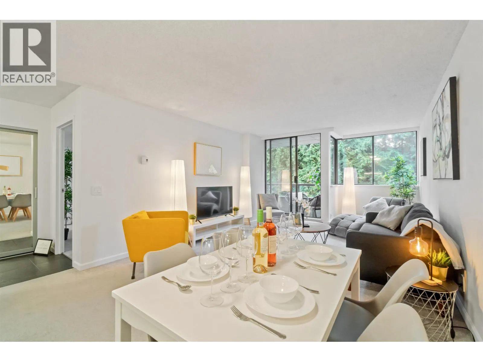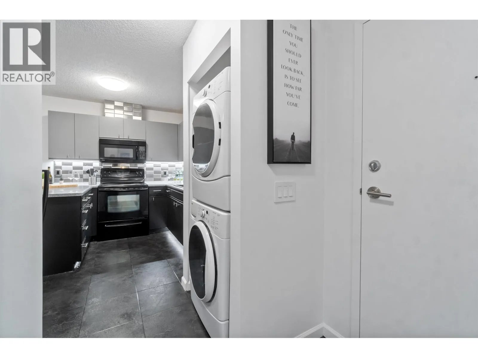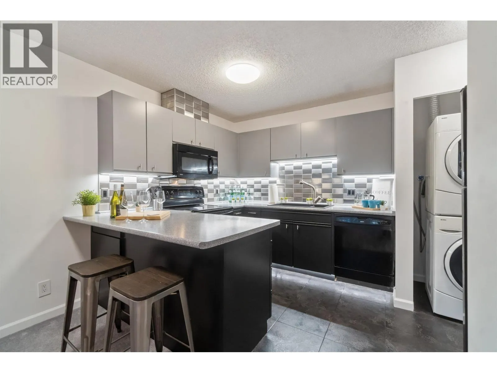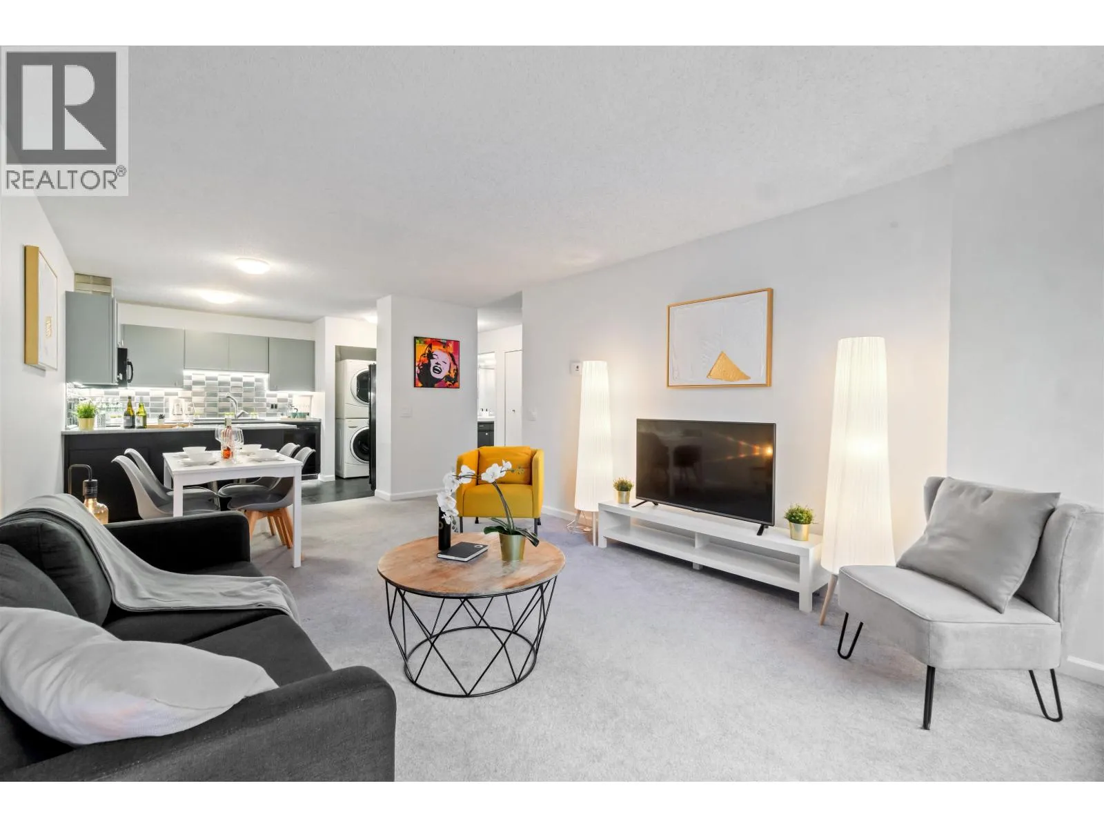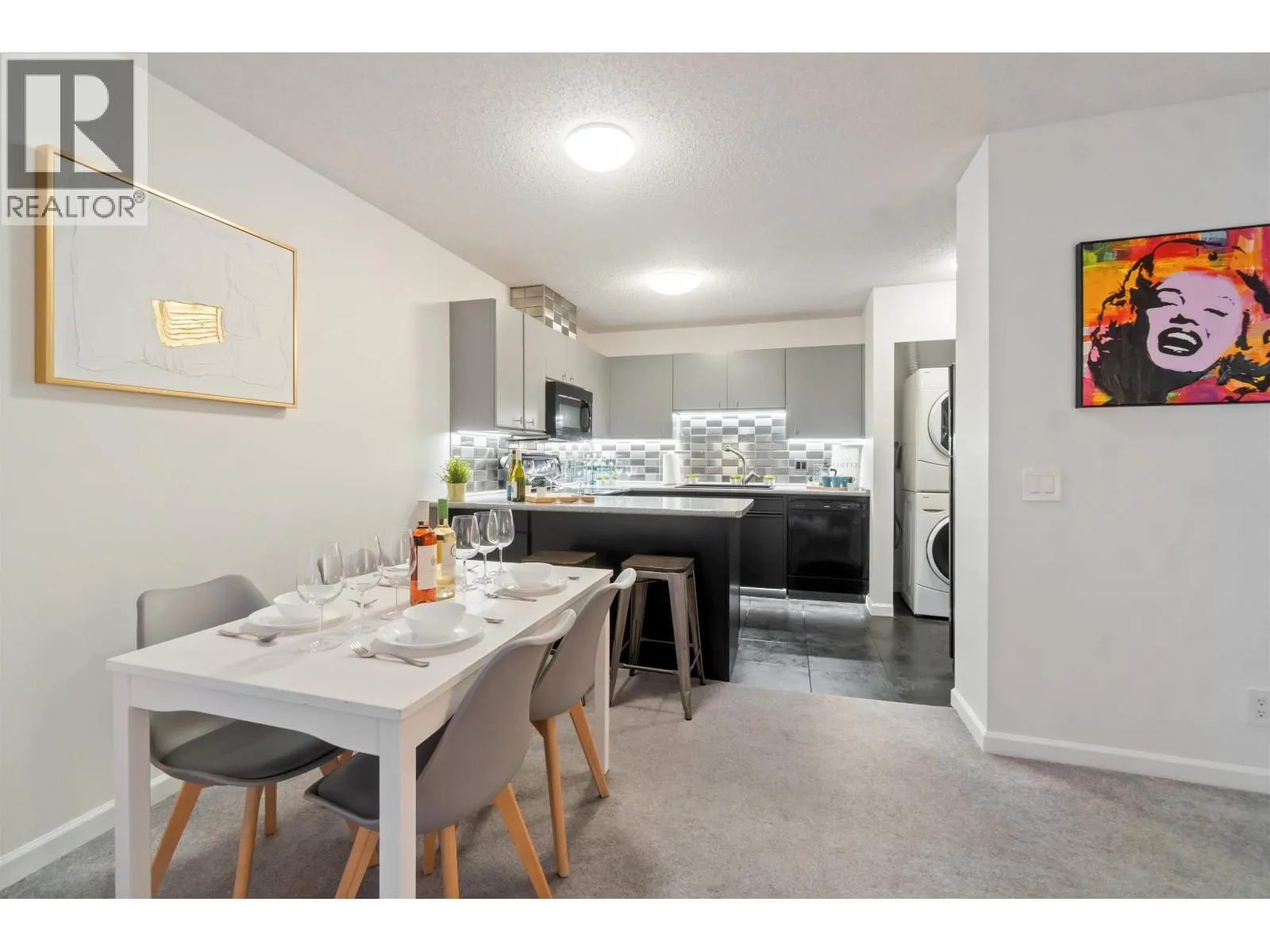 Welcome home to 3970 Carrigan Court - Discovery Place II. This spacious 1-bedroom home offers nearly 800 sqft of bright living space. Enjoy an oversized bedroom with walk-in closet and nook, open dining and living areas, plus in-suite laundry. Recent updates include fresh paint, new washer and dryer, stylish backsplash tiles, upgraded kitchen and bathroom lighting, new sinks in both kitchen and bathroom, new carpet, baseboard heaters, and updated light switches and outlets. Completely turn-key - nothing to fix, just move in and enjoy. The location is unbeatable - just steps to Lougheed Mall, SkyTrain, and bus loop for quick access across Metro Vancouver. Surrounded by shopping, dining, and cafés, this home blends comfort and convenience. Perfect home for starters, downsizers and investors. (id:27476)