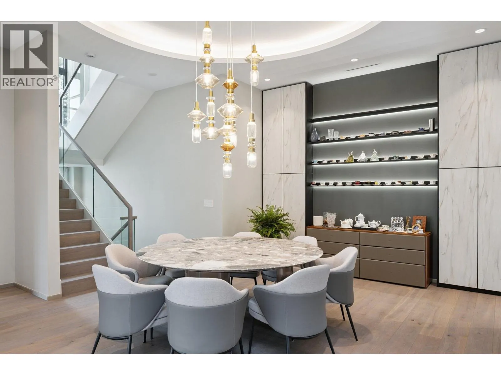 Spectacular one of a kind custom designed home nestled in the heart of Burnaby´s prestigious Buckingham Heights. Spacious living space with 12' ceiling on main and wrapped around by floor to ceiling windows to bring in an abundant of natural light and to connect outdoor with indoor living. Open gourmet kitchen features high end appliances and an enormous kitchen island. Three large ensuites on second floor with two multi-purpose room that can be used as a second family, kids play area or a large den. Basement includes amenities such as laundry room, Spa room, media room, pool table and bar with island. Two car garage and beautiful landscaping surrounding the home to enhance private enjoyment. (id:27476)