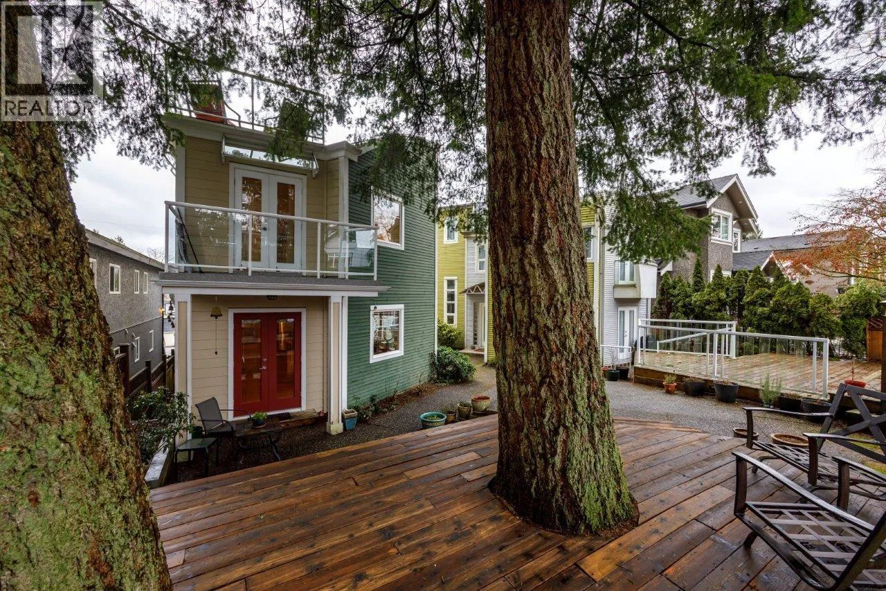 Beautiful detached home in quiet CAPITAL HILL area with panoramic VIEWS of Burrard Inlet and Burnaby Mountain from a large 300 sf ROOF TOP. This West Coast Contemporary three story designed home has FOUR BEDROOMS and FOUR BATHROOMS, including a one bedroom walk out SUITE. Great indoor/outdoor living with multiple decks and balconies on all floors. Other features include a large kitchen with an island and separate eating area, high vaulted ceilings, in-floor radiant heat, GAS FIREPLACE to cozy up to in the living room, French doors in the dining room, and wood floors. Lane access to a one car GARAGE AND CARPORT. Updates include windows, deck surfaces, painting and exterior siding. Central location close to amenities, recreation, walking trail, and great schools. Easy to show. Great value! (id:27476)
