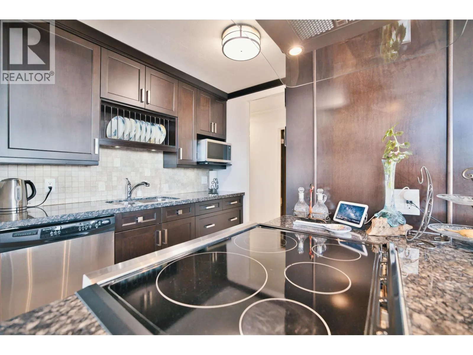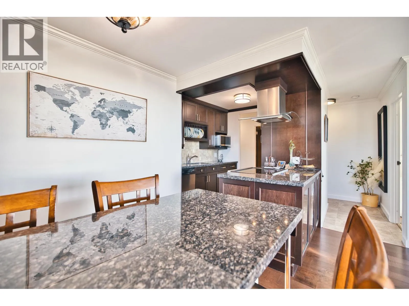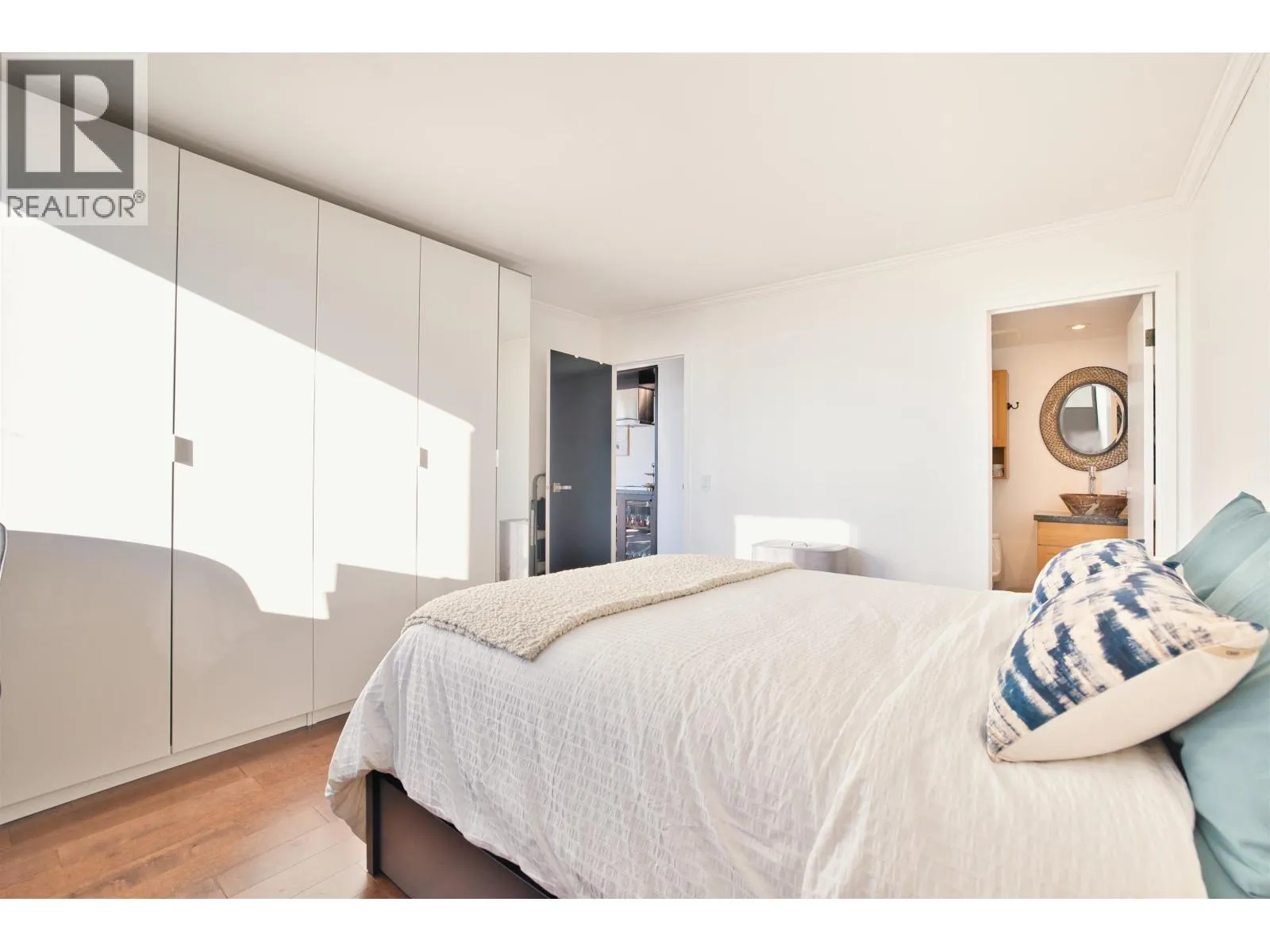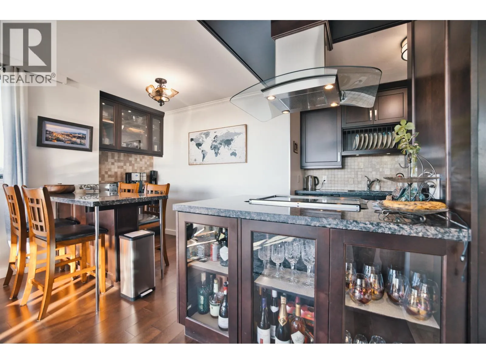 FULLY RENOVATED! Immaculate 2 Bed 1.5 Bath 22nd level corner unit in desirable Discovery Place by BOSA. Split bedroom floorplan w/spacious open concept living area. Sliding doors lead to private balcony w/unobstructed 180 degree City, Lake, Mountain Panoramic views. Kitchen w/extended island & built in cabinetry. Hardwood flooring throughout, stone countertops, luxury fixtures and finishings, crown moldings, mirror closet doors. Building like new w/upgrades to lobby, 3 elevators, plumbing, new windows, roof, building envelope plus. Enjoy amenities including indoor pool, hot tub, sauna, gym, squash & racket courts, table tennis, pool table & new party room. Central location, steps to shopping, dining, recreation. Easy access to transit and Hwy. 1 Parking & 1 Locker. Ready for move in! (id:27476)