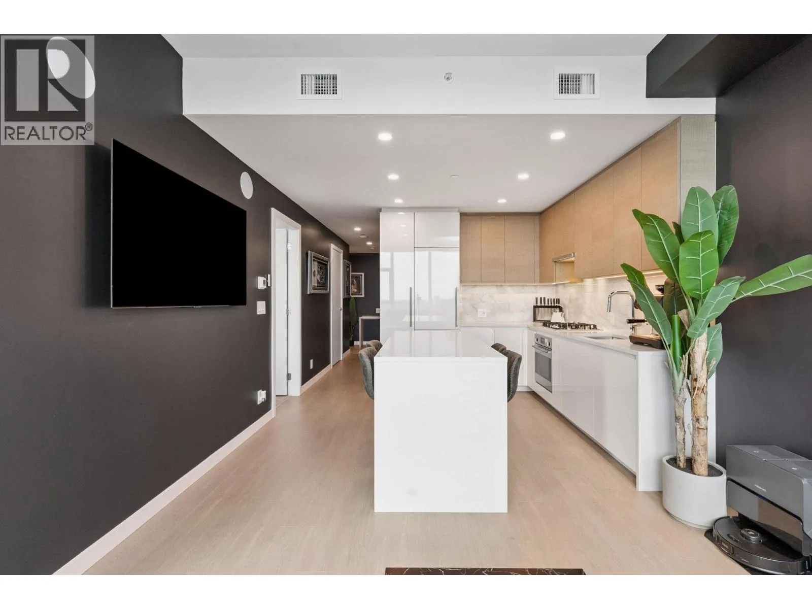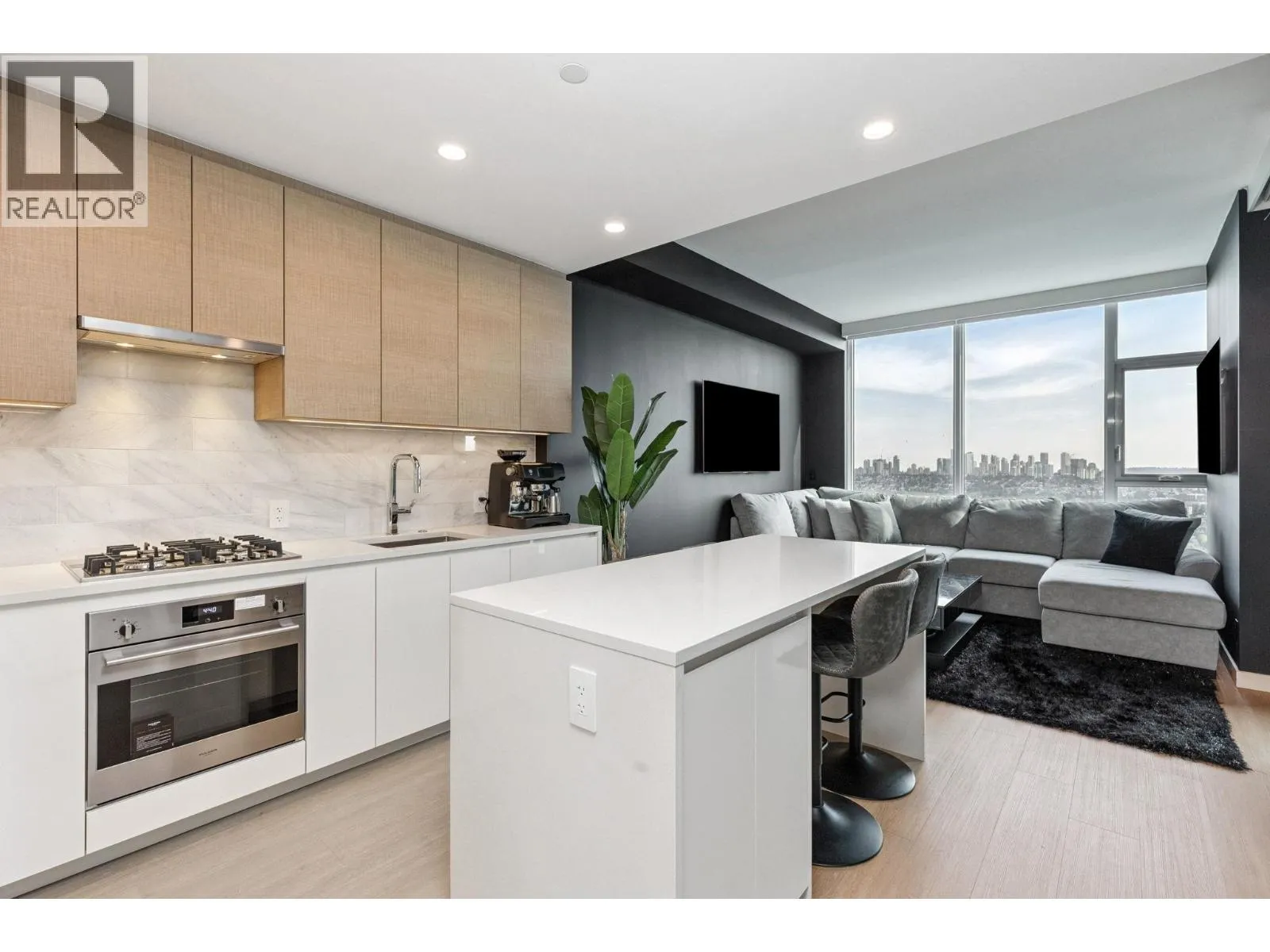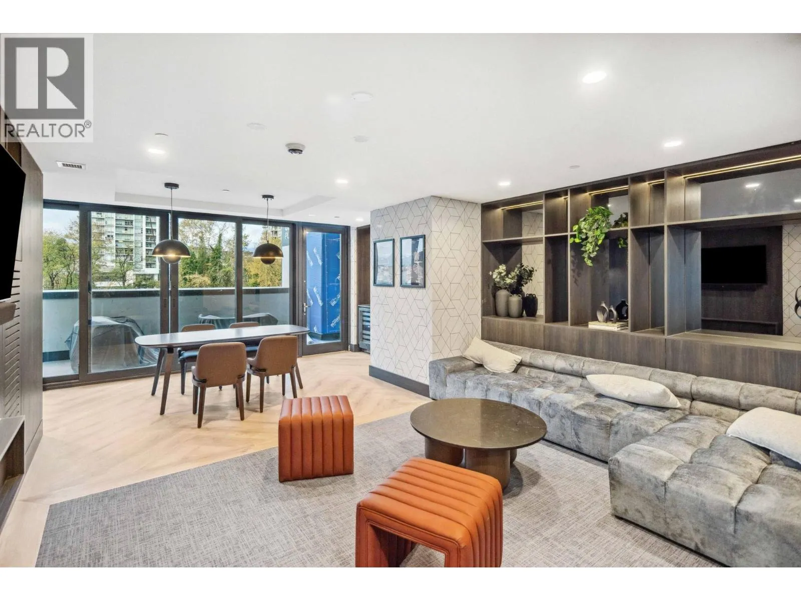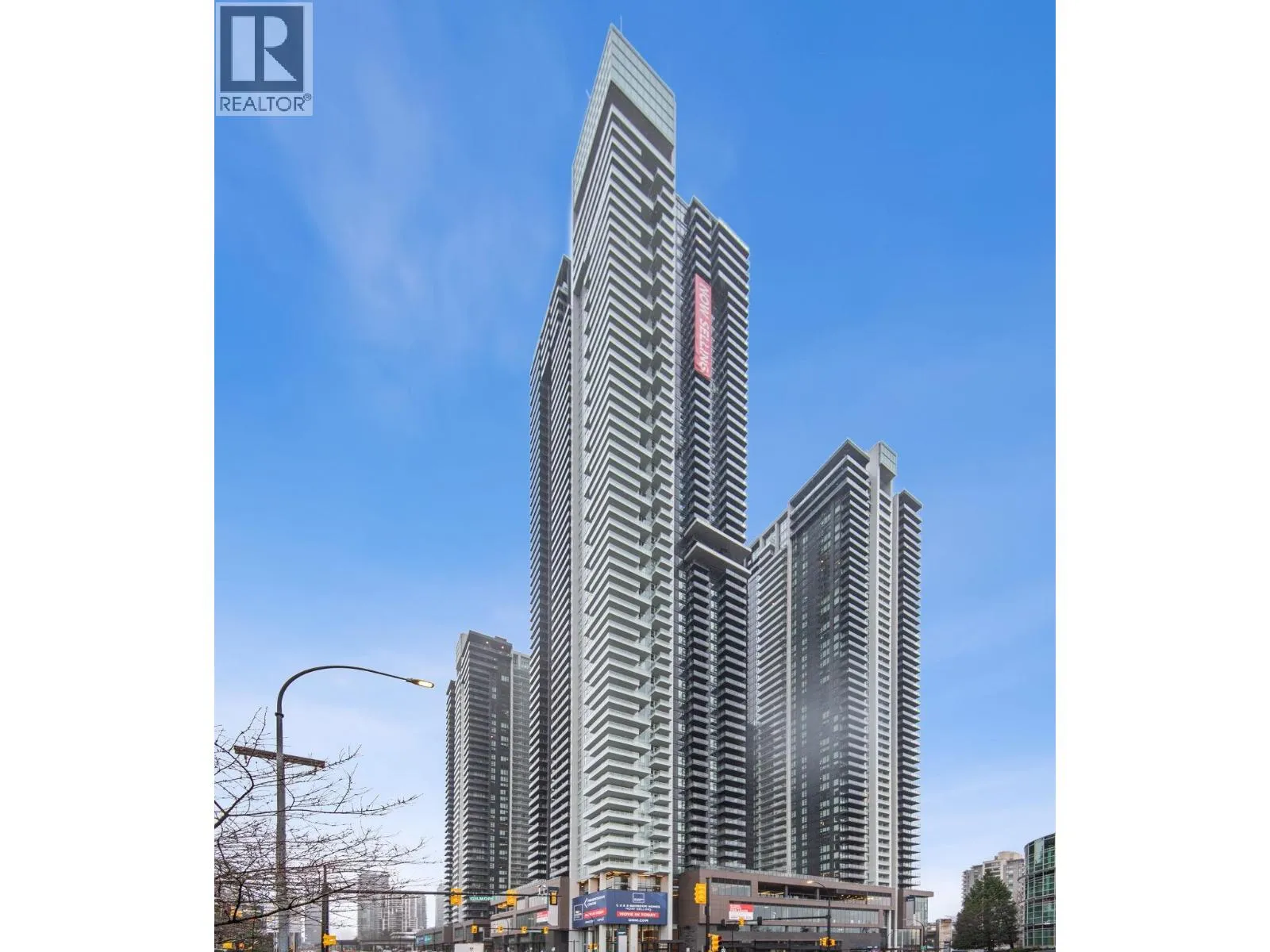 Welcome to Gilmore Place - where modern elegance meets resort style living. This junior 2-bed, 1-bath features soaring 9.5' ceilings, electric blinds, and a South facing open layout. The Italian gourmet kitchen with waterfall stone island perfect for entertaining, complemented by a premium appliance package, gas cooktop, A/C, upgraded flooring, and built-in speakers with integrated Sonos system. Your private balcony offers a peaceful retreat amid the city´s vibrance. Enjoy 75,000+ SF of world-class amenities - 24-hr concierge, fitness center, pools, golf simulator, bowling alley, karaoke lounge, steam & sauna rooms and more. Steps to Gilmore SkyTrain, Amazing Brentwood & T&T Supermarket. 1 EV parking + 1 storage included. (id:27476)