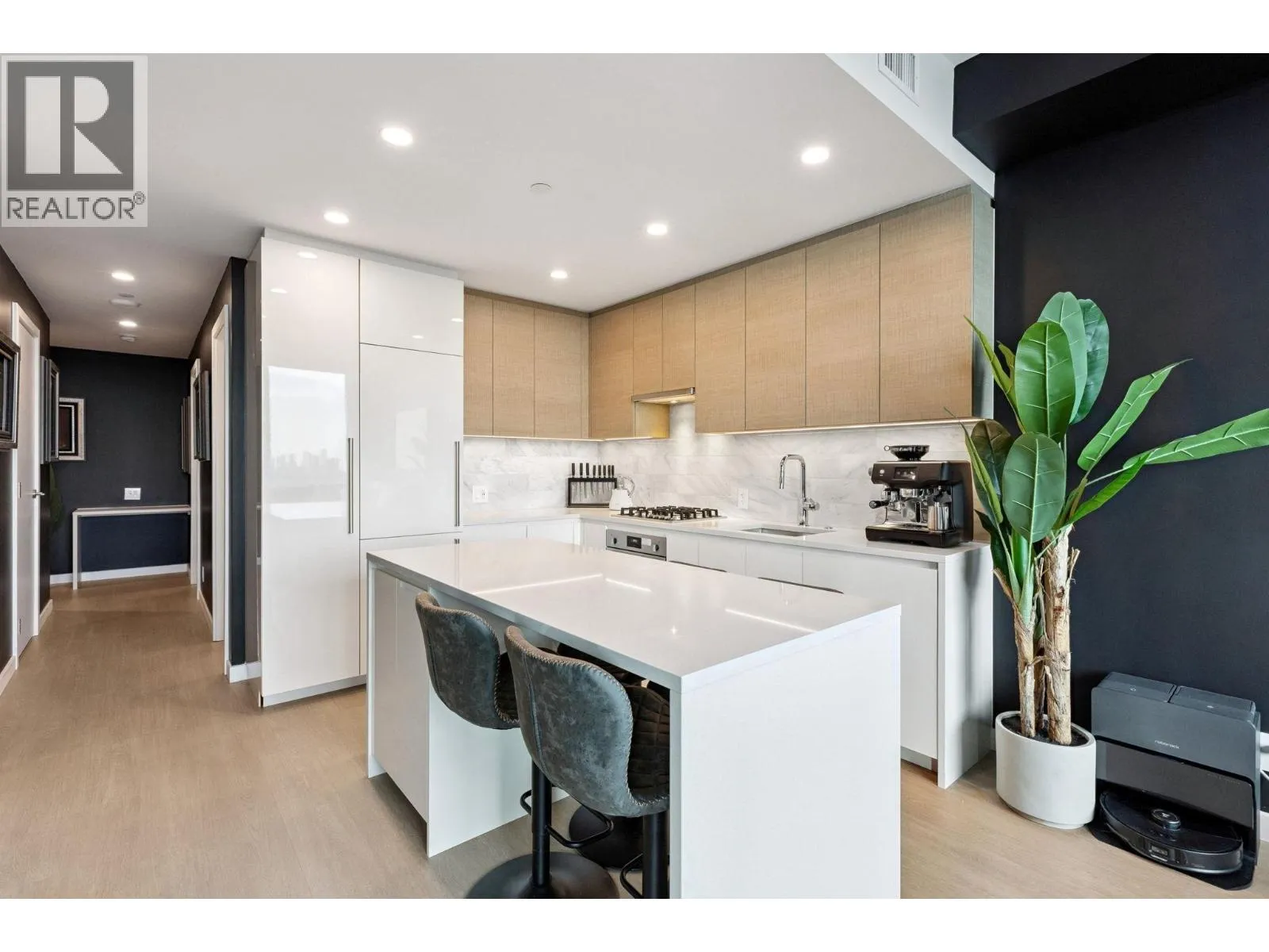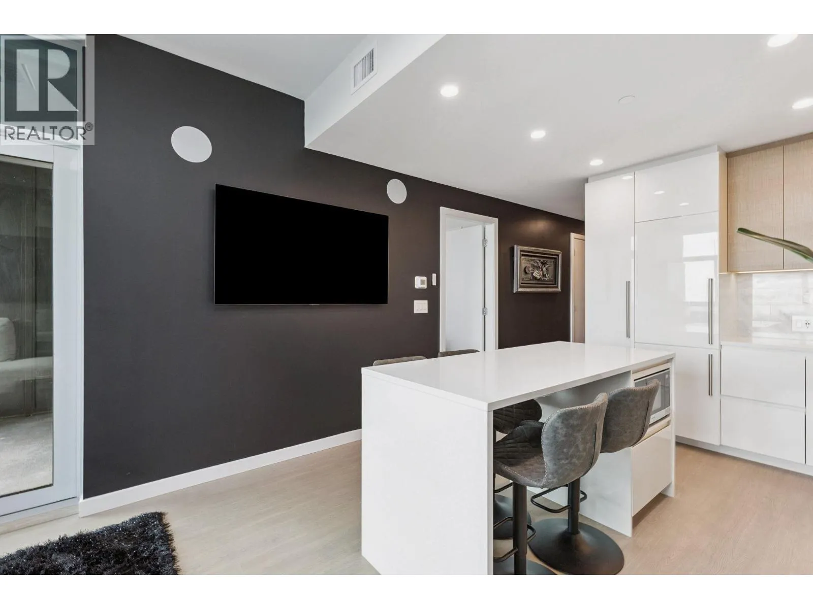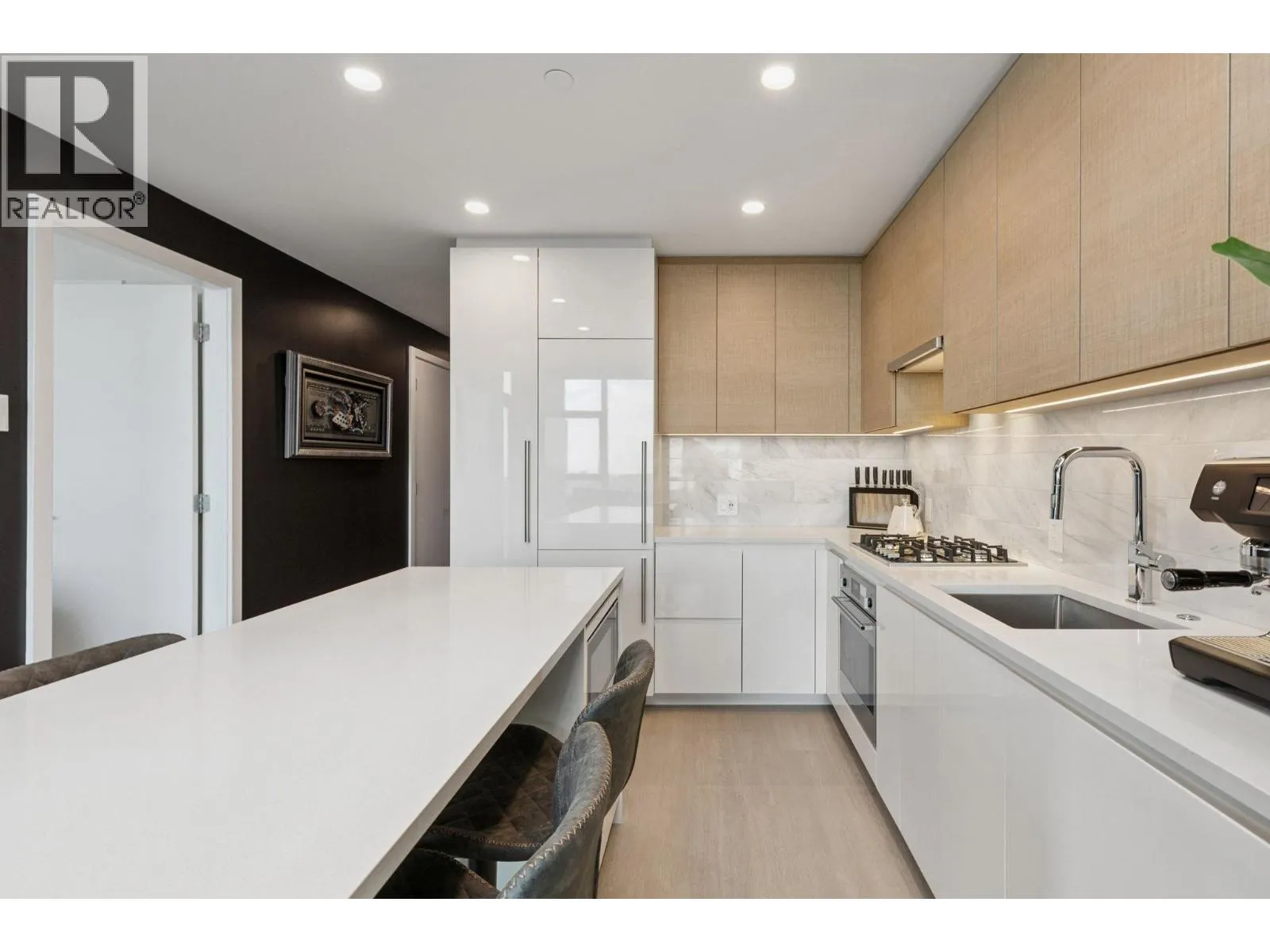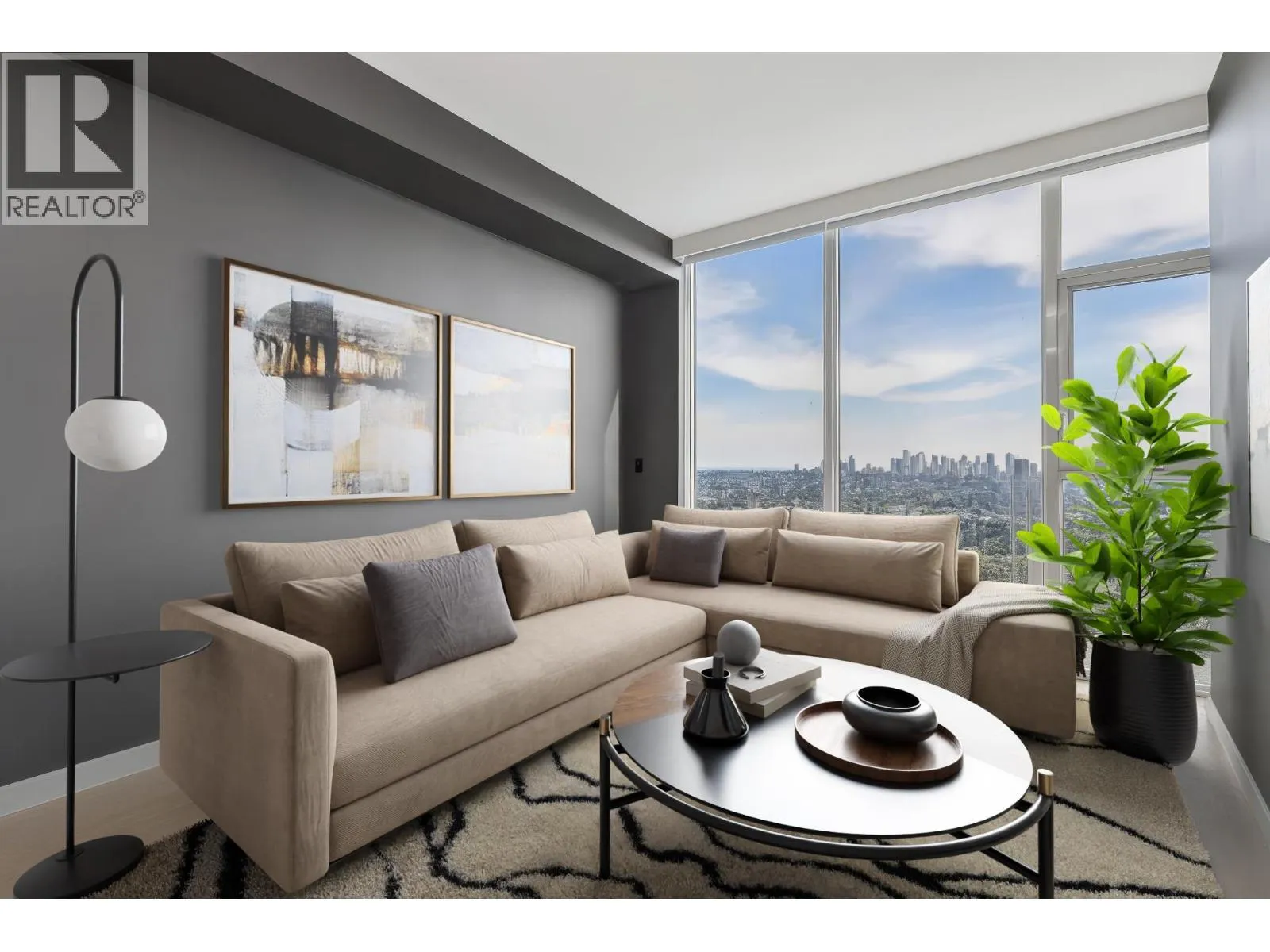 Welcome to Gilmore Place - where modern elegance meets resort style living. This junior 2-bed, 1-bath features soaring 9.5' ceilings, electric blinds, and a South facing open layout. The Italian gourmet kitchen with waterfall stone island perfect for entertaining, complemented by a premium appliance package, gas cooktop, A/C, upgraded flooring, and built-in speakers with integrated Sonos system. Your private balcony offers a peaceful retreat amid the city´s vibrance. Enjoy 75,000+ SF of world-class amenities - 24-hr concierge, fitness center, pools, golf simulator, bowling alley, karaoke lounge, steam & sauna rooms and more. Steps to Gilmore SkyTrain, Amazing Brentwood & T&T Supermarket. 1 EV parking + 1 storage included. (id:27476)
