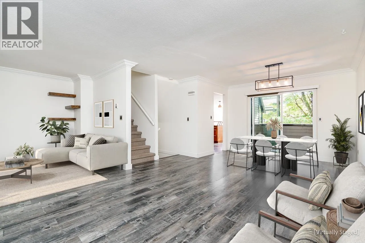Forest Grove Family Retreat - Spacious, Serene & Stylishly Renovated! Nestled into the quiet nature setting of Forest Grove, this turnkey townhome blends modern style w timeless comfort. Inside you´ll find sleek laminate flooring, elegant fixtures, fresh paint, pot lights, crown moulding, & a gorgeous kitchen complete w skylights & bright eating area. Versatile rec room downstairs, cozy living room on main w wood-burning fireplace, full dining area, & massive patio backing to lush green space. Upstairs, spacious bedrooms provide comfort for the whole family, including a lavish primary ensuite. Enjoy complex amenities: squash court, sauna & pool! Prime location across from Forest Grove Elementary & nearby SFU, Skytrain, Parks, Lougheed Mall + HWY #1! (id:27476)