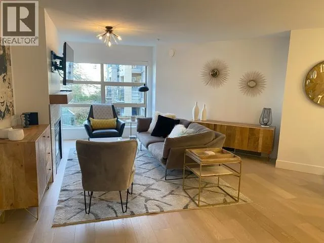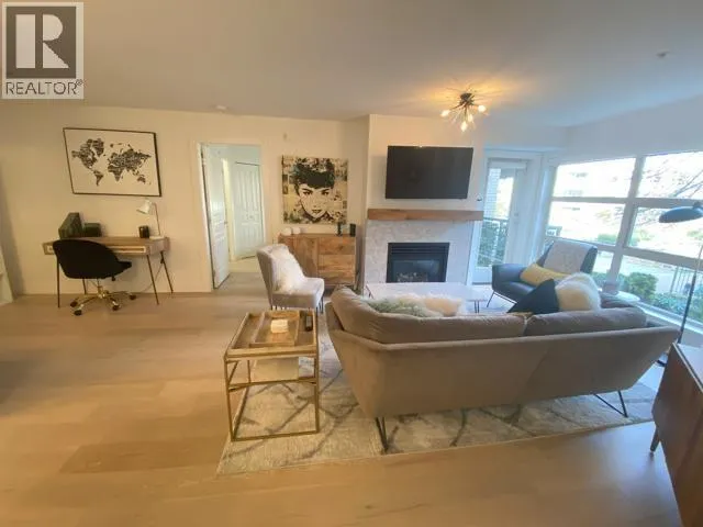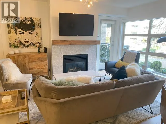 Welcome to HARMONY by Polygon! This Beautifully updated 705 sqft residence offers the perfect blend of style, comfort, and convenience. Features: Open Concept Layout, 1 Large Bedroom with Walk-In Closet & 4 pc Ensuite + Den. Updates include: Elegant Hardwood Flooring, Refreshed Kitchen w Quartz Counter Tops (Kitchen/Bathroom), Stylish Tiled Backsplash, White Cabinetry, Fresh Paint. Fireplace with Designer Tile & Custom Wood Mantel. New Blinds (Living Room & Bedroom) + New Washer/Dryer. Prime Location just Steps to Shops, Restaurants, Parks, Walking/Hiking/Bike Trails and the vibrant #1 Canadian Comprehensive University* SFU. Quick 11 min drive to Lougheed Shopping Centre or Burnaby Mountain Golf Course. Amenities include a well equipped gym, meeting room, bike storage & guest parking. (id:27476)