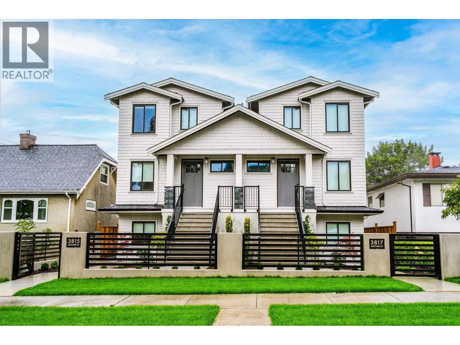 Welcome to this beautifully-designed & quality-built 3-level executive 1/2 duplex on a very nice flat lot of exquisite Oxford St in Vancouver Heights area of Burnaby! Amazing timeless color scheme throughout with the exhilarating promises of unparalleled craftsmanship, detailed design & luxe finishes! From big family room, stunning kitchen featuring open concept layouts w/ample counter space, Fisher & Paykel appliances, to gorgeous full bath on main, from elegant lightings to bathroom chrome fixtures, from great size 3 bedrooms upstairs, to A two-bdrm legal suite w/walk-out entrance below! Great Northshore Mountains & City views! Excellent location, close to shopping, schools, highway, transit & downtown Vancouver! Modern meets timeless, Space meets function!Open Sun Nov 8th from 2-4pm. (id:27476)