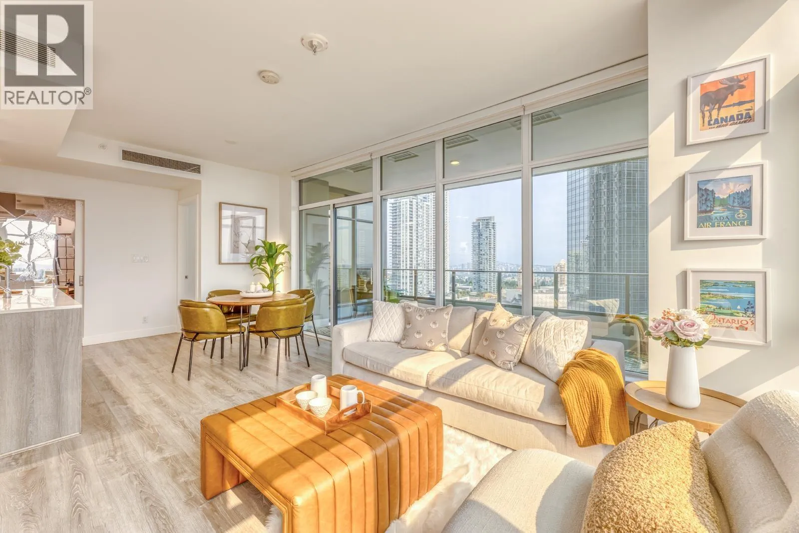 Welcome to Highline Sky Estates - Elevated Living in Metrotown. This 849SSQFT Jr. 3-Bed, 2-Bath, NE facing residence combines modern design with luxury finishes and breathtaking views across the Lower Mainland. Featuring Inform Italian cabinetry, Miele appliances, 9´ ceilings, motorized blinds, and a spa-inspired primary ensuite clad in marble, every detail has been crafted for refined living. Residents enjoy exclusive amenities, including a fully equipped gym, sauna, steam room, lounge, and two guest suites, plus the convenience of 24-hour concierge service. Located directly across from Metropolis at Metrotown and the SkyTrain station, offers unmatched urban connectivity, placing shopping, dining, and entertainment right at your doorstep (id:27476)