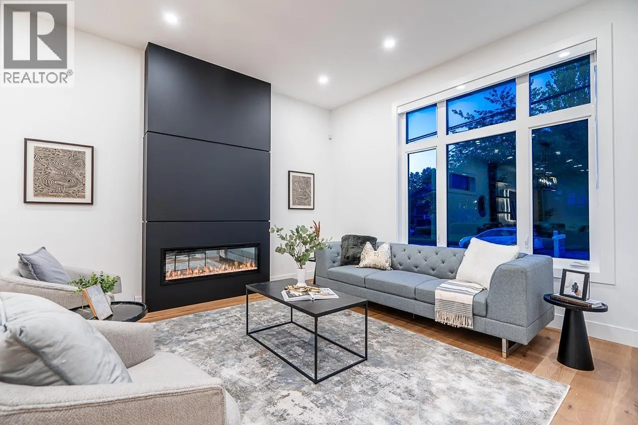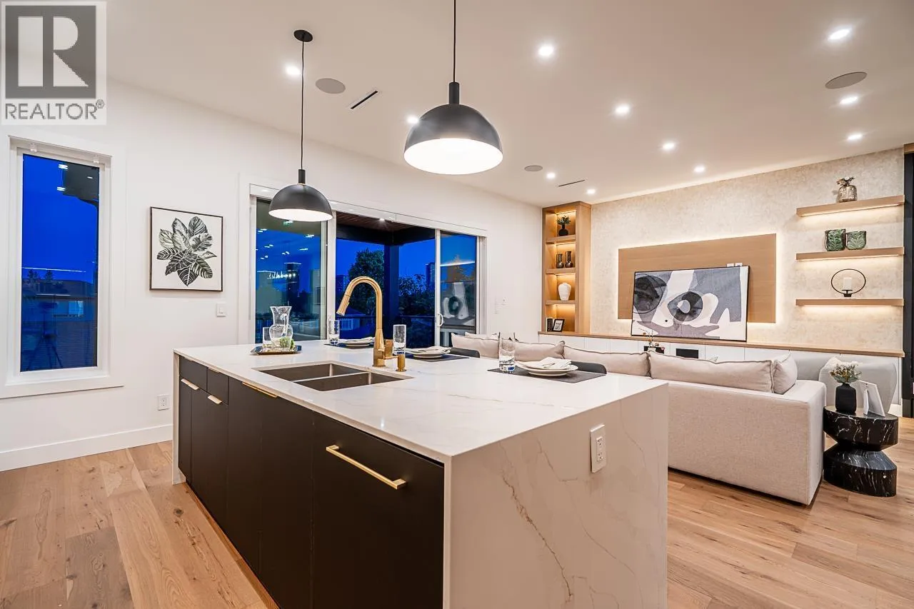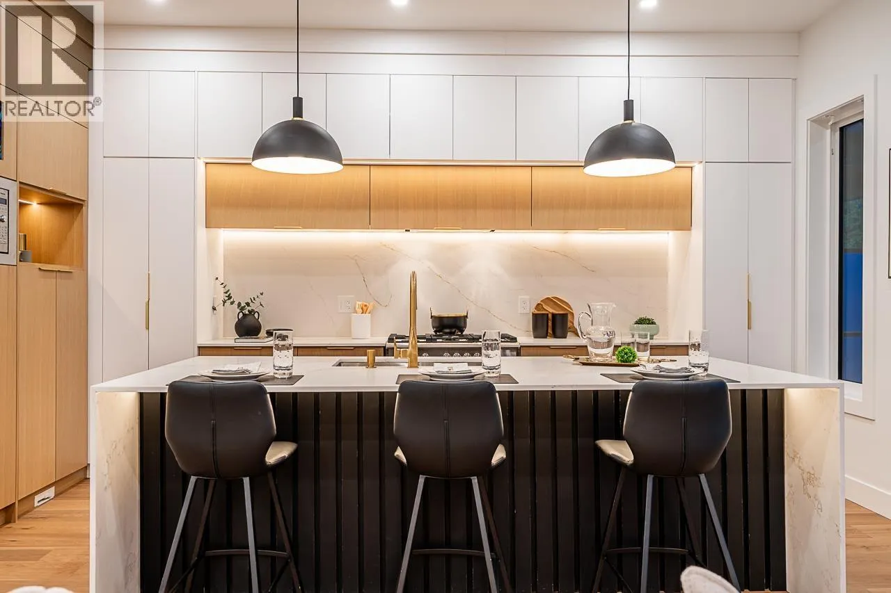 Welcome to Venables Residences! Architecturally designed farm house style duplexes! Over 3200 sqft of living space. TOTAL 6 BDRMS, 6 BATHS & 2 kitchens. TOP floor has 3 BDRMS all with separate BATHS. Enjoy the vaulted ceilings in the master rm & must see luxury bath. Laundry is conveniently located on top floor. Main floor has 10 ft ceilings, open concept floor plan with spacious living rm leading into the dining rm. Enjoy watching your favorite TV shows from your beautiful kitchen. Kitchen finished with Fisher & Paykel appliance package. Integrated fridge & dishwasher. Grand Island with seating. Covered deck off family rm for summer barbecues. 2 BDRM legal suite plus media rm with full BDRM & BATH. Huge back yard for kids to enjoy. 2 car garage plus open parking. A/C, radiant heat, CCTV.. (id:27476)