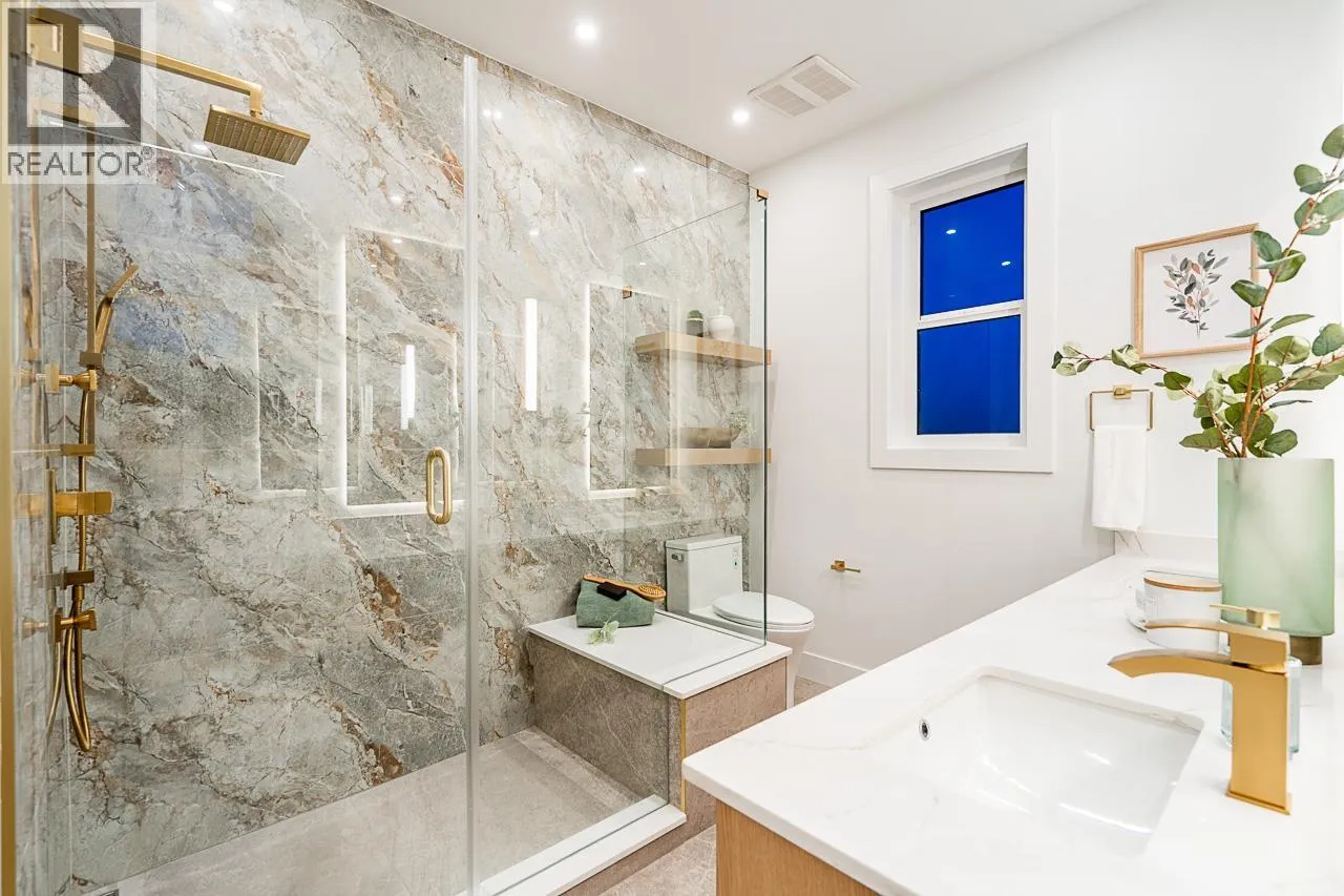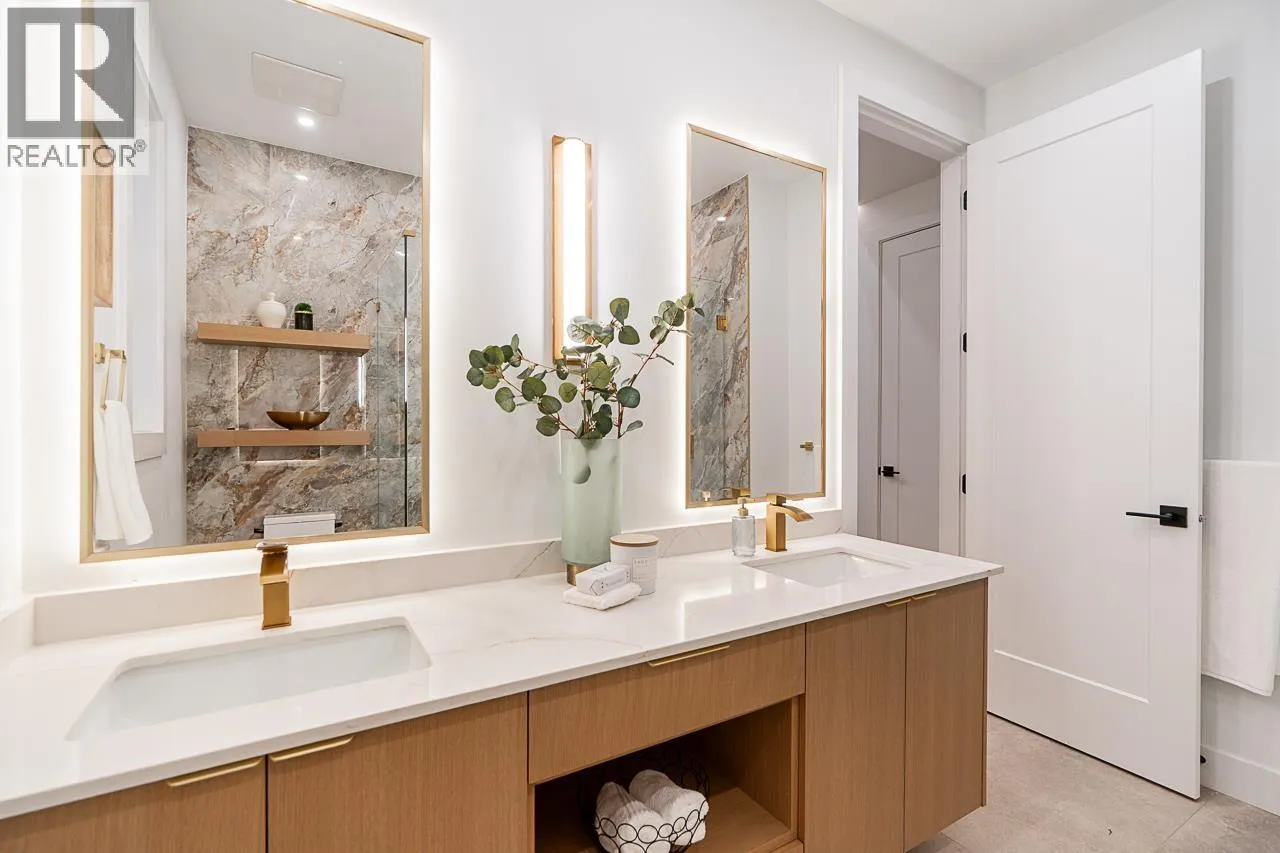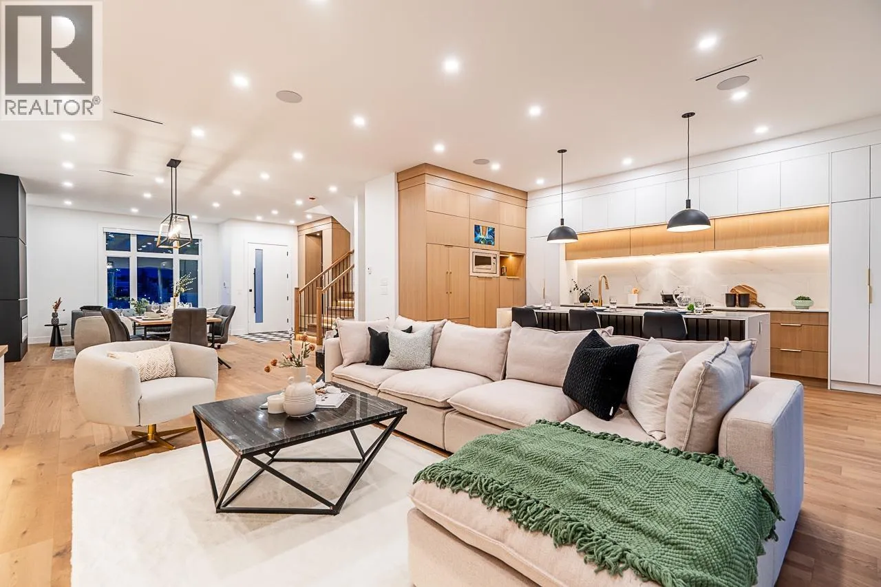 Welcome to Venables Residences! Architecturally designed farm house style duplexes! Over 3200 sqft of living space. TOTAL 6 BDRMS, 6 BATHS & 2 kitchens. TOP floor has 3 BDRMS all with separate BATHS. Enjoy the vaulted ceilings in the master rm & must see luxury bath. Laundry is conveniently located on top floor. Main floor has 10 ft ceilings, open concept floor plan with spacious living rm leading into the dining rm. Enjoy watching your favorite TV shows from your beautiful kitchen. Kitchen finished with Fisher & Paykel appliance package. Integrated fridge & dishwasher. Grand Island with seating. Covered deck off family rm for summer barbecues. 2 BDRM legal suite plus media rm with full BDRM & BATH. Huge back yard for kids to enjoy. 2 car garage plus open parking. A/C, radiant heat, CCTV.. (id:27476)