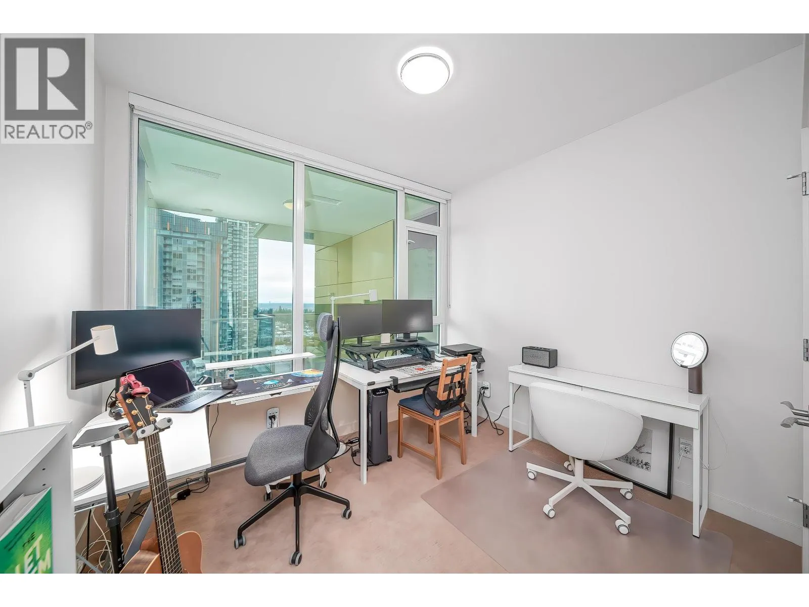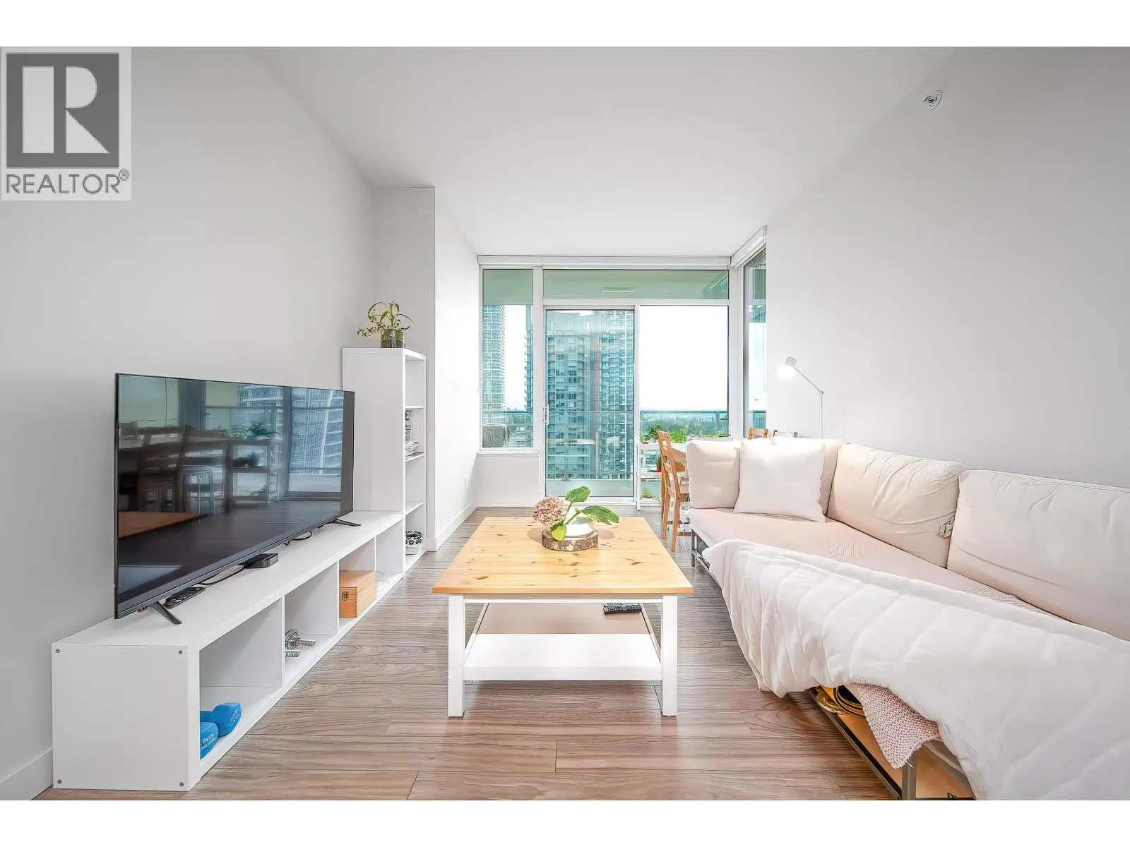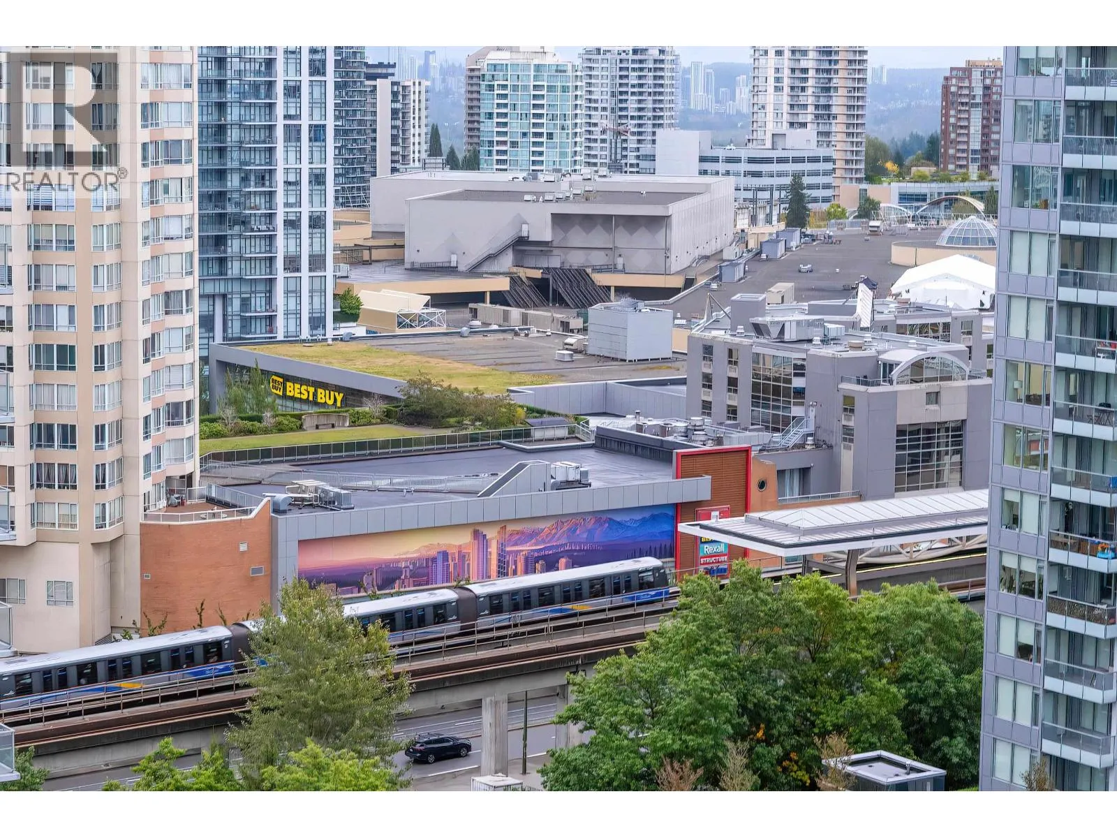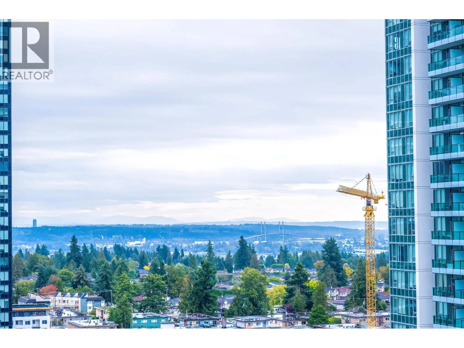 Welcome to Gold House South Tower in the heart of Metrotown! This spacious 2-bedroom, 2-bathroom unit showcases unobstructed panoramic city views and a smart layout with no wasted space. The two bedrooms are separated for maximum privacy, each with its own 3-piece bathroom. The modern open-concept kitchen is equipped with Bosch appliances, quartz countertops, and ample cabinetry. Step onto the generous balcony and take in the breathtaking skyline. Steps away from Metrotown Mall, Crystal Mall, SkyTrain, restaurants, and parks, this residence offers unmatched urban convenience while maintaining quiet and comfortable living. Building amenities include a 24-hour concierge, fitness centre, social lounge, and outdoor garden. A rare opportunity to enjoy sophisticated urban living at its finest! (id:27476)