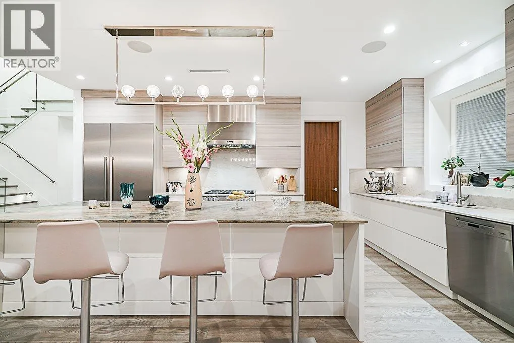 Step into the lifestyle you´ve always dreamed of. This stunning modern masterpiece offers over 4,500 sq. ft. of refined living on a generous 10,400 sq. ft. lot, minutes from Vancouver´s best schools, dining, parks, and shopping. From the moment you enter, you´re surrounded by curated luxury, a show-stopping BOCCI chandelier, RH Boule de Cristal lighting, and a rare cast-bronze Kohler sink set the tone. The chef´s kitchen is a work of art, fully equipped with Gaggenau and Miele appliances, dual-zone wine fridges, and elegant cast-iron sinks. Escape to your serene primary suite with a spa-inspired en-suite and smart shower system. Upstairs, three spacious bedrooms offer en-suites for complete comfort. Outside is where magic happens, host unforgettable gatherings with a heated pool, hot tub, and fully-equipped outdoor kitchen. This home isn´t just where you live, it´s where you thrive. (id:27476)