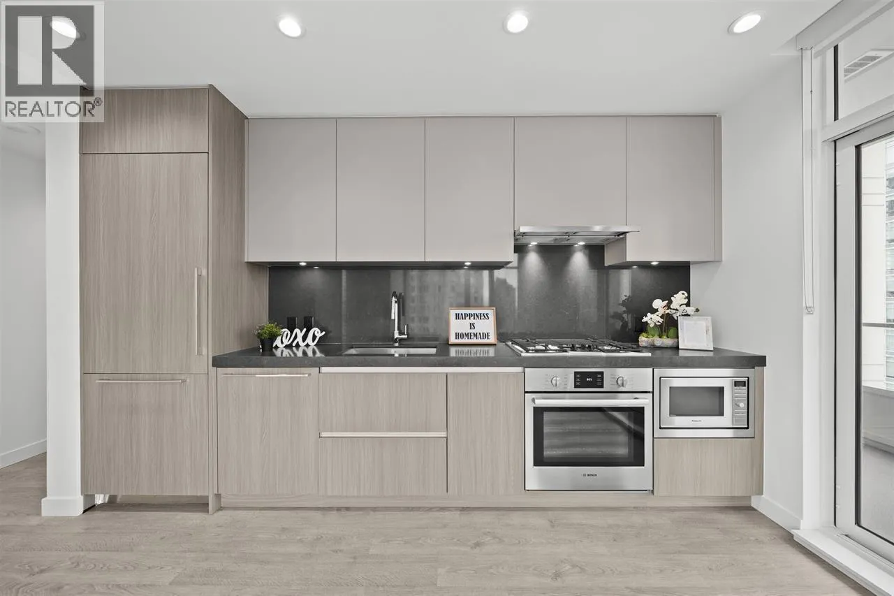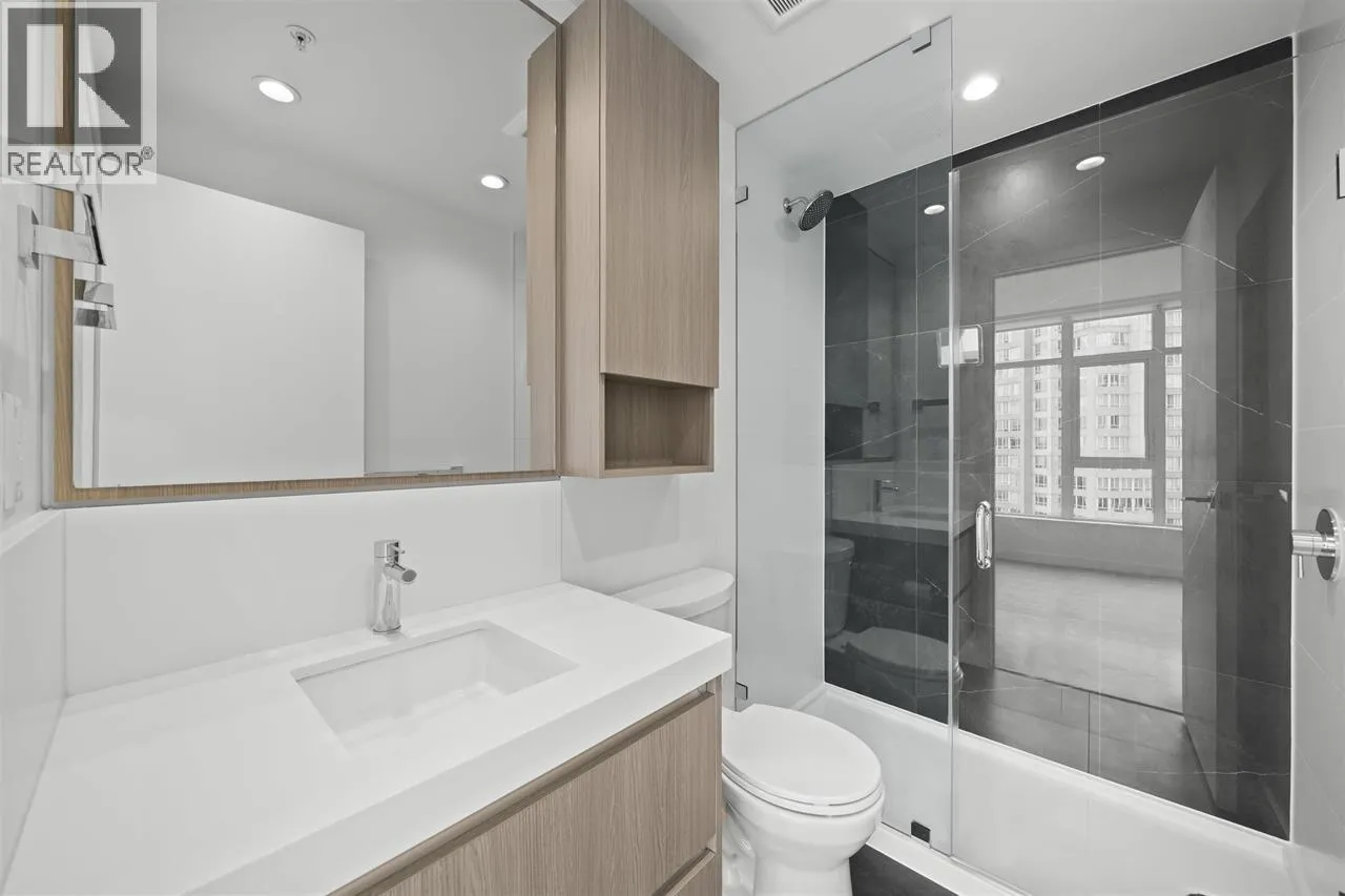 Welcome to Station Square by Anthem! This stylish, well-maintained home is just 4 years old and priced nearly $100,000 below BC Assessment-a rare find and one of the best values in Metrotown. Featuring a smart split-bedroom layout for added privacy, the suite is surrounded by floor-to-ceiling windows that flood the space with natural light. The kitchen is equipped with premium Bosch appliances, a gas cooktop, and stone countertops. Enjoy laminate flooring throughout and an oversized patio, perfect for morning coffee or evening relaxation. Comes with one parking space and a storage locker. Residents have access to luxury amenities including a concierge, fitness centre, rooftop terrace, and guest suites-all just steps away from Metrotown Mall, SkyTrain, and top dining options. (id:27476)