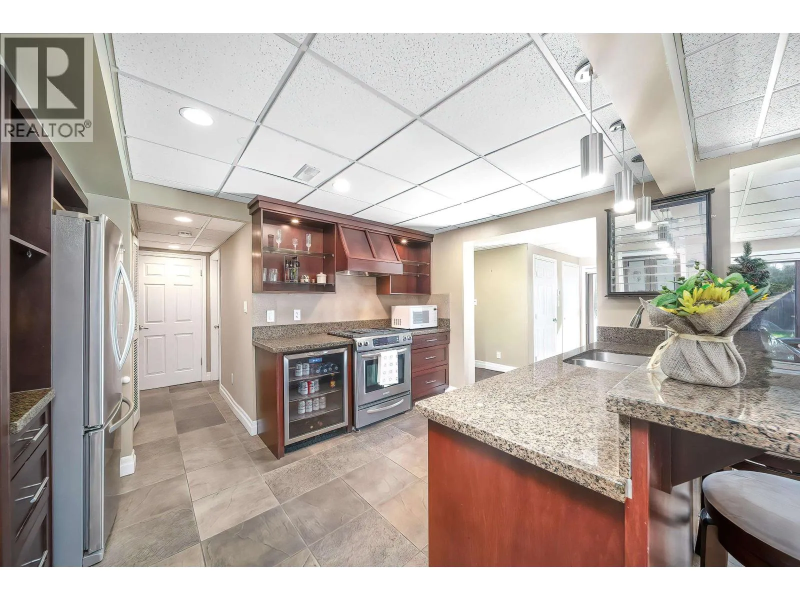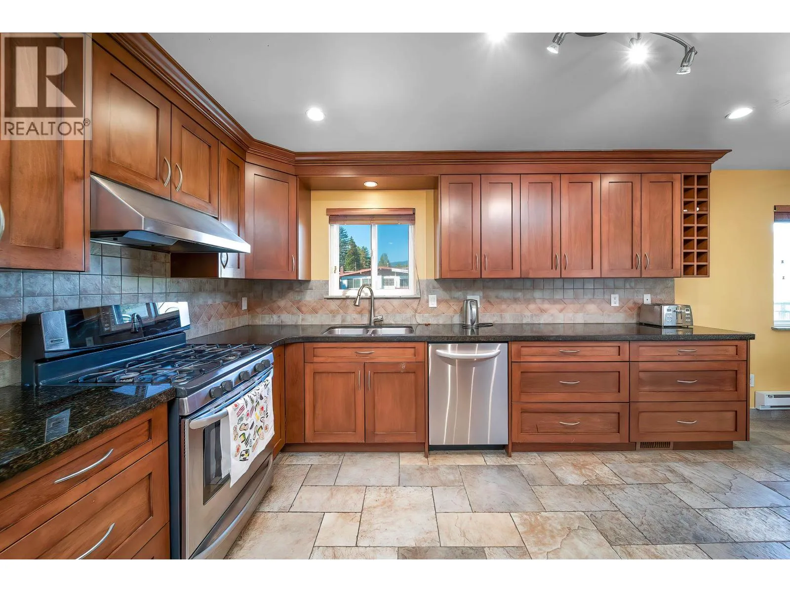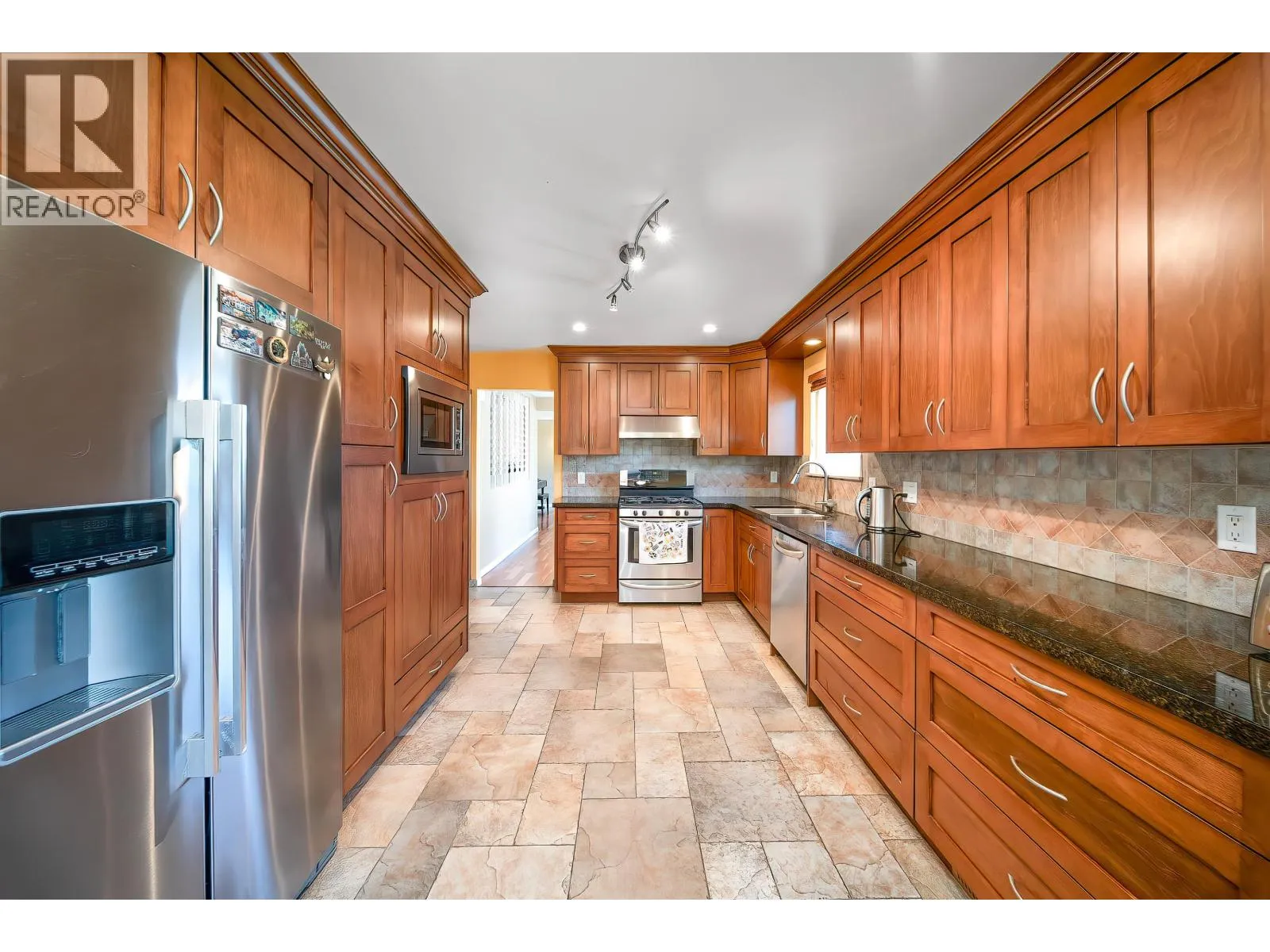 Welcome to this beautifully renovated house situated in a desirable community in Burnaby North. The house features 3 bedrooms and 3 bathrooms on the upper level. The master bedroom is very spacious with walk in closet. The kitchen is equipped with five burners gas stove and all S/S appliances. Two balconies ,one is covered and can easily fit regular size furniture. The lower level is open, airy ,bright with Euro style kitchen, granite counters, built in cabinetry and wine fridge. The 4th bedroom, bathroom, 2nd set of laundry is perfect for growing family. Air conditioning provides a comfortable life in summer.The detached garage boasts 11' ceiling for larger vehicle.The flat rectangle lot with back lane provides great potential for future development. (id:27476)