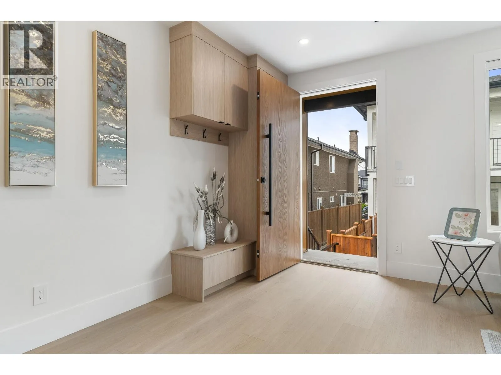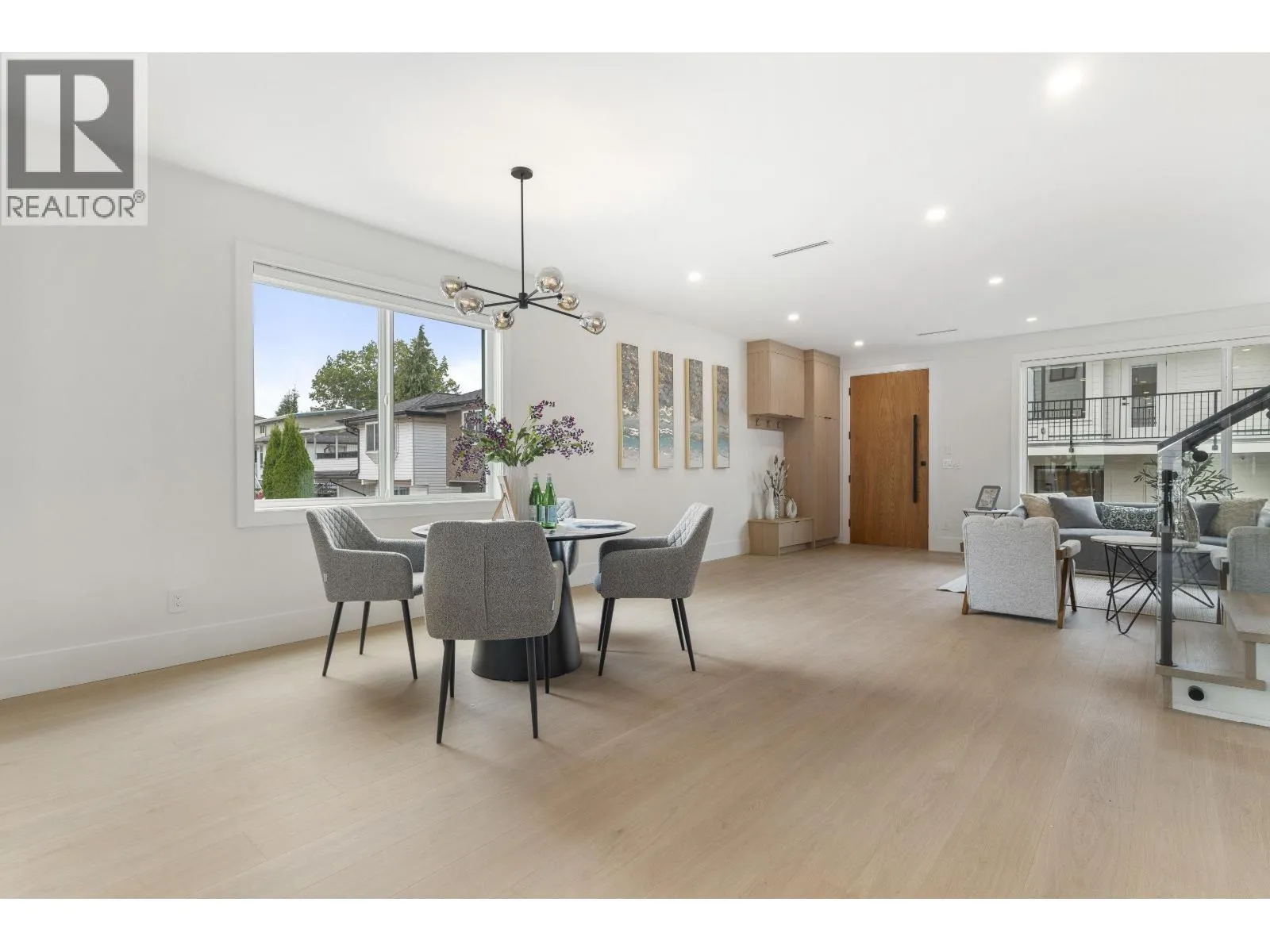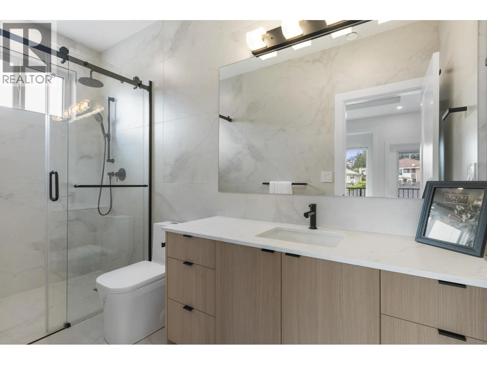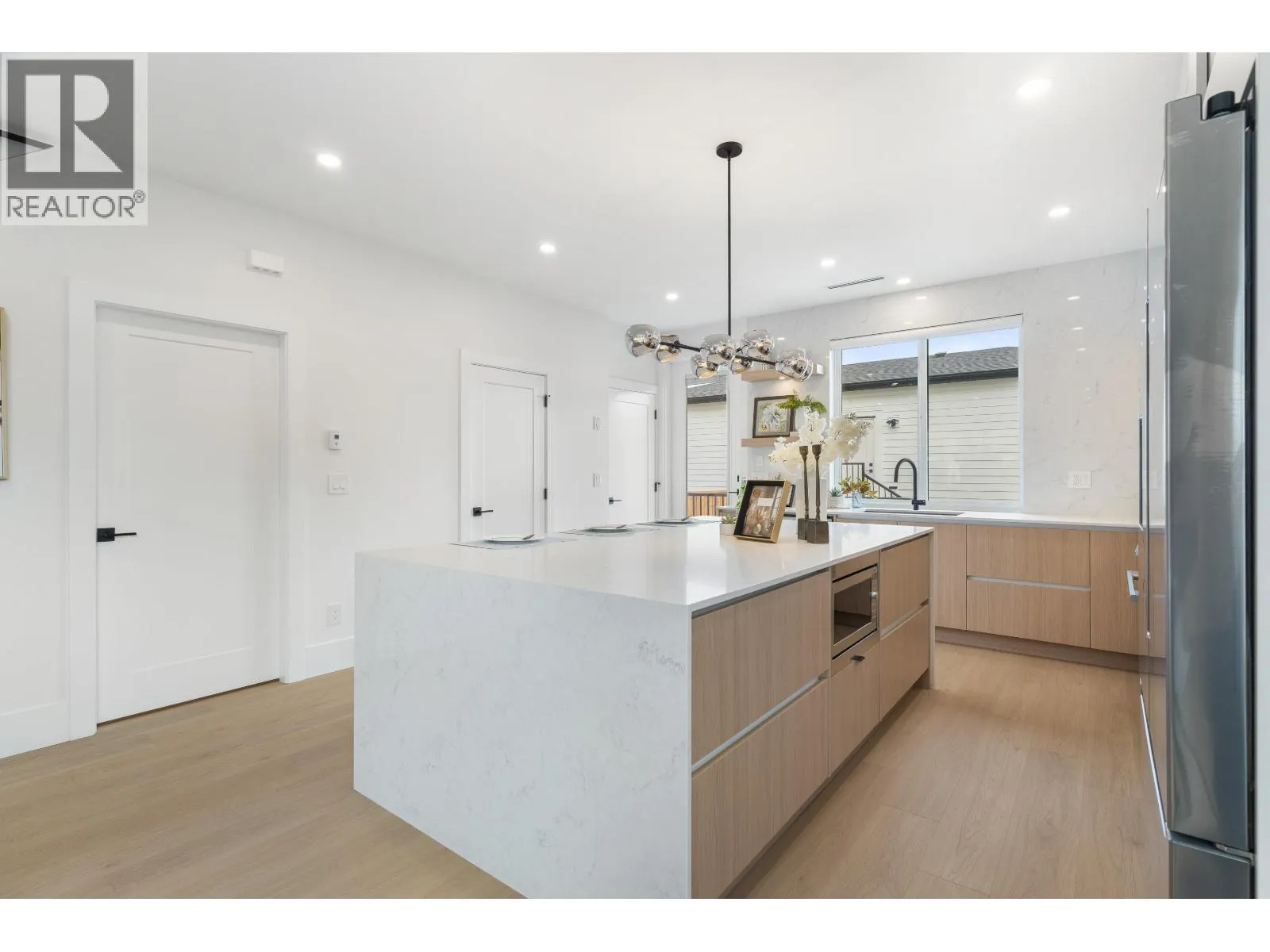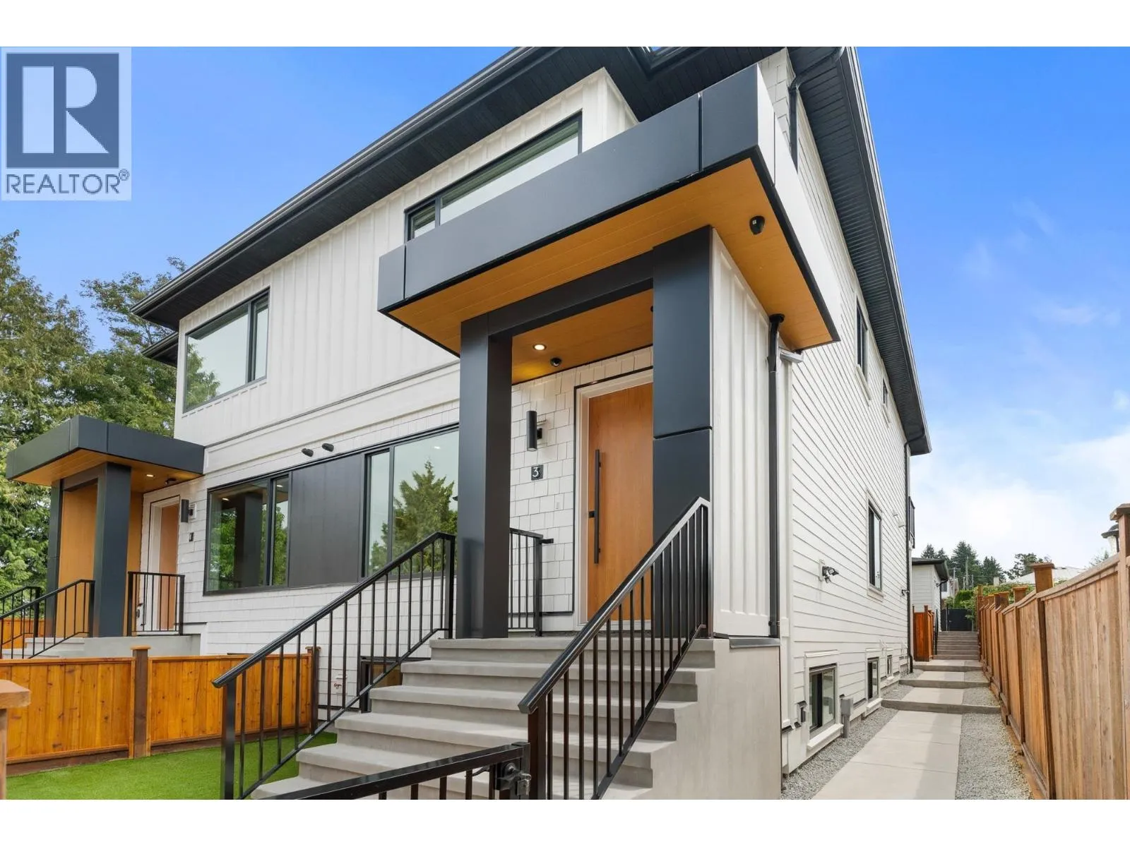 BRAND NEW half unit in Back SIDE-BY-SIDE Building the desirable Burnaby Lake area on a rare total 50x207 lot! This 3-level home features 5 bedrooms, 4 full bathrooms + a large GAMES ROOM (6th room) in the basement. Main floor offers a spacious living room, dining area, kitchen, and powder room. Upstairs has 3 bedrooms, 2 full baths, and a private balcony off the Primary BDRM. Basement includes 3 rooms (2 Bedrms + Games RM), full bath, Rec Room with bar Sink, and private entry from the fenced backyard.A/C, radiant heat, security cameras. Each unit has its own FRONT YARD, Private BACKYARD, and access to a 1-car garage in the rear building. BACK BUILDING: Side-by-side duplex style layout in a quiet, convenient location close to Hwy access, shopping, rec centres & more. A must-see! (id:27476)